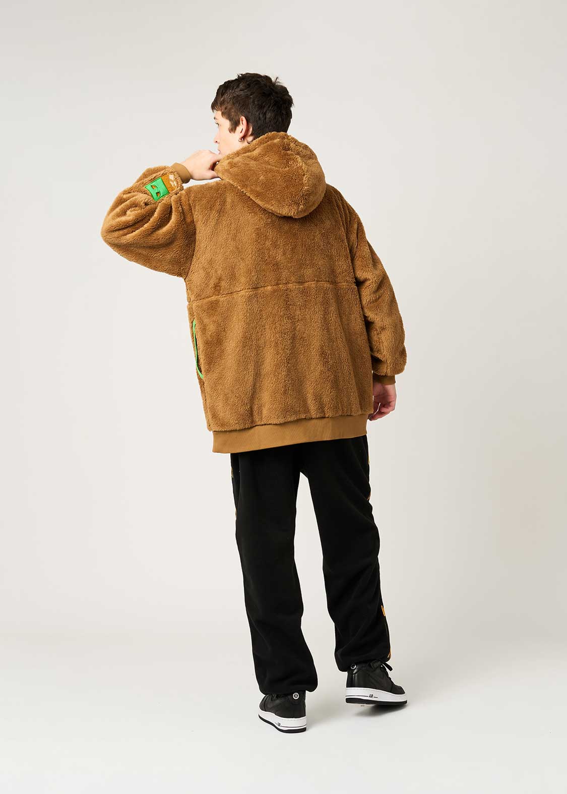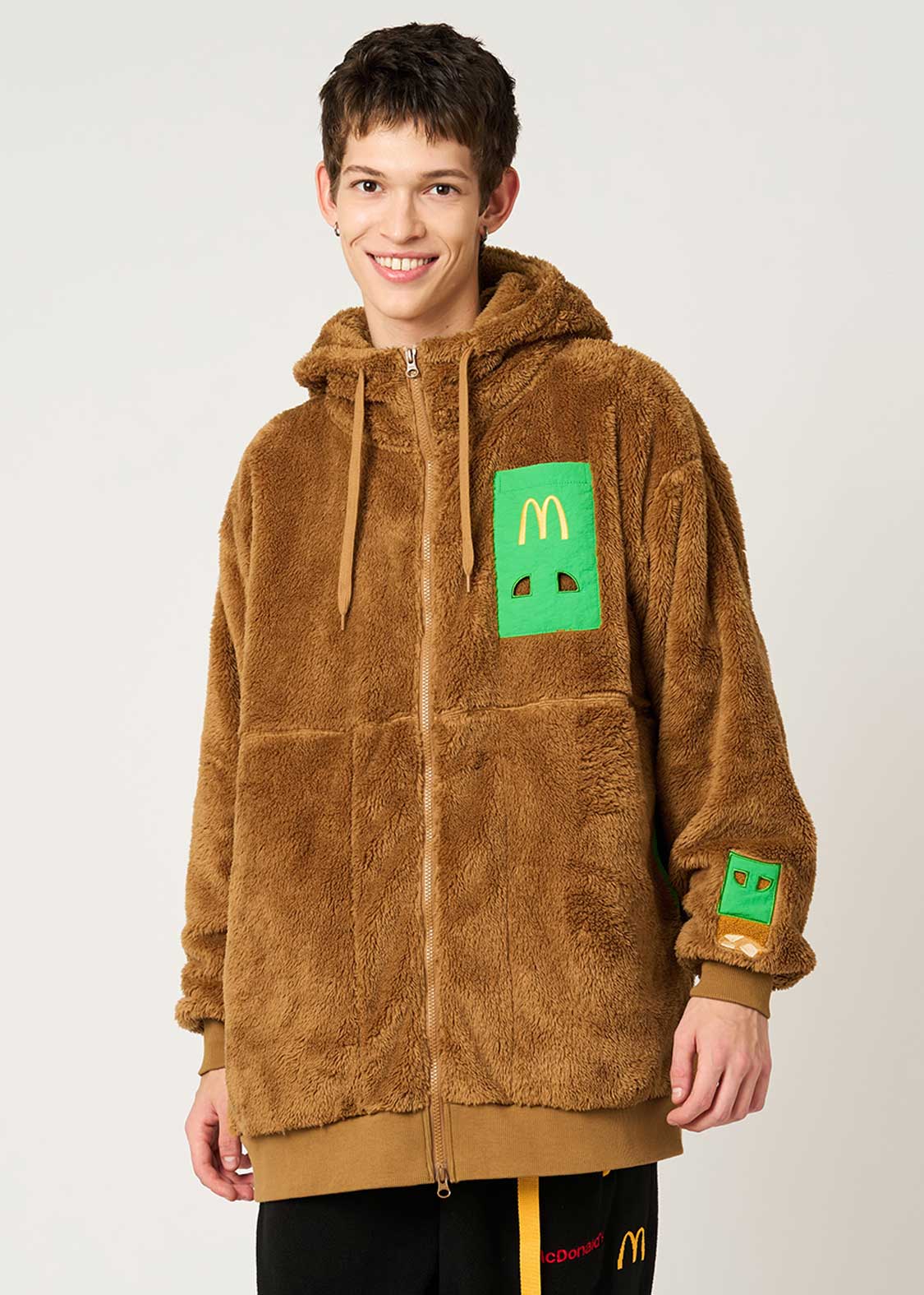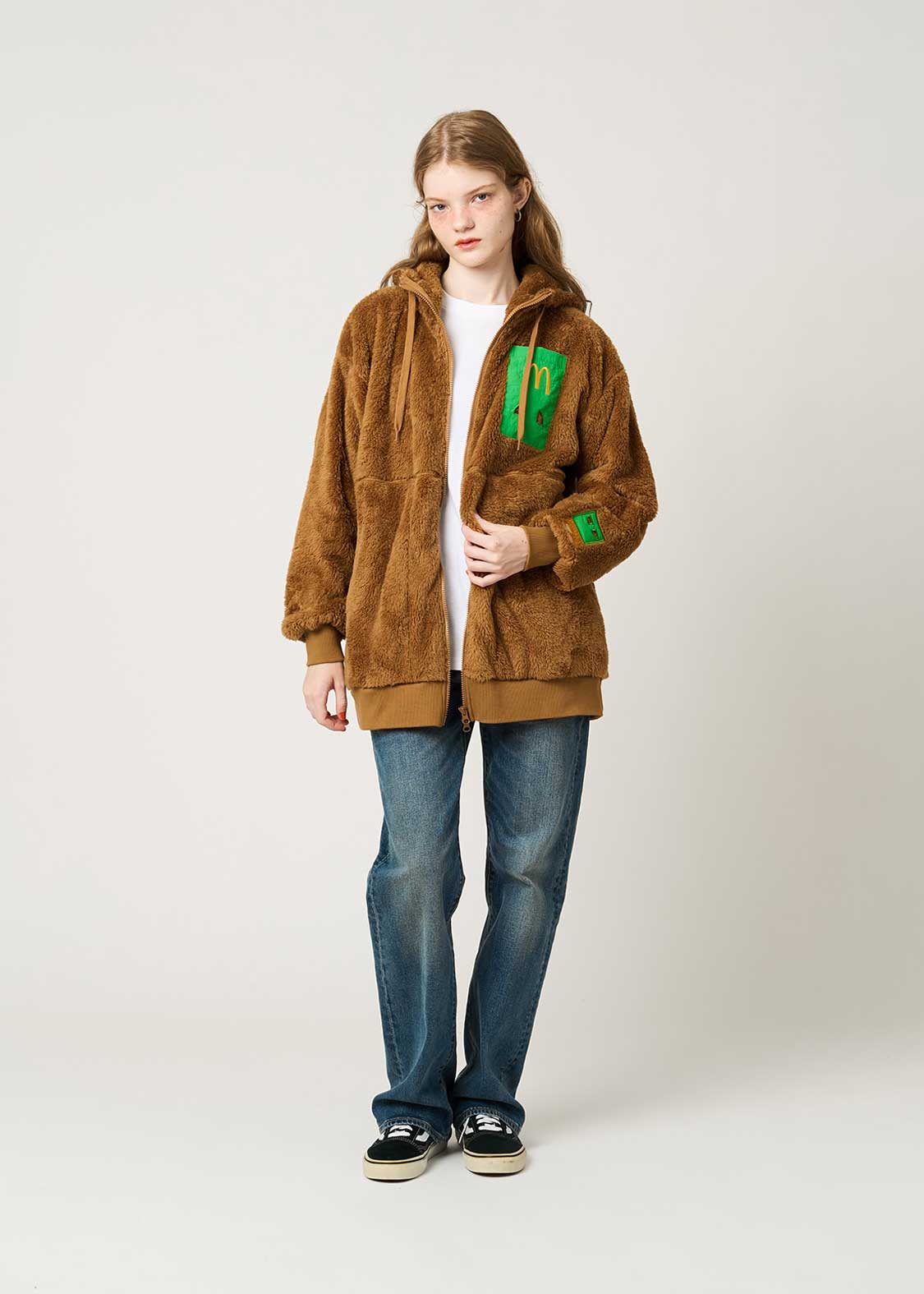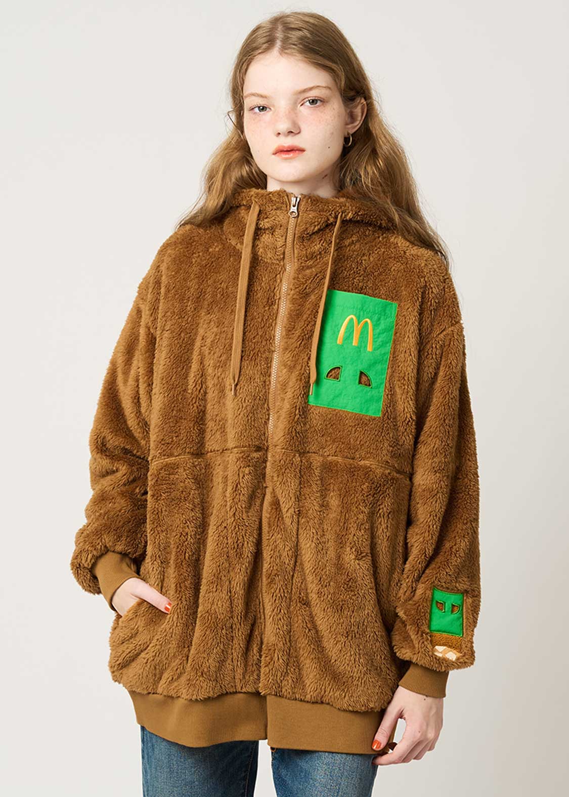 ・柔らかい生地感のボア素材を使用した、ロング丈のジップパーカー。