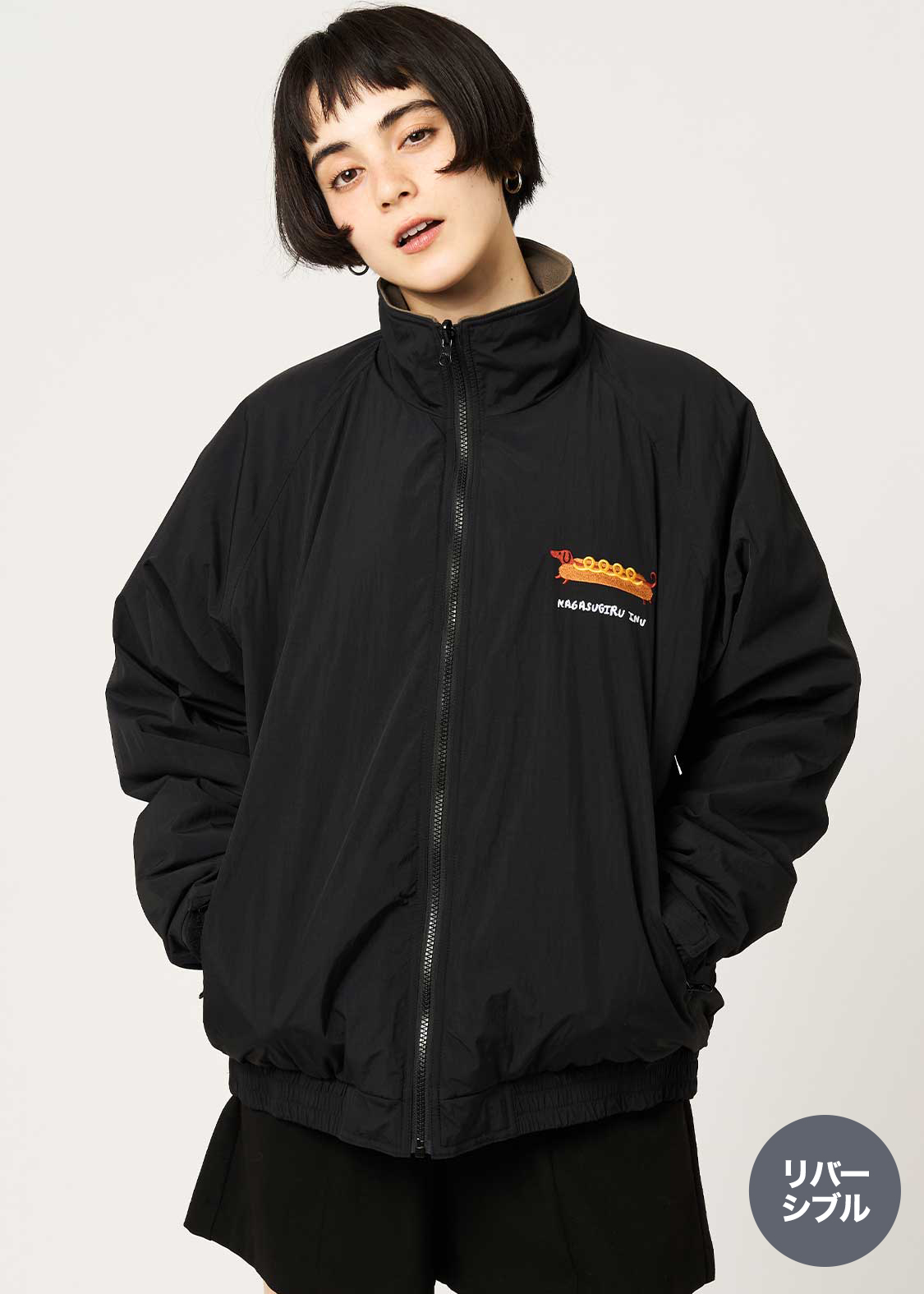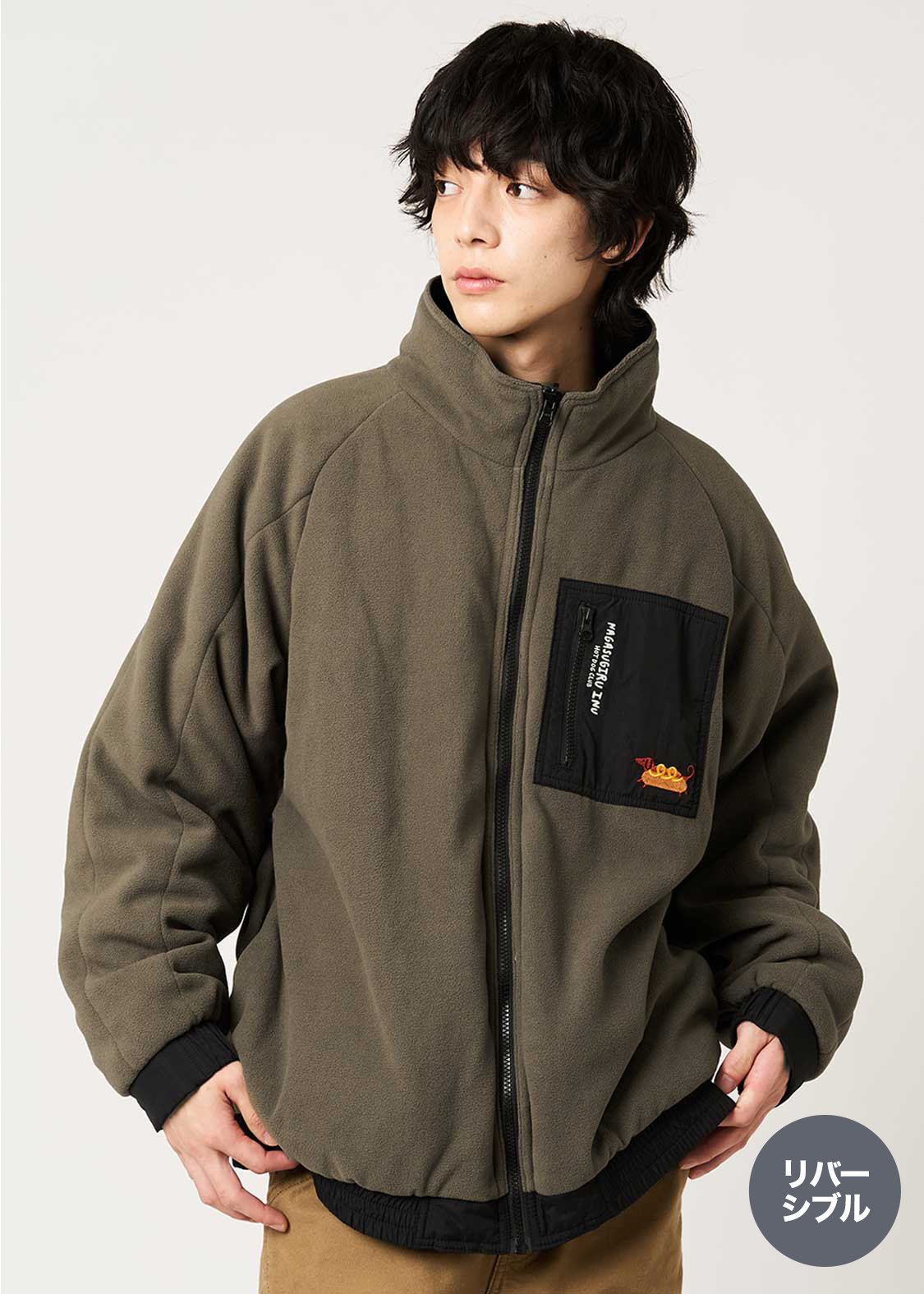 ・少し張りのあるナイロン生地と、フリースのリバーシブルデザイン。