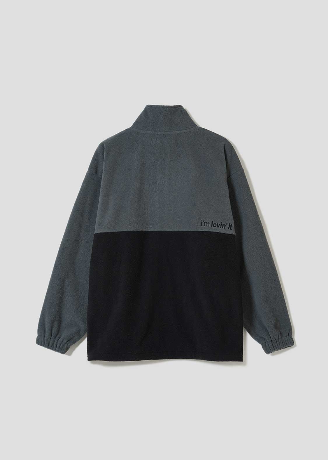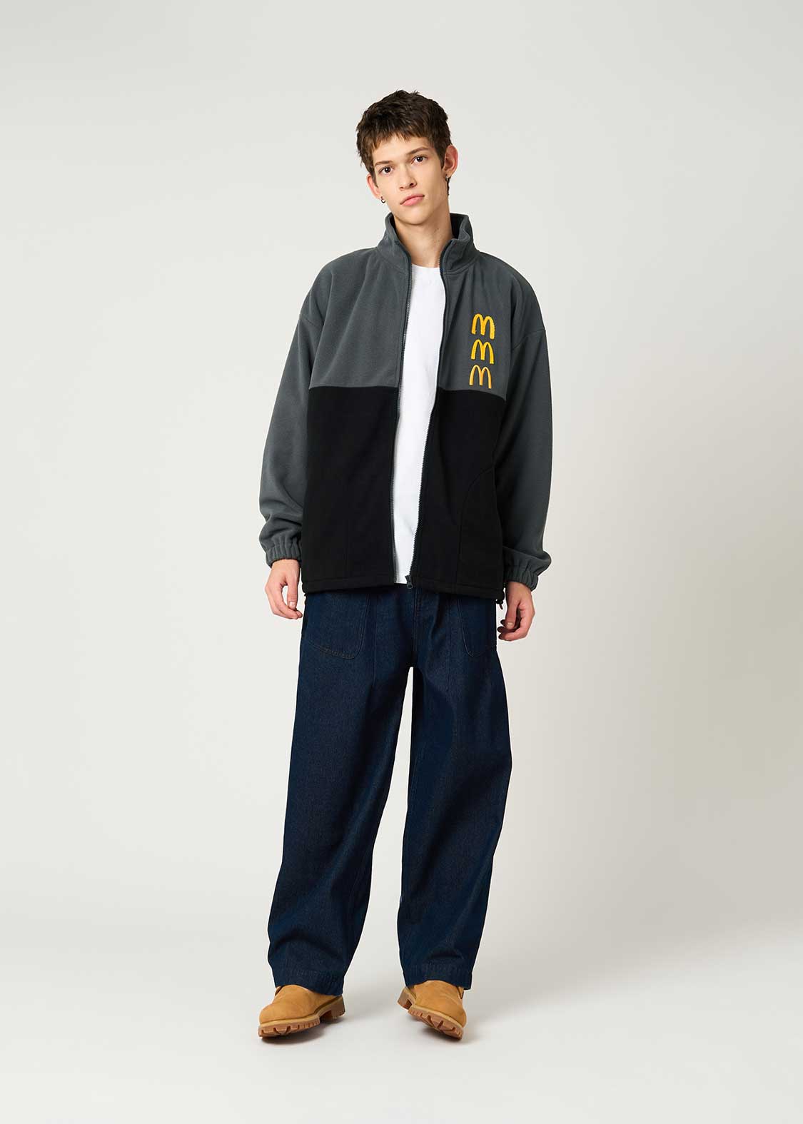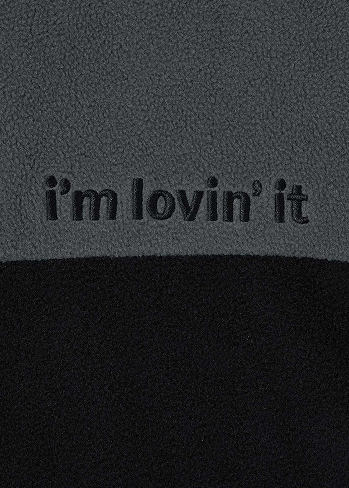 それぞれ手法の違う刺繍で表現したゴールデンアーチが目を引くデザイン。バックには全世界のマクドナルドで共通のキャンペーンフレーズ「i’m lovin’ it」が刺繍されています。