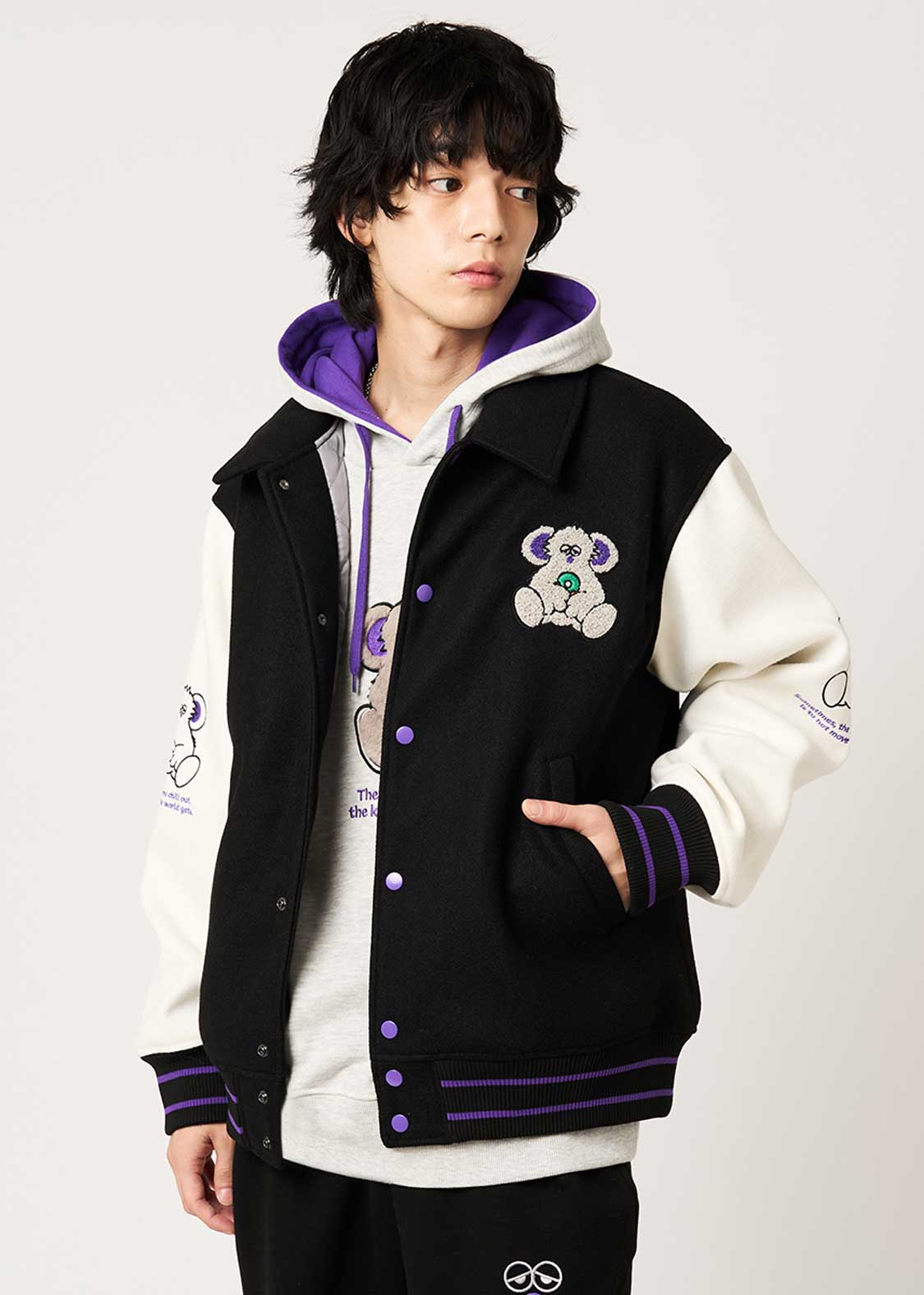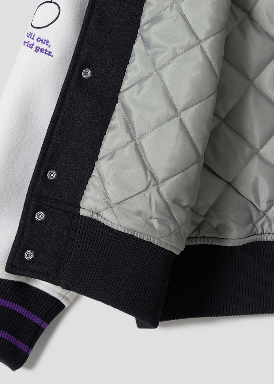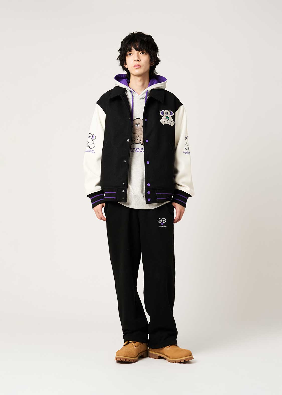 ・程よい厚みのメルトン生地を使用した、ゆったりとしたサイズ感のスタジャン。