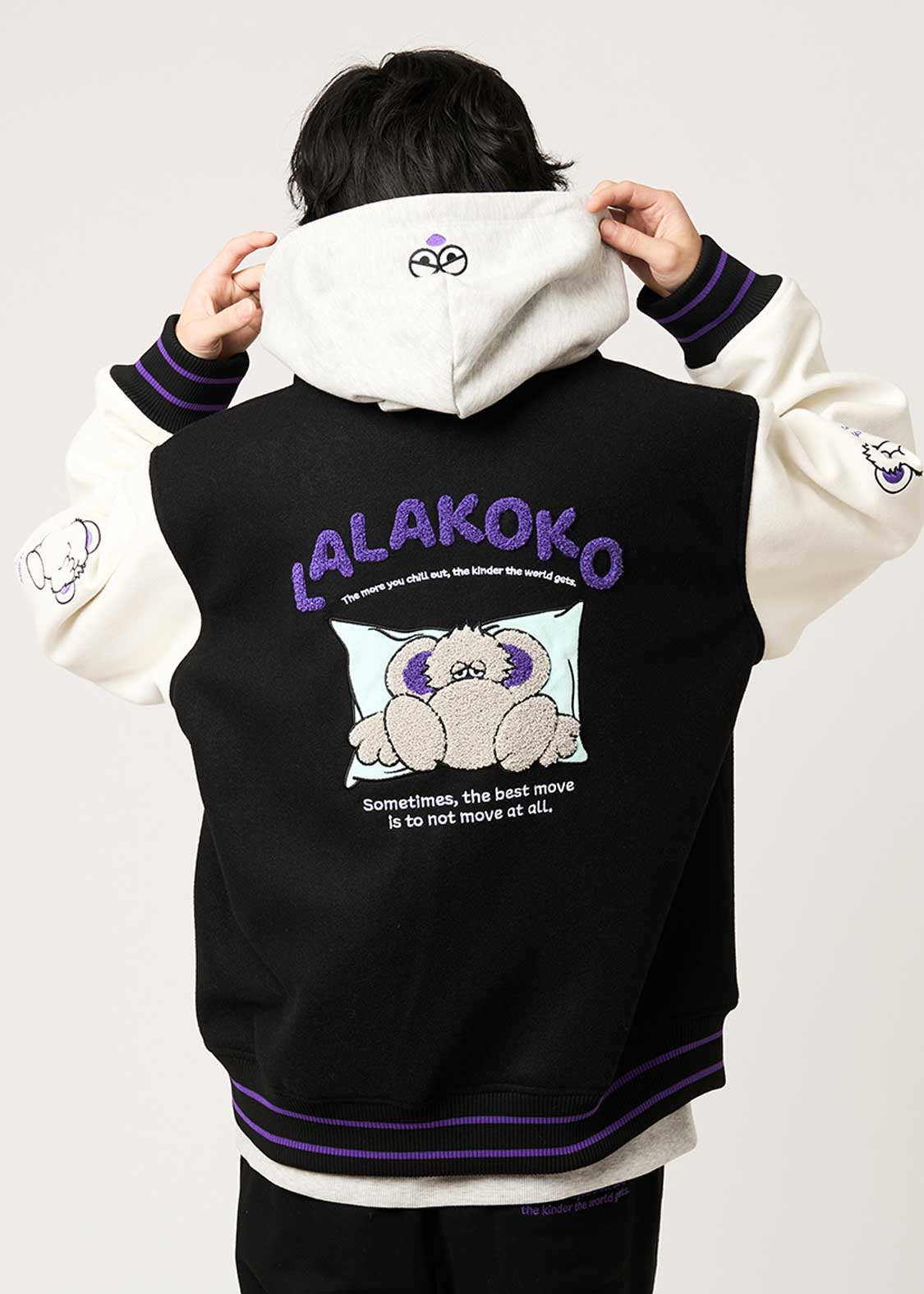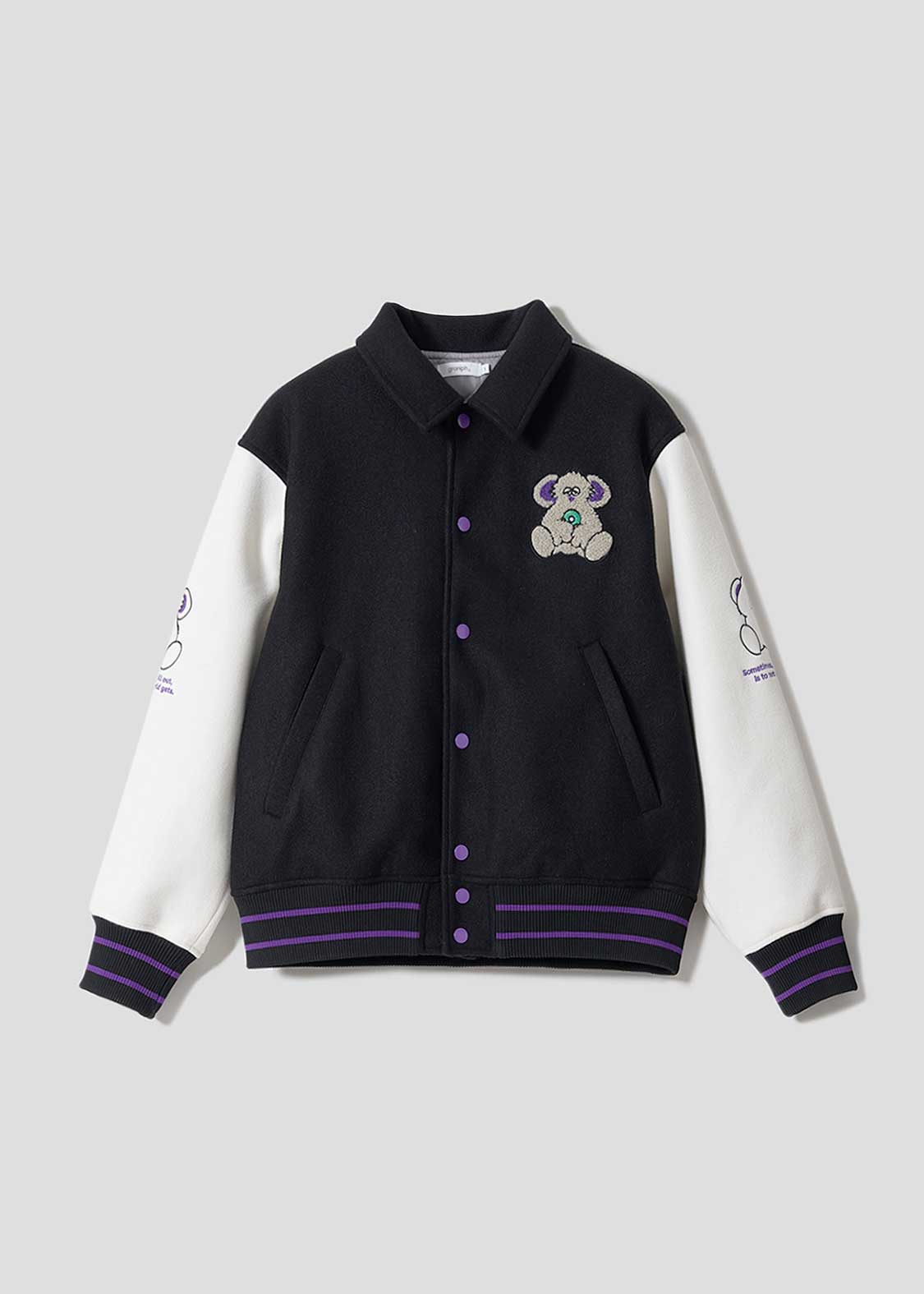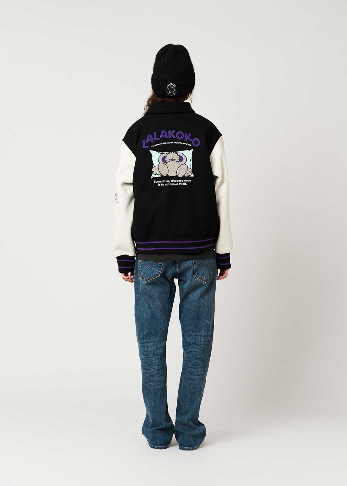 ・程よい厚みのメルトン生地を使用した、ゆったりとしたサイズ感のスタジャン。