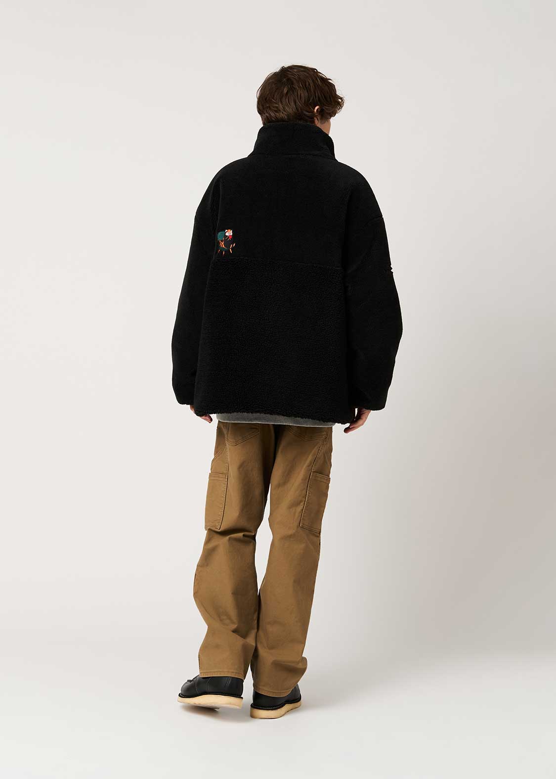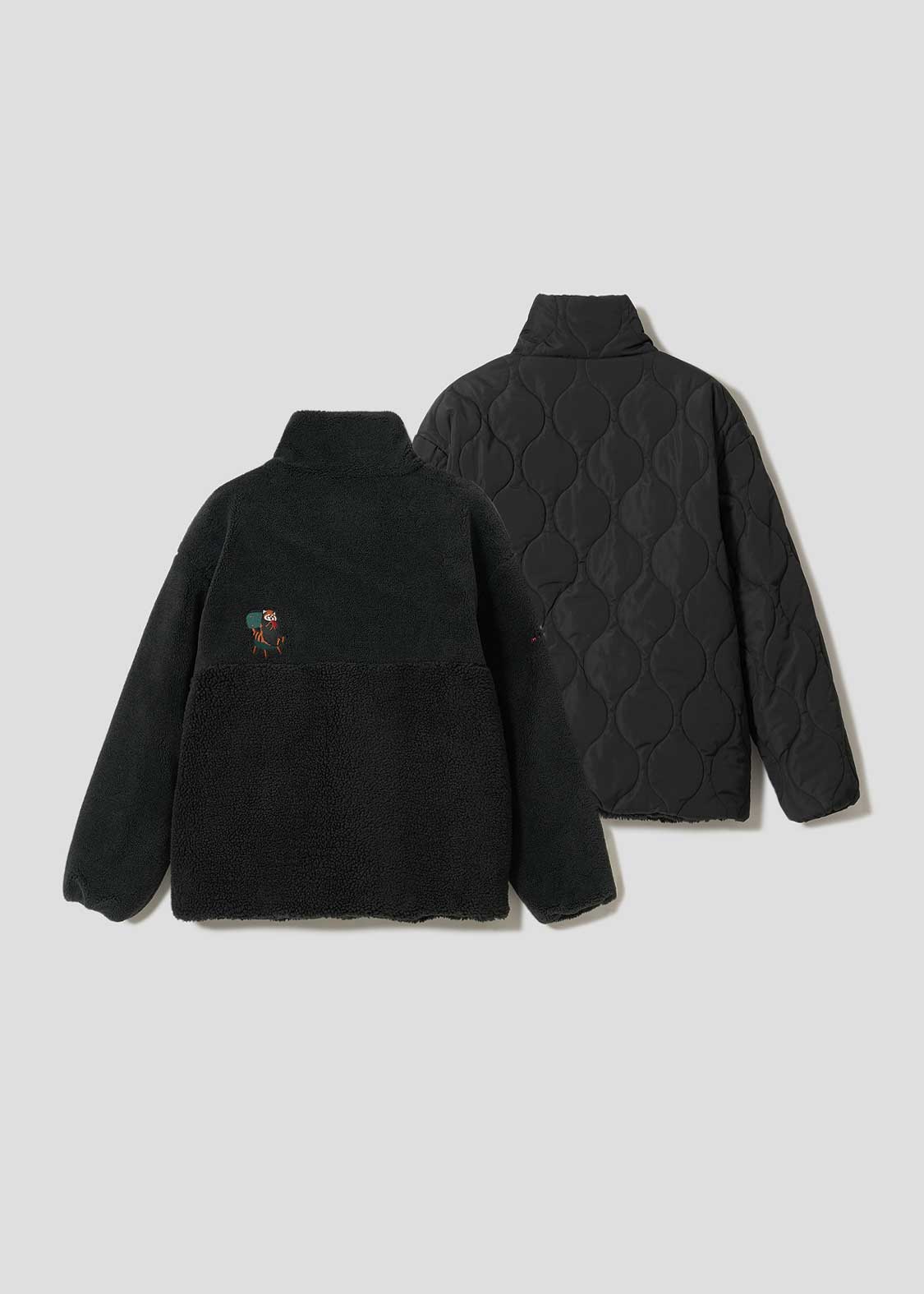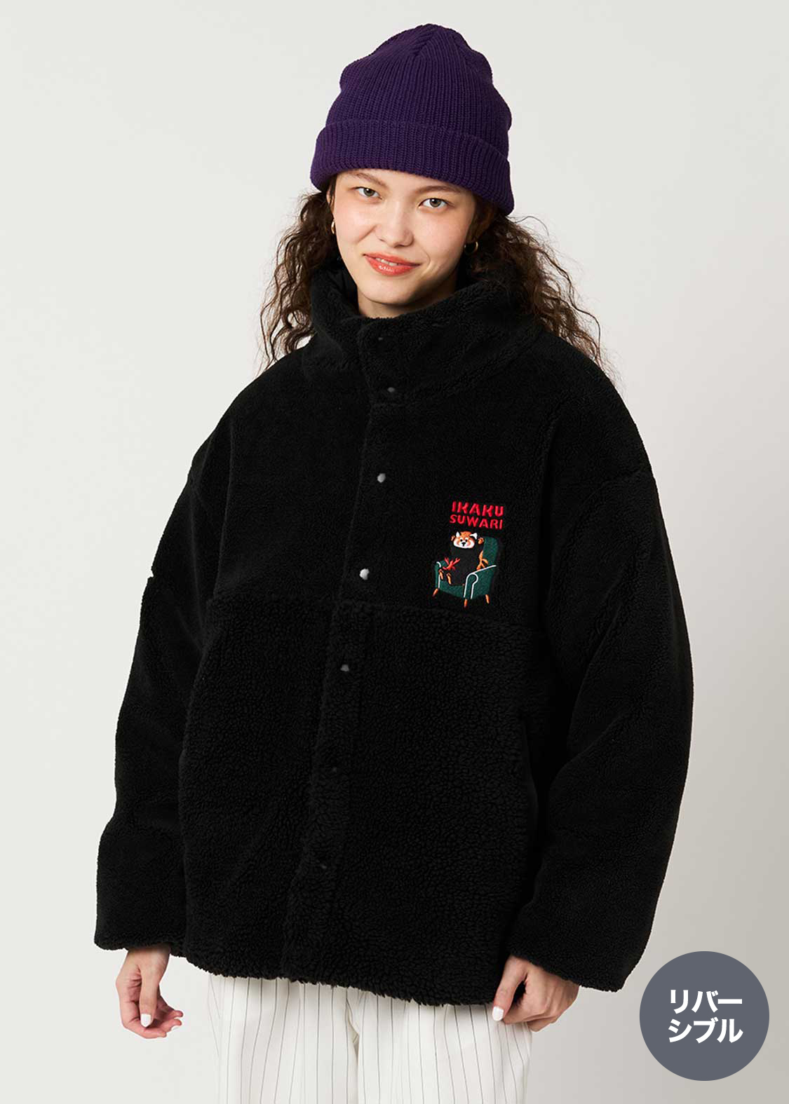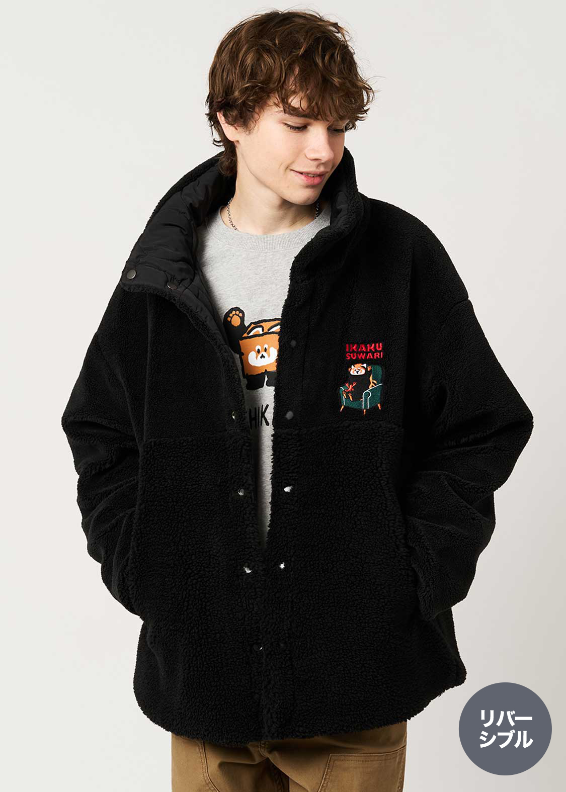 ・毛足の長さが違う2種のボア生地と、ポリエステル生地の、リバーシブル仕様のアウター。