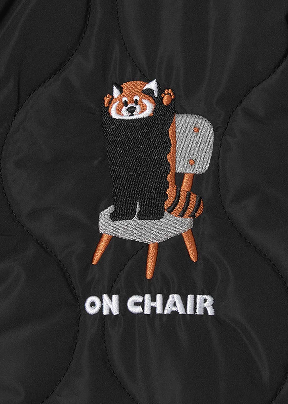 イスに座ってくつろぎながらも威嚇は欠かさないレッサーパンダ。キュートでありながら、シンプルなデザインに仕上げたところがポイントです。