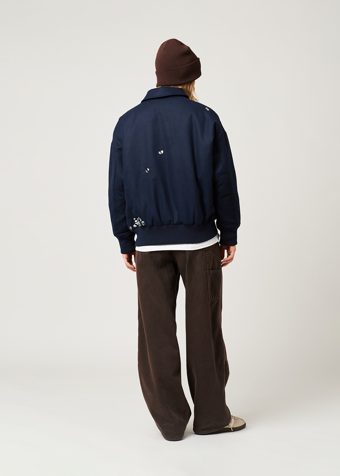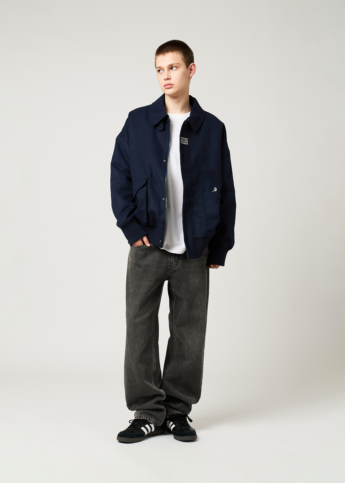 ・程よい厚みのメルトン生地を使用した、ゆったりとしたサイズ感の中綿入りジャケットです。