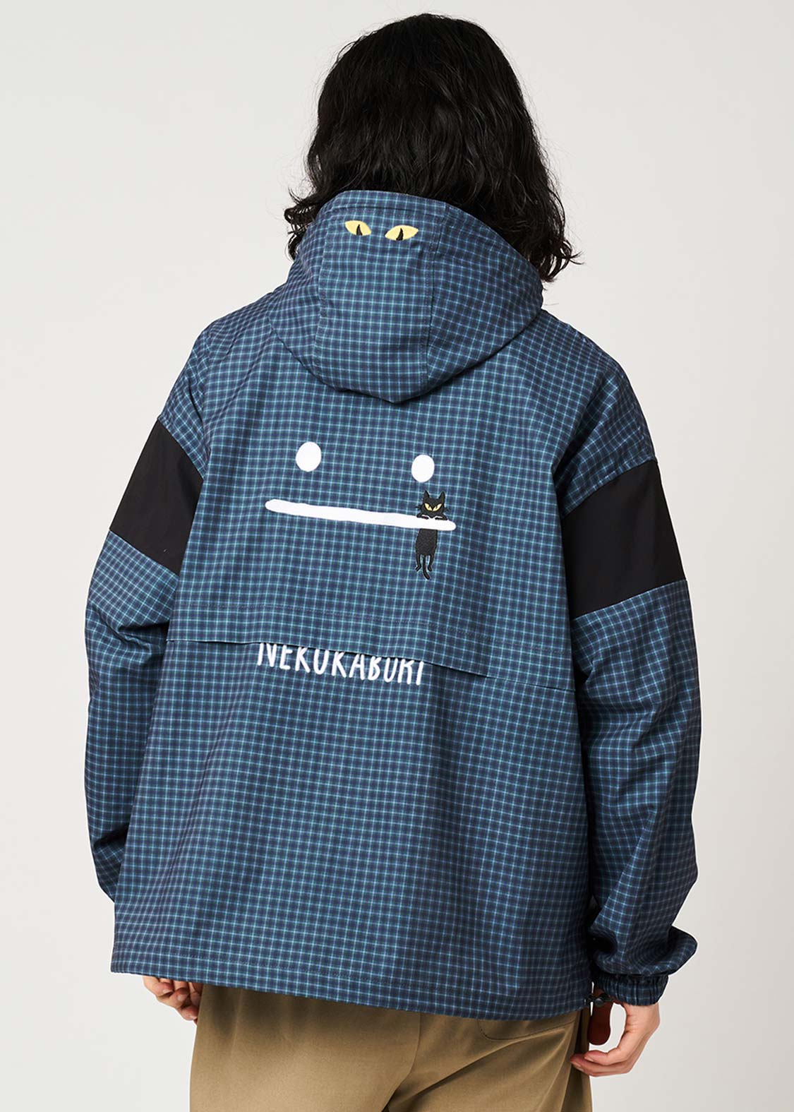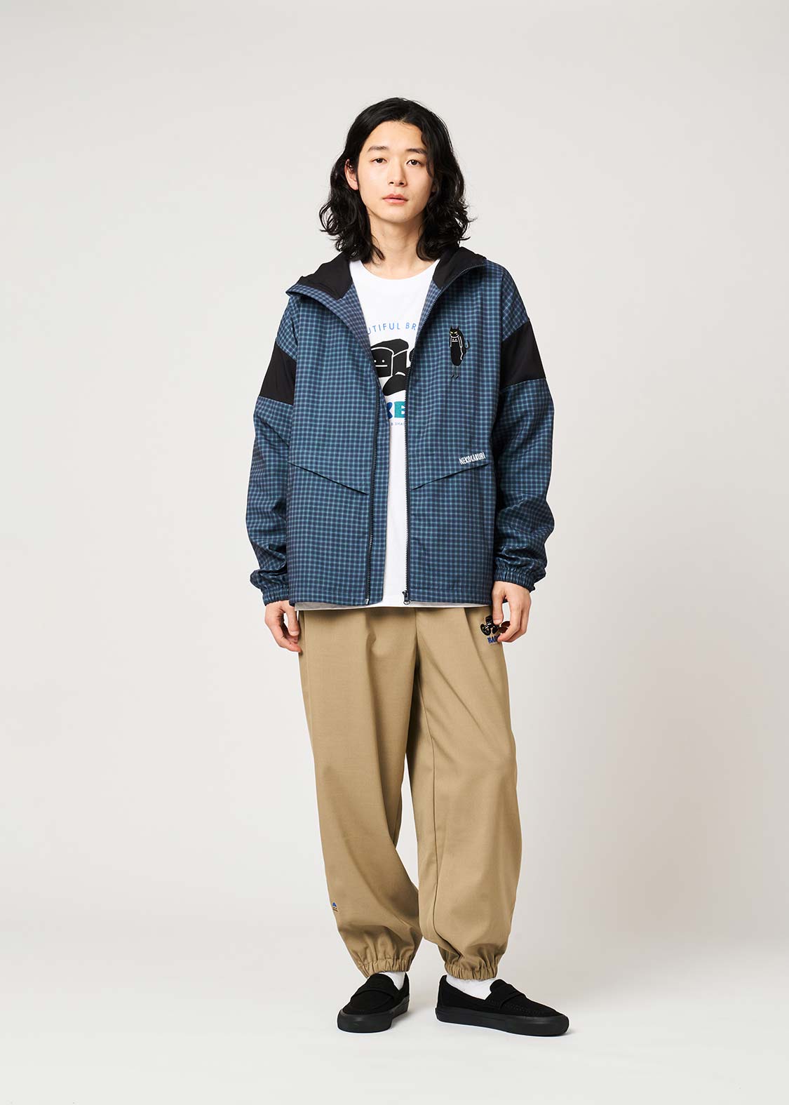 ・グラニフオリジナルのチェック柄をプリントし、袖の無地生地との切り替えがさりげないポイントです。
