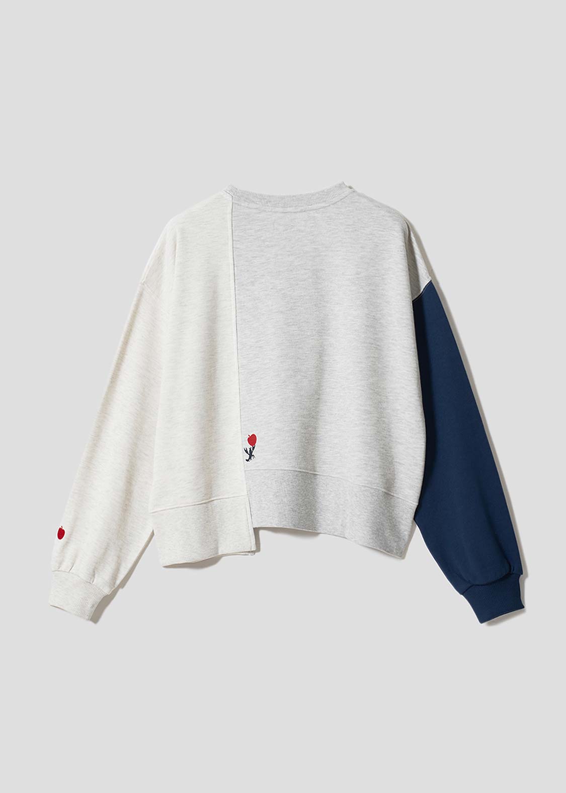 ・異なる色の生地を配色し、アシンメトリーな裾がさりげないアクセントになっています。