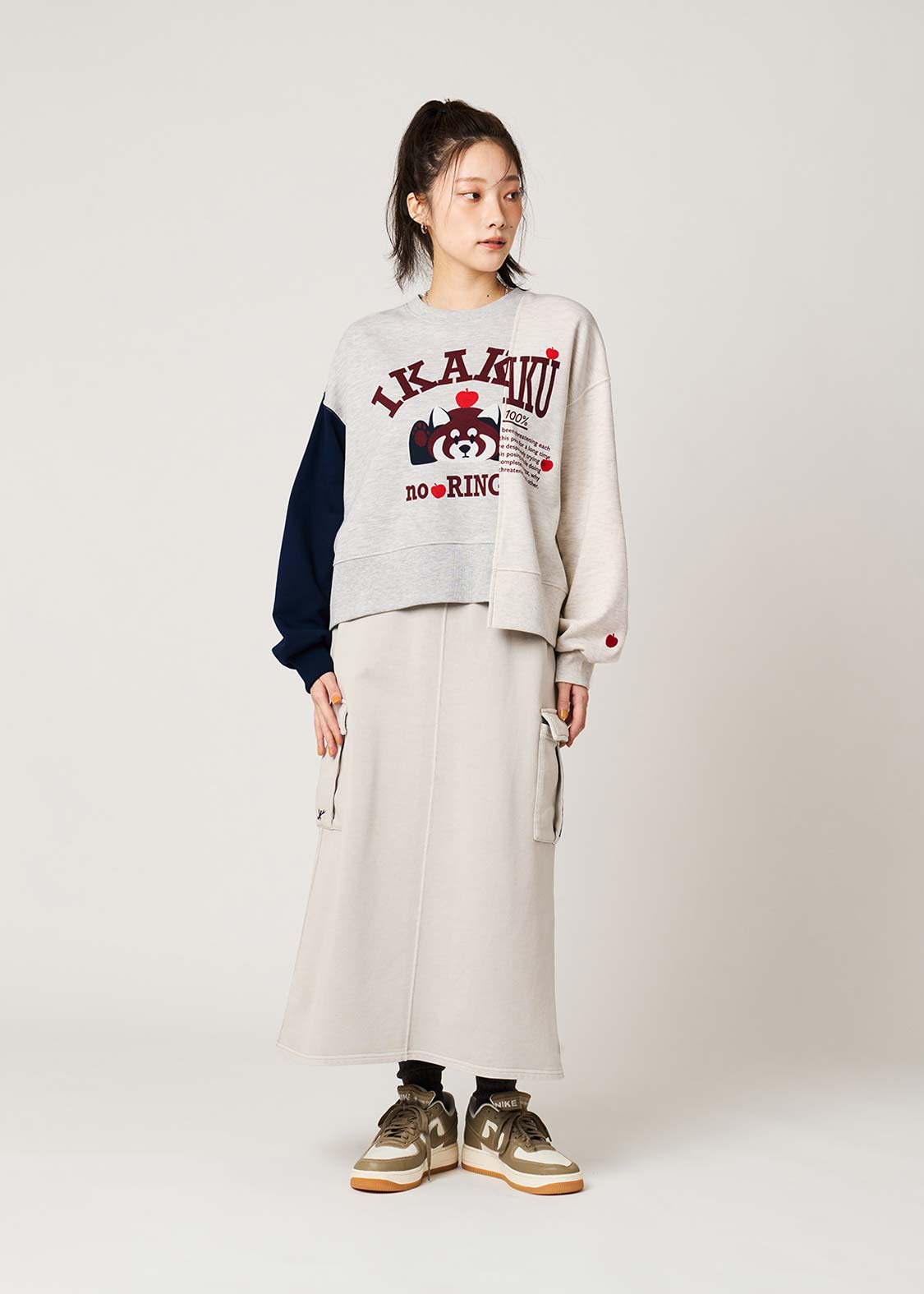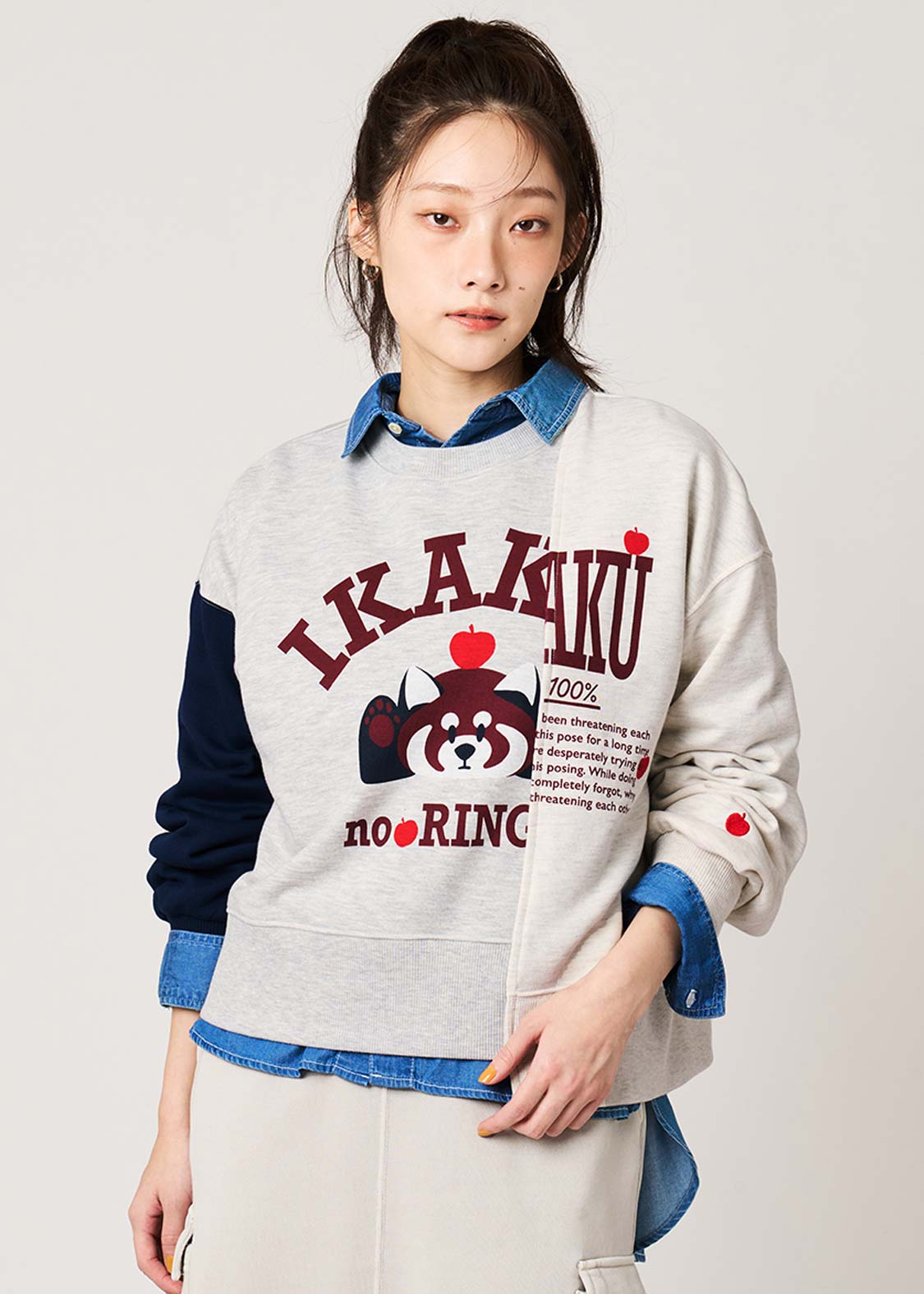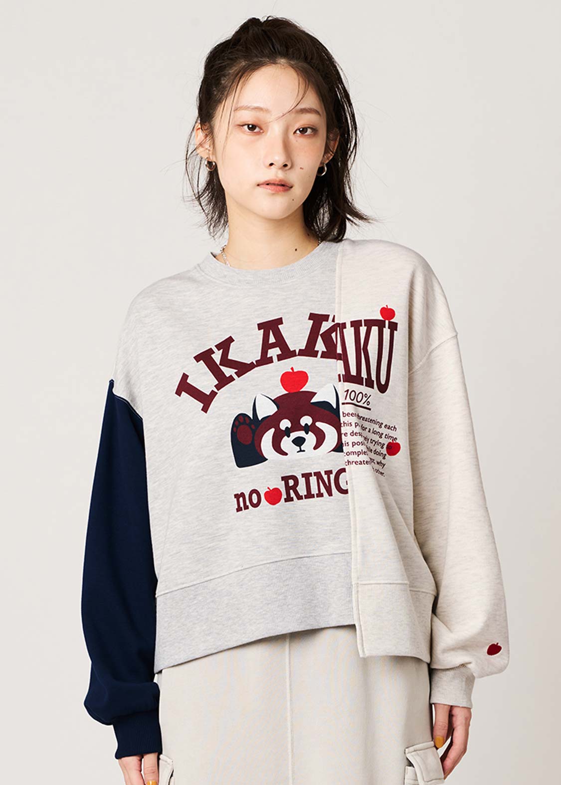 レッサーパンダの大好物、りんごをフィーチュア。赤いりんごがアクセントになる、遊び心のあるグラフィックです。