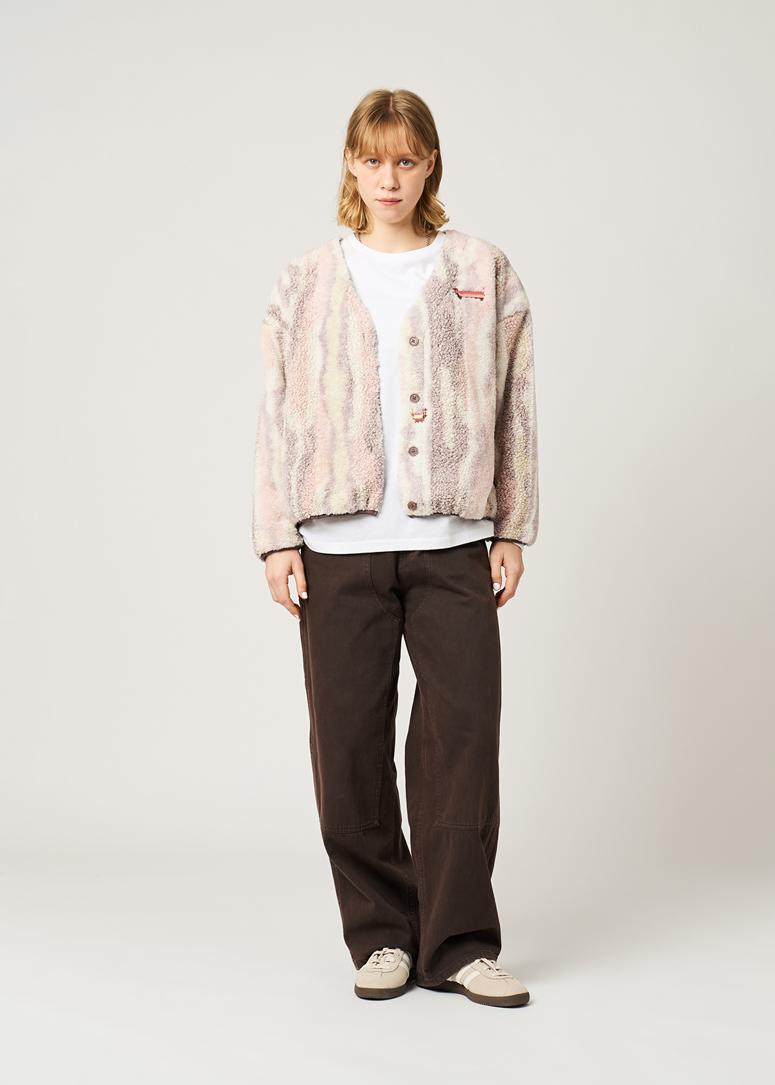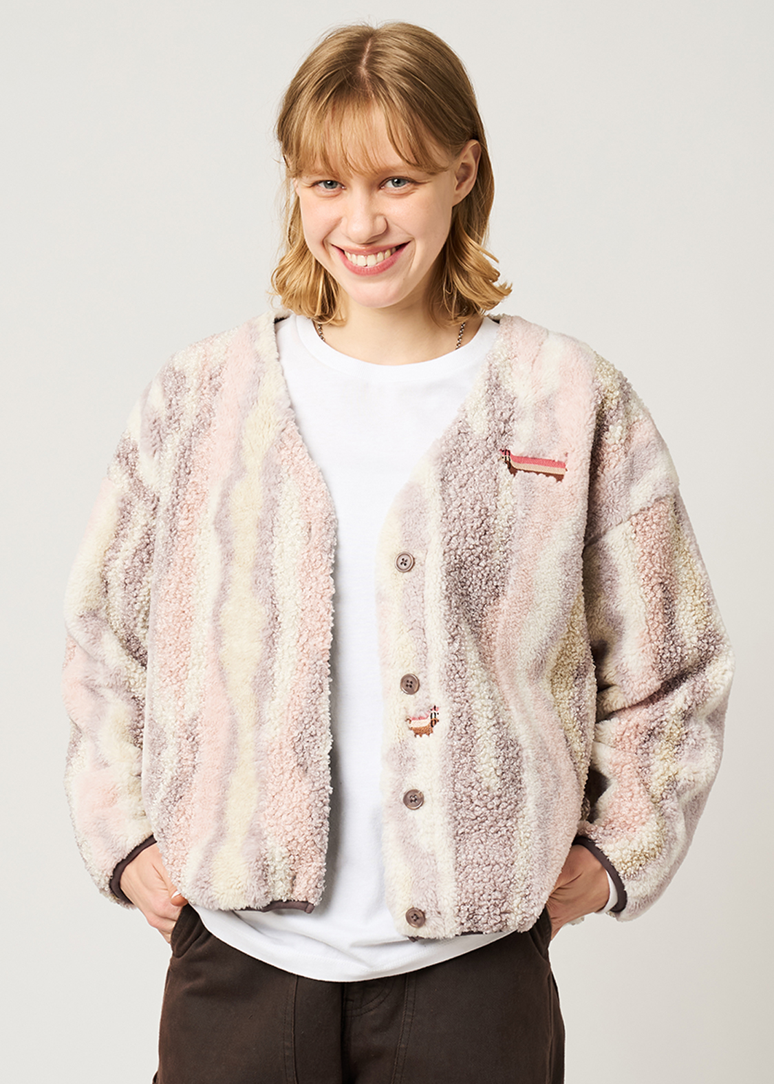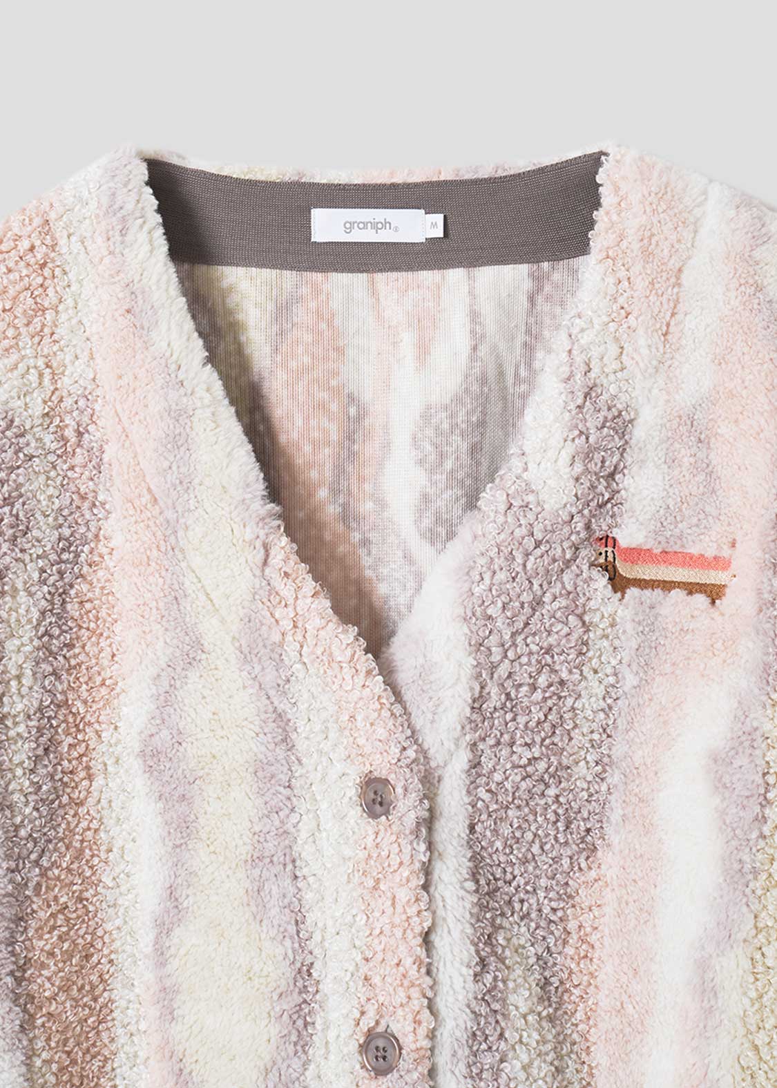 ・ふわふわ、もこもこのミックスボアを使ったVネックカーディガン。