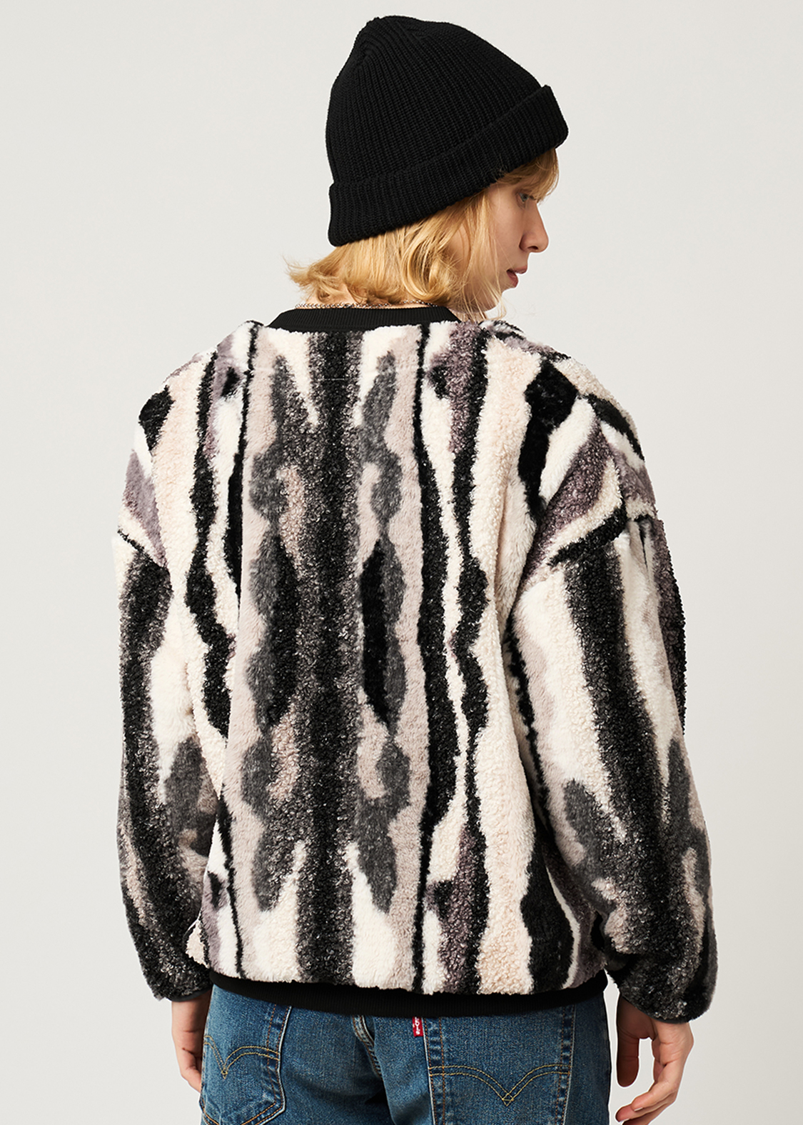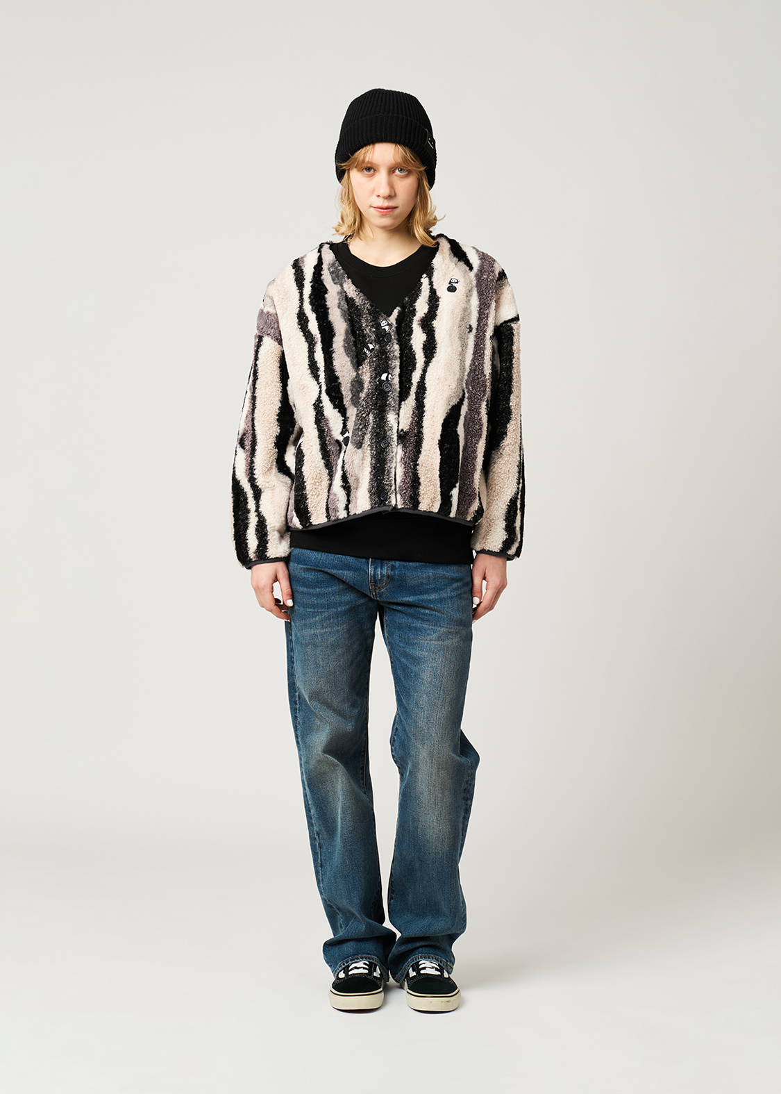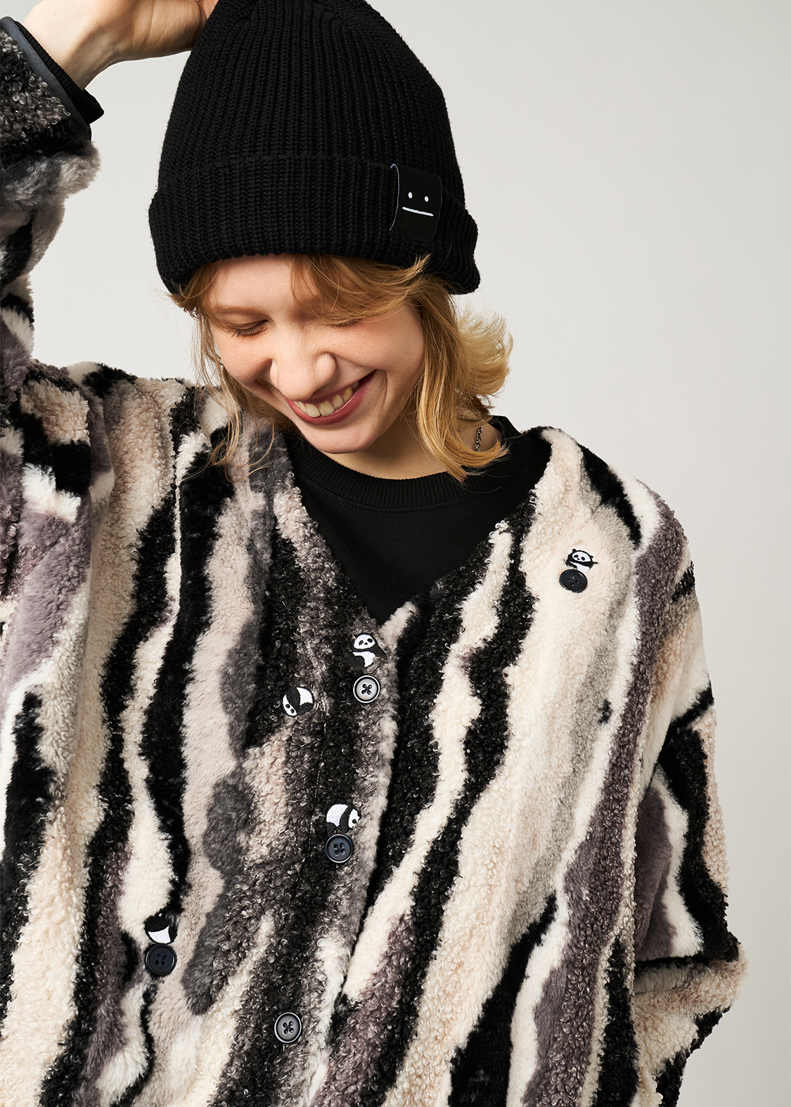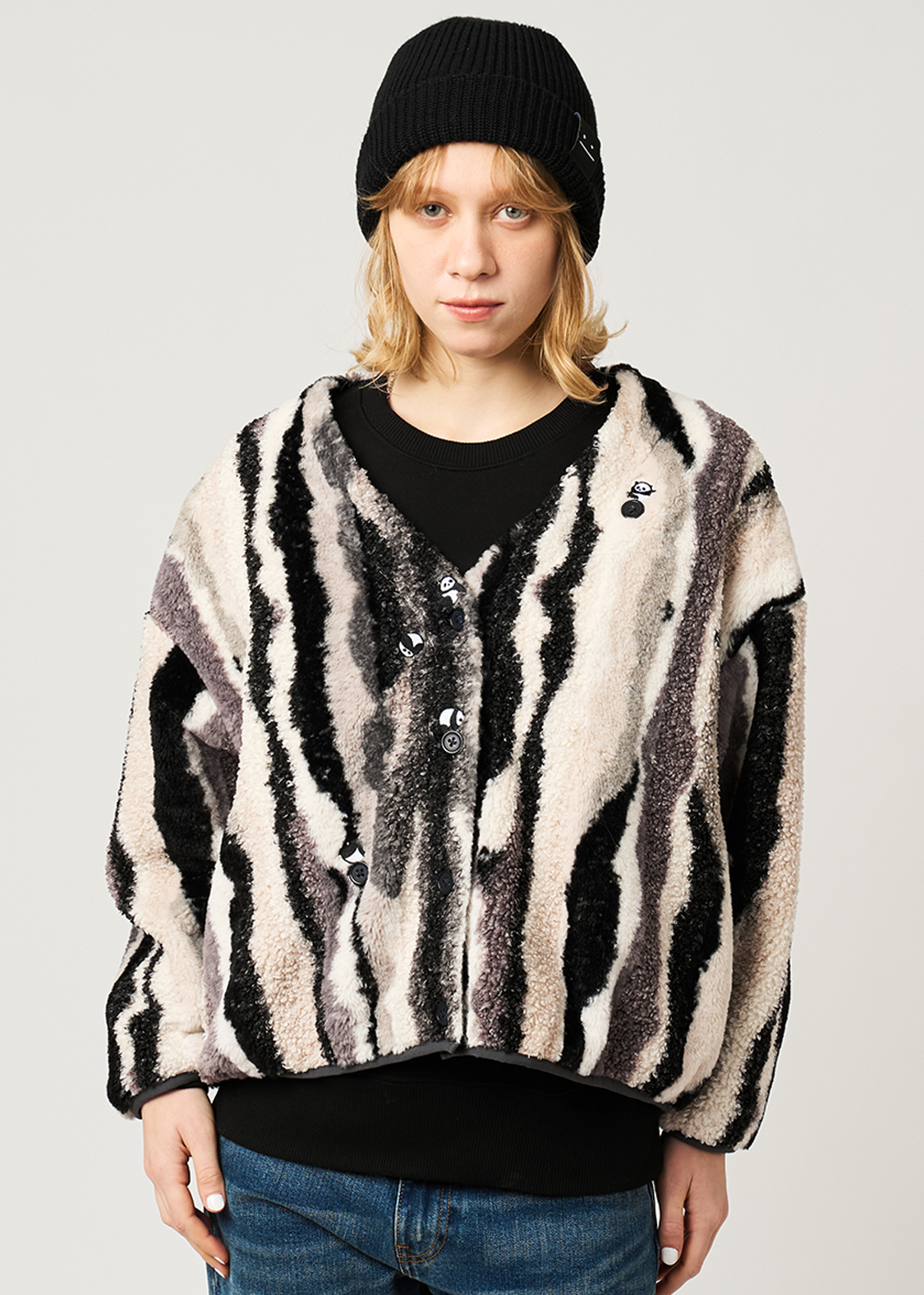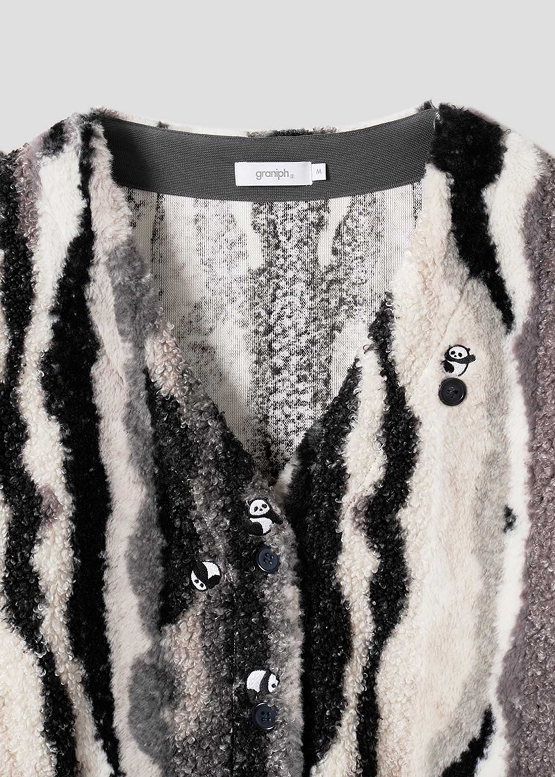 ・ふわふわ、もこもこのミックスボアを使ったVネックカーディガン。
