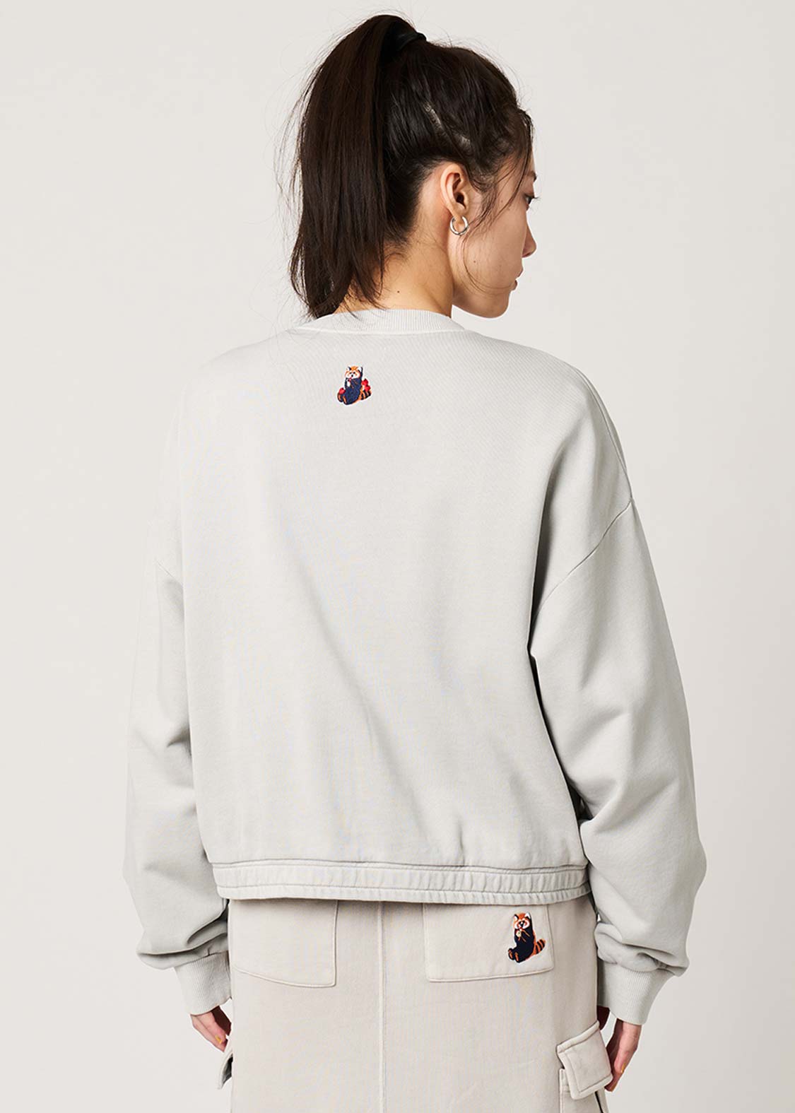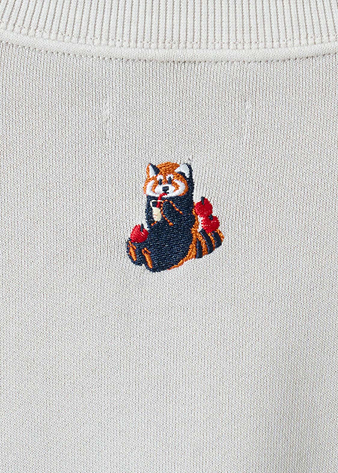 レッサーパンダの大好物、りんごをフィーチュア。赤いりんごがアクセントになる、遊び心のあるグラフィックです。