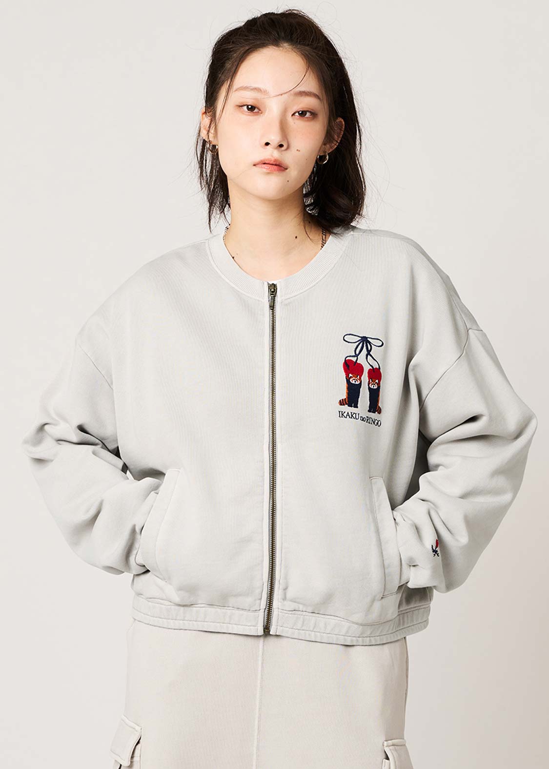 ・クロップド丈のジップアップカーディガンです。
