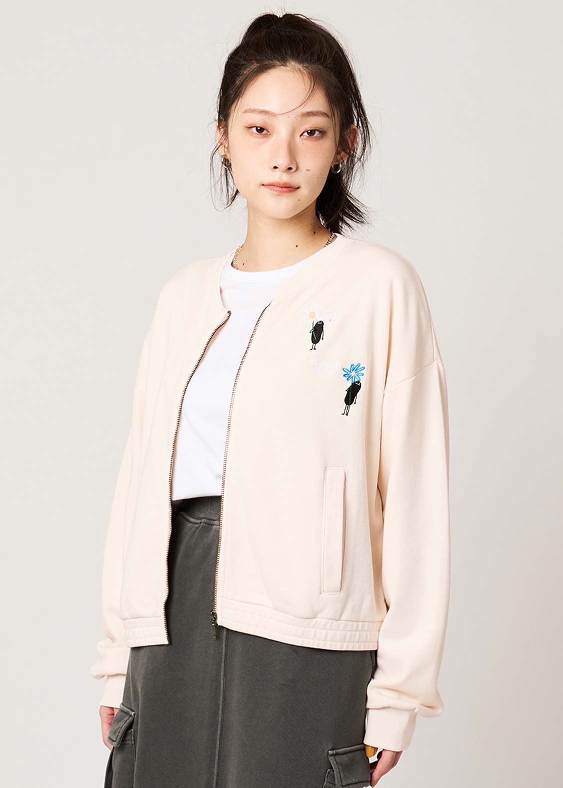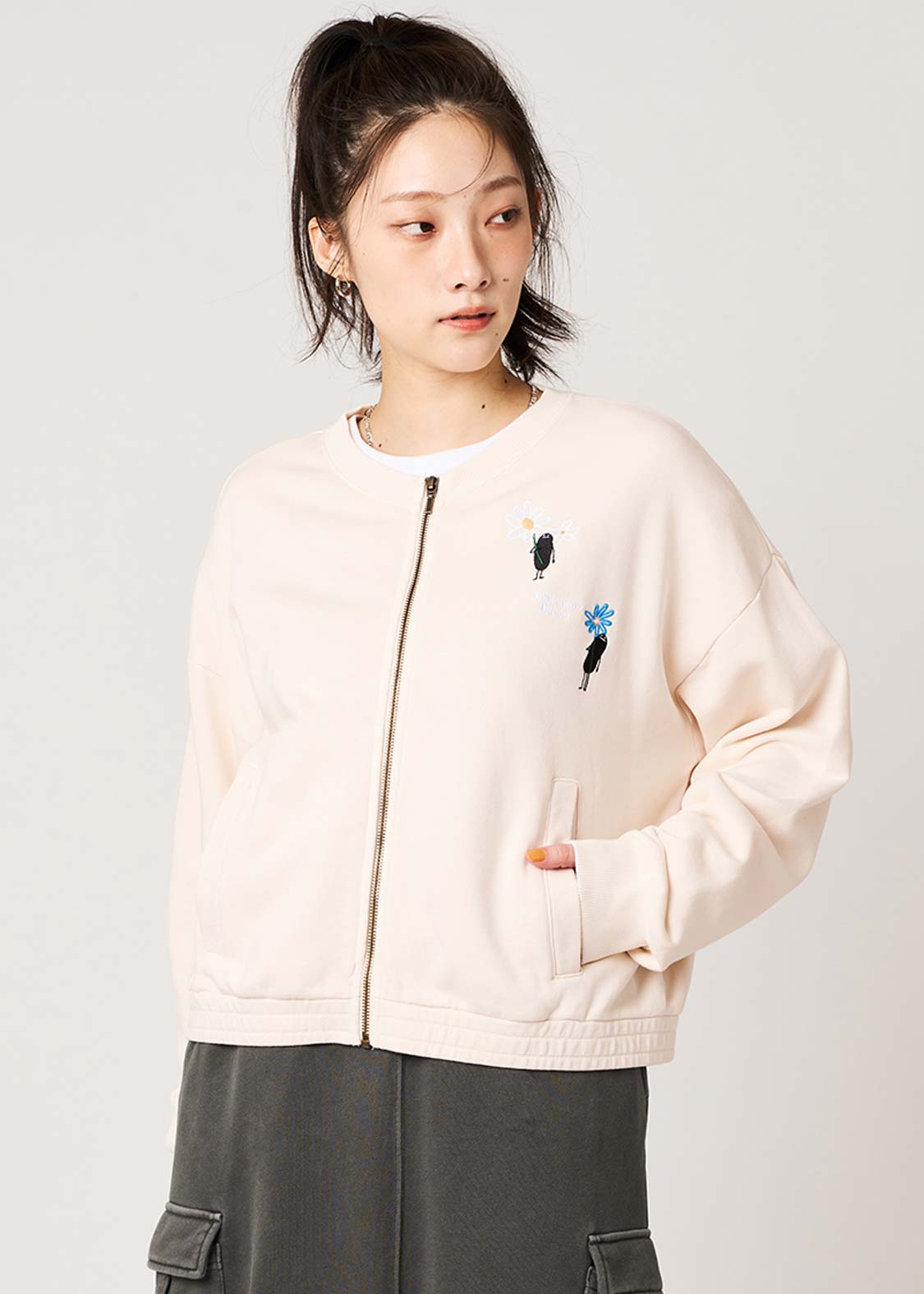 ・クロップド丈のジップアップカーディガンです。