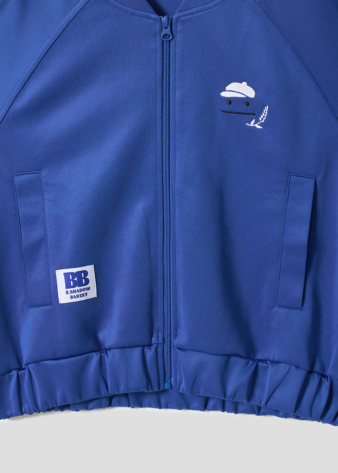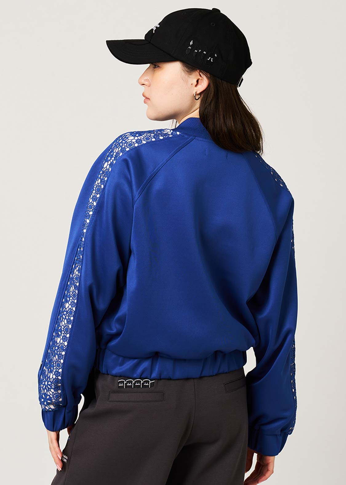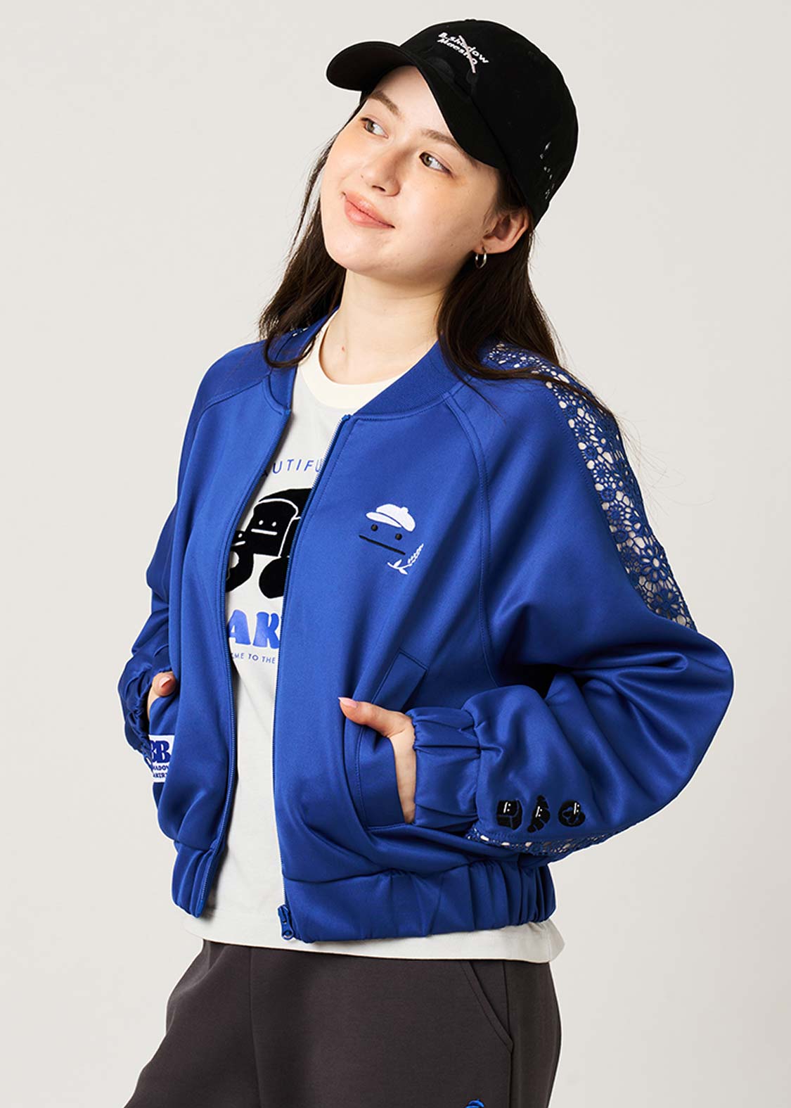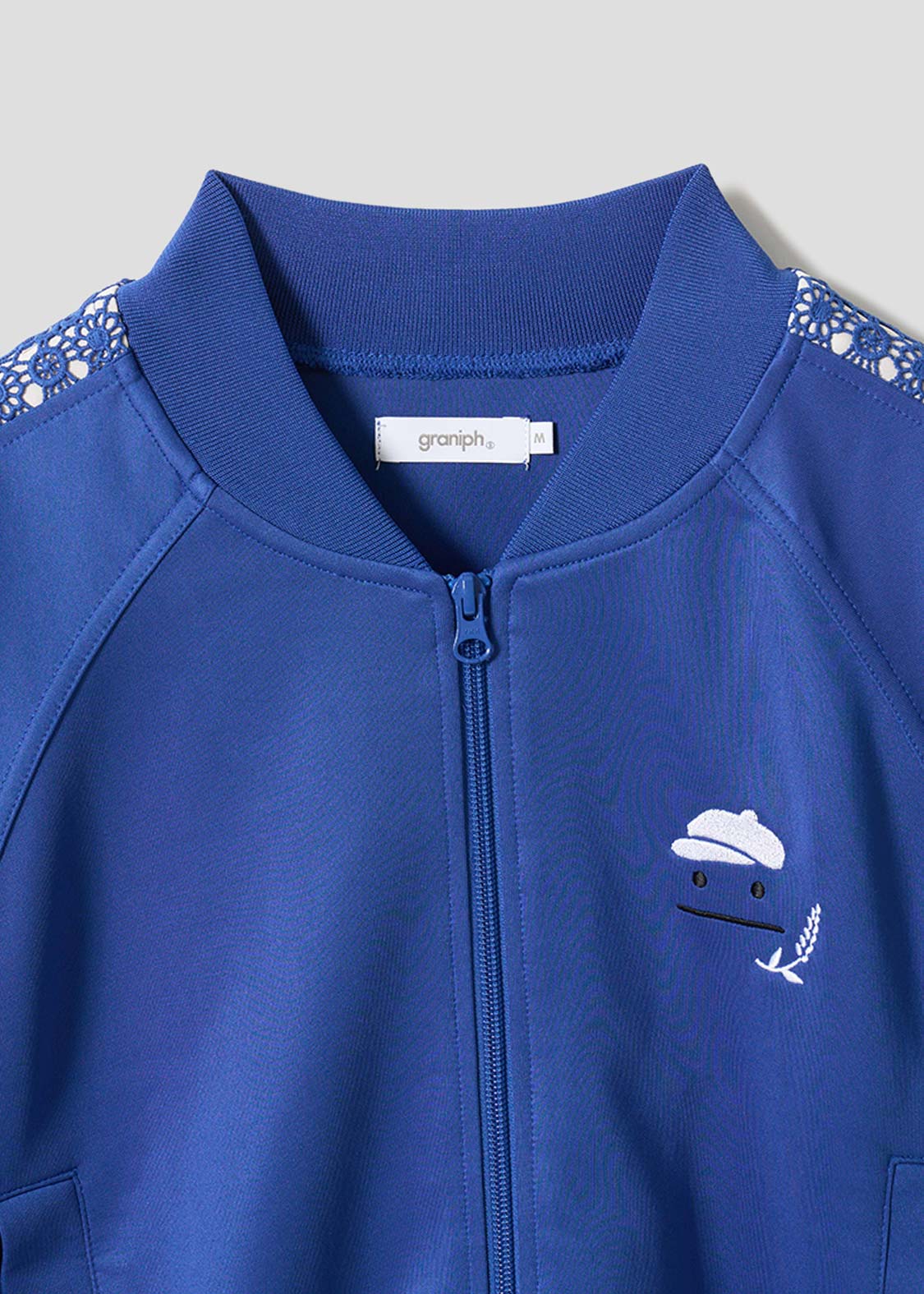 ・存在感のある袖のレース切替が目を引くトラックジャケット。