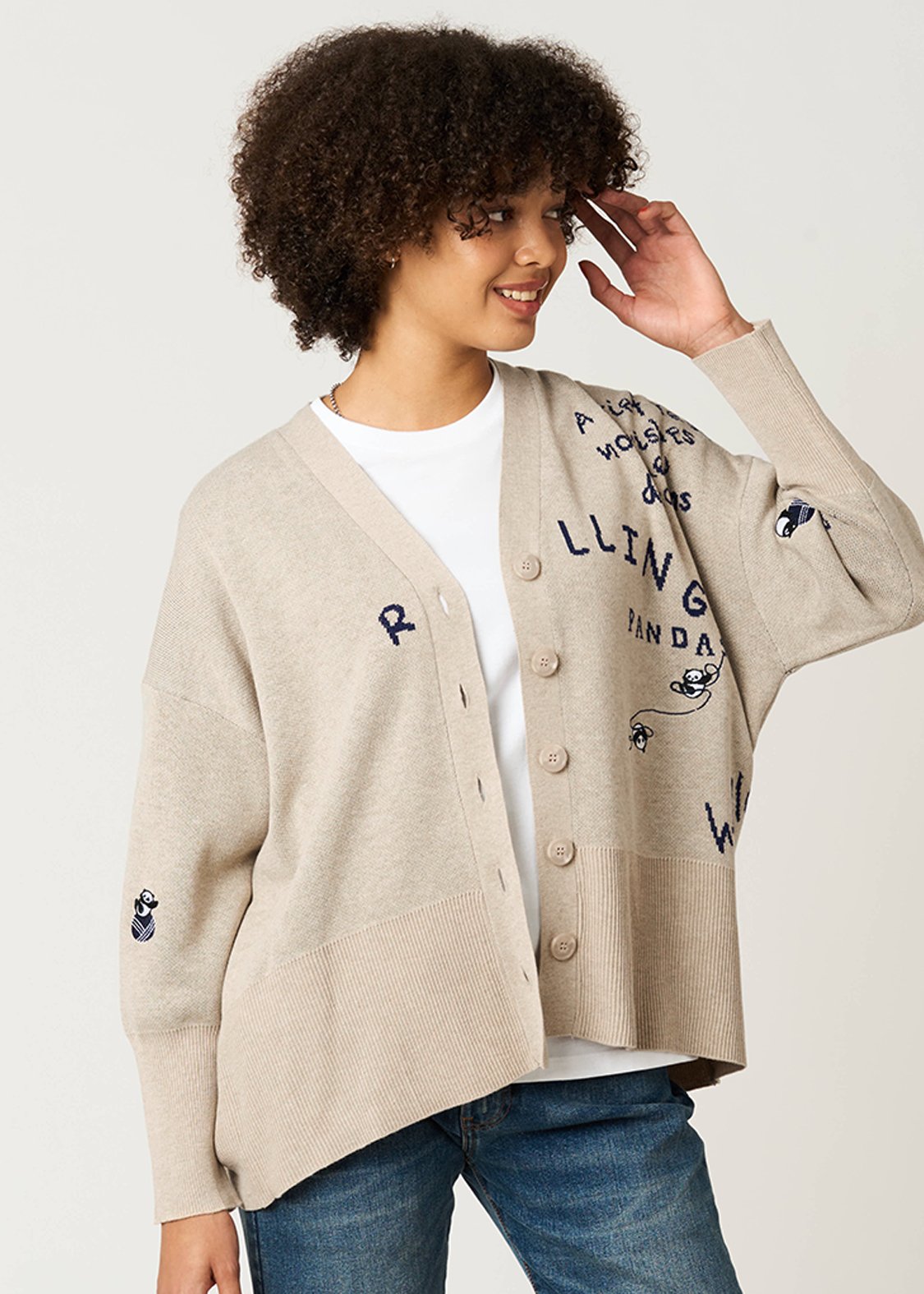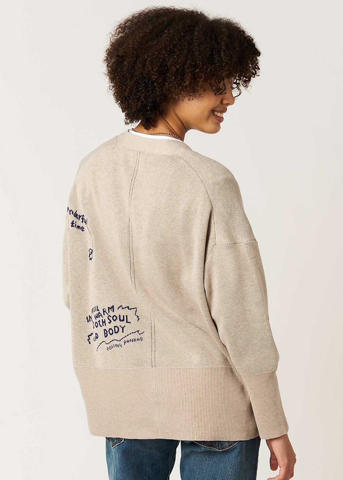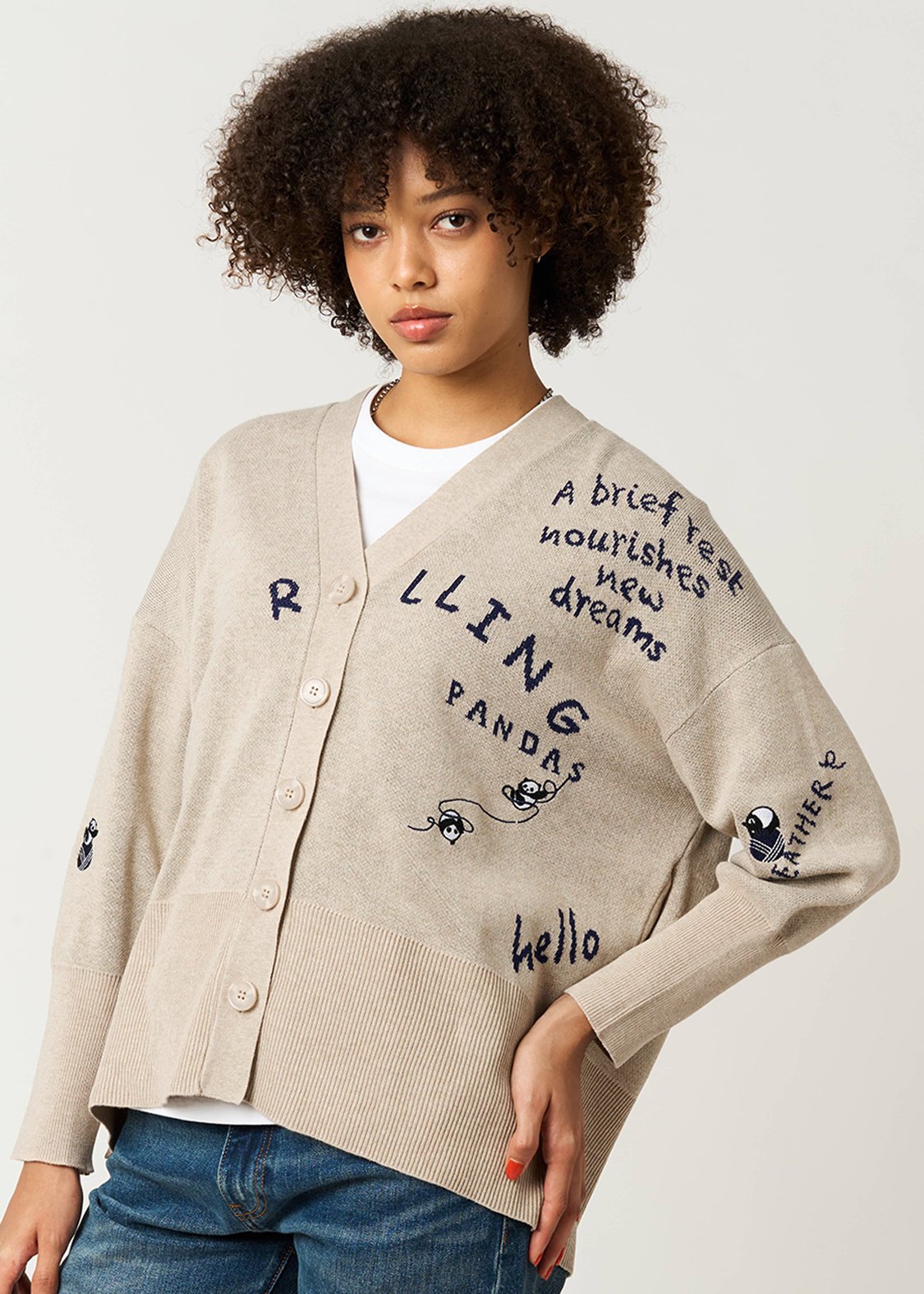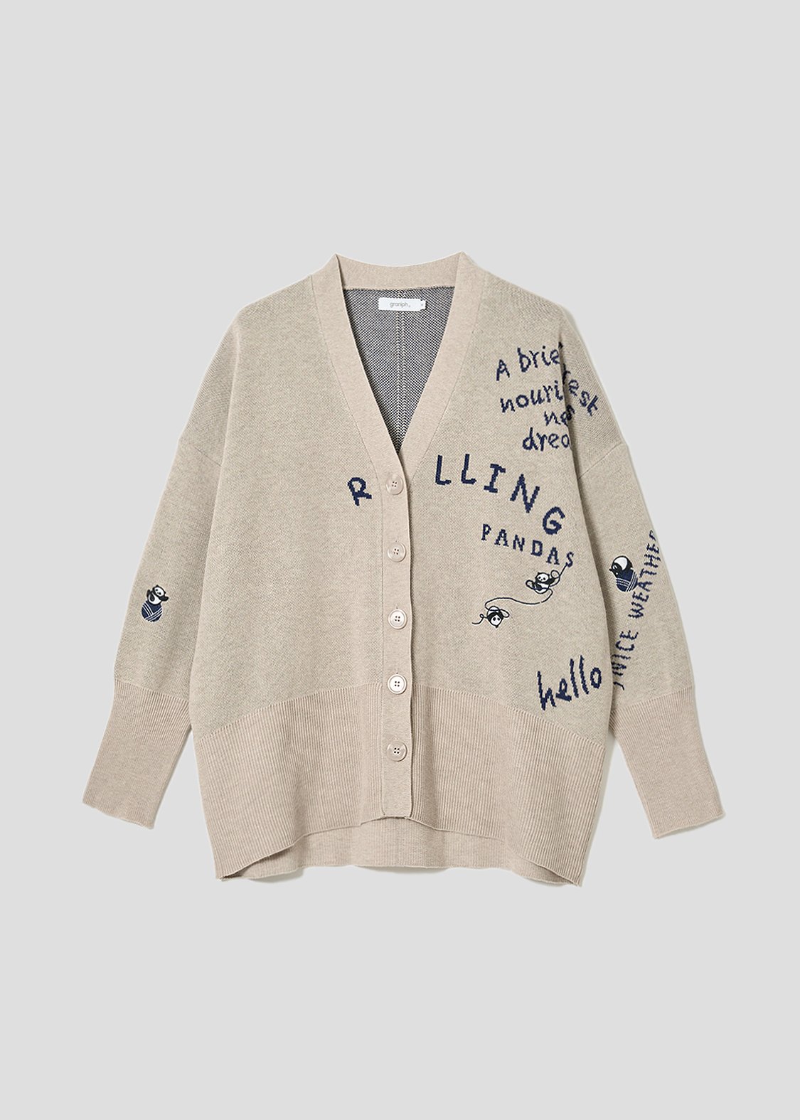 ・ゆったりしたボックスシルエットのVネックカーディガン。