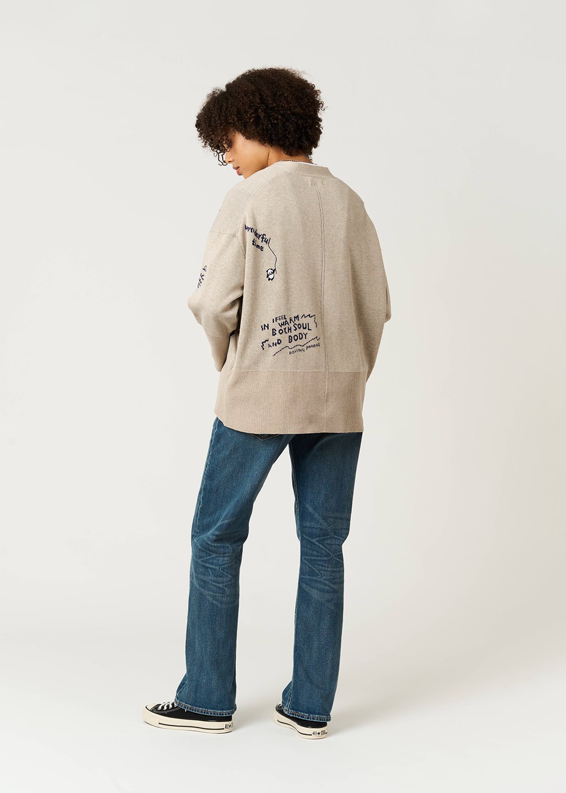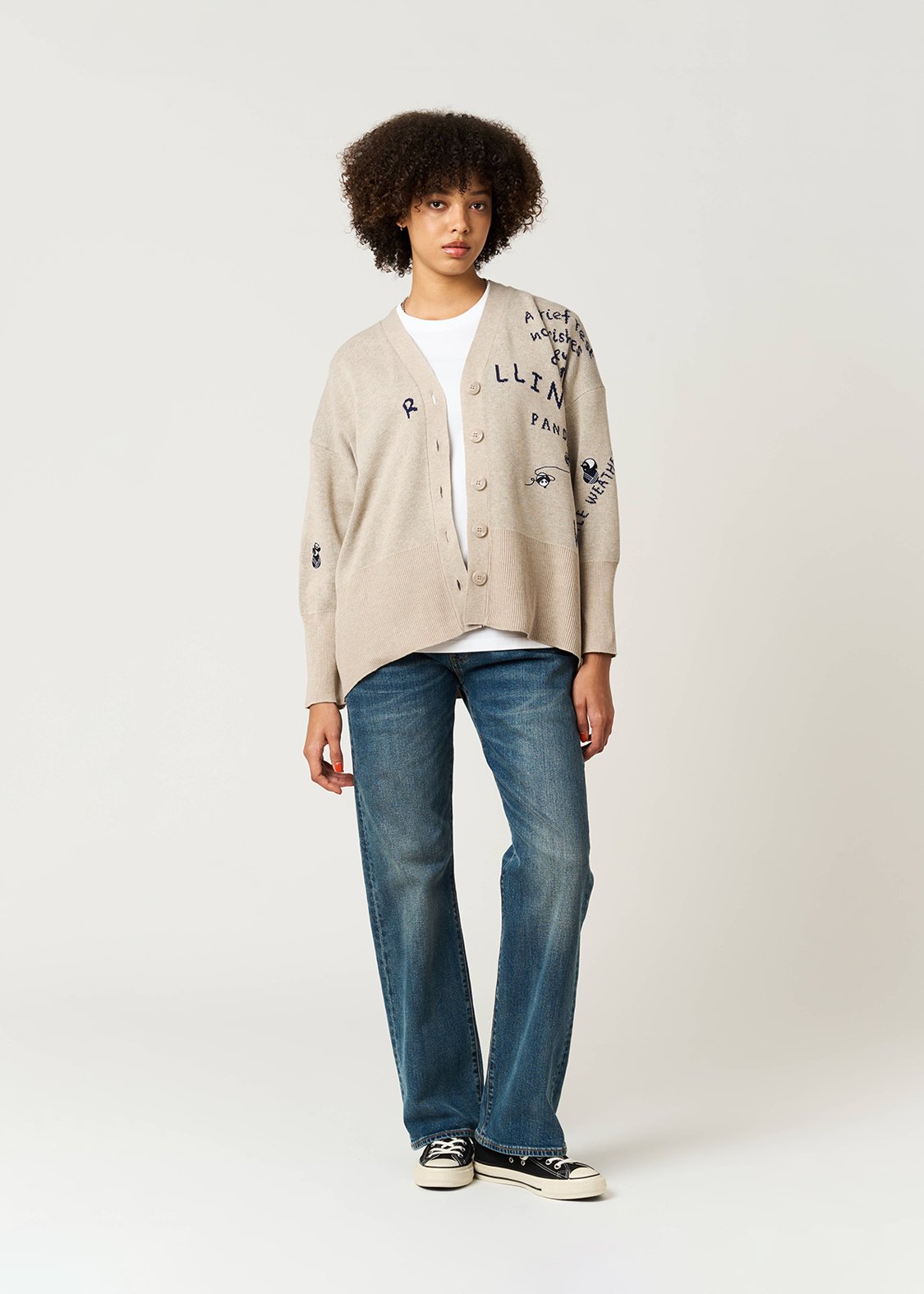 ・ジャカードと刺繍のミックスで落書き風の柄を表現したアイテム。