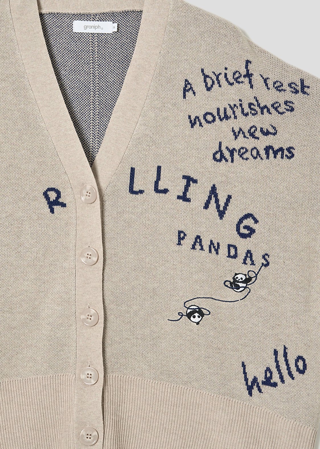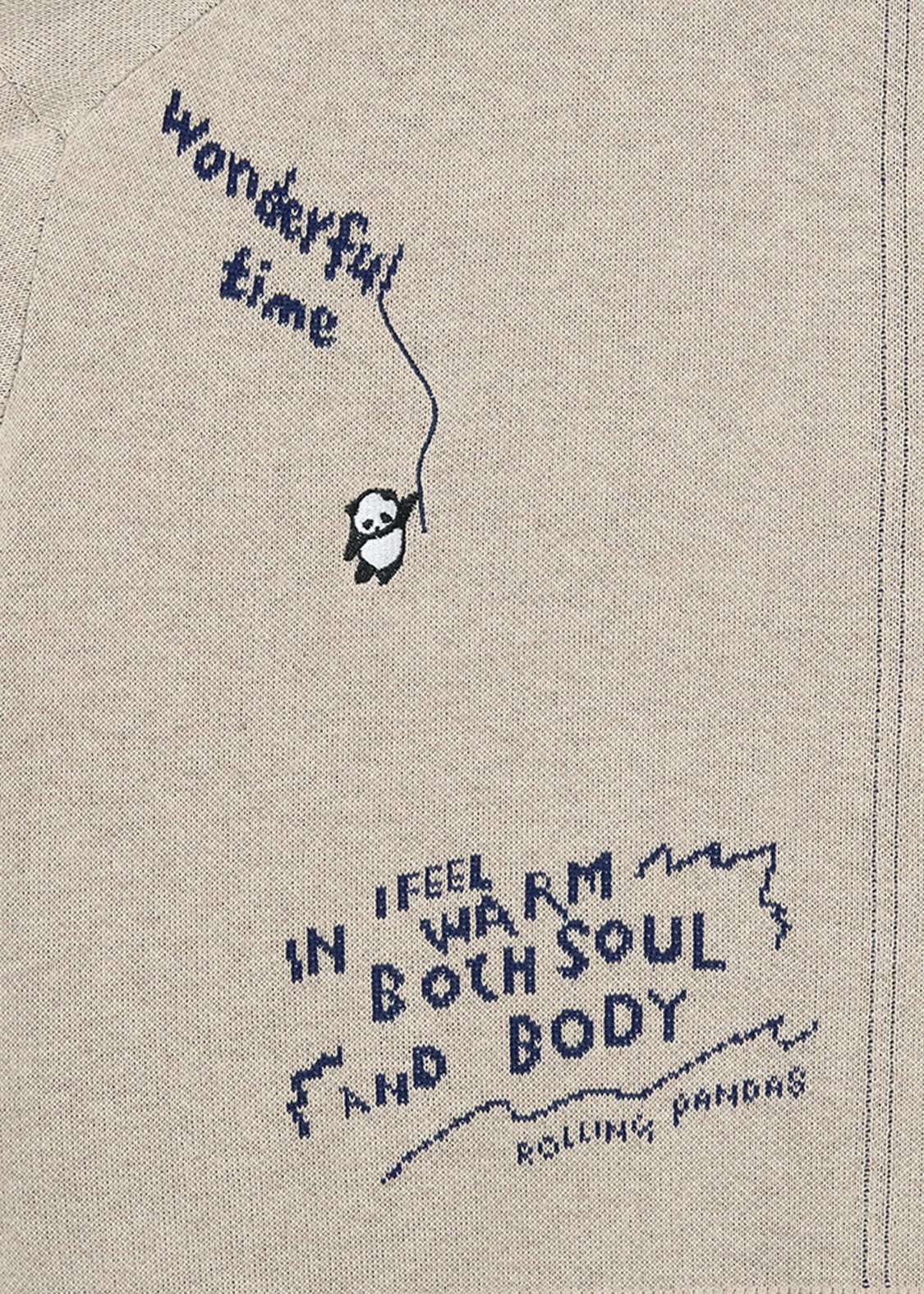 毛糸とコロコロ絡まりながら楽しむローリングパンダズ。編み物ショップをイメージし、毛糸と戯れる姿を温かみのあるデザインで表現しました。