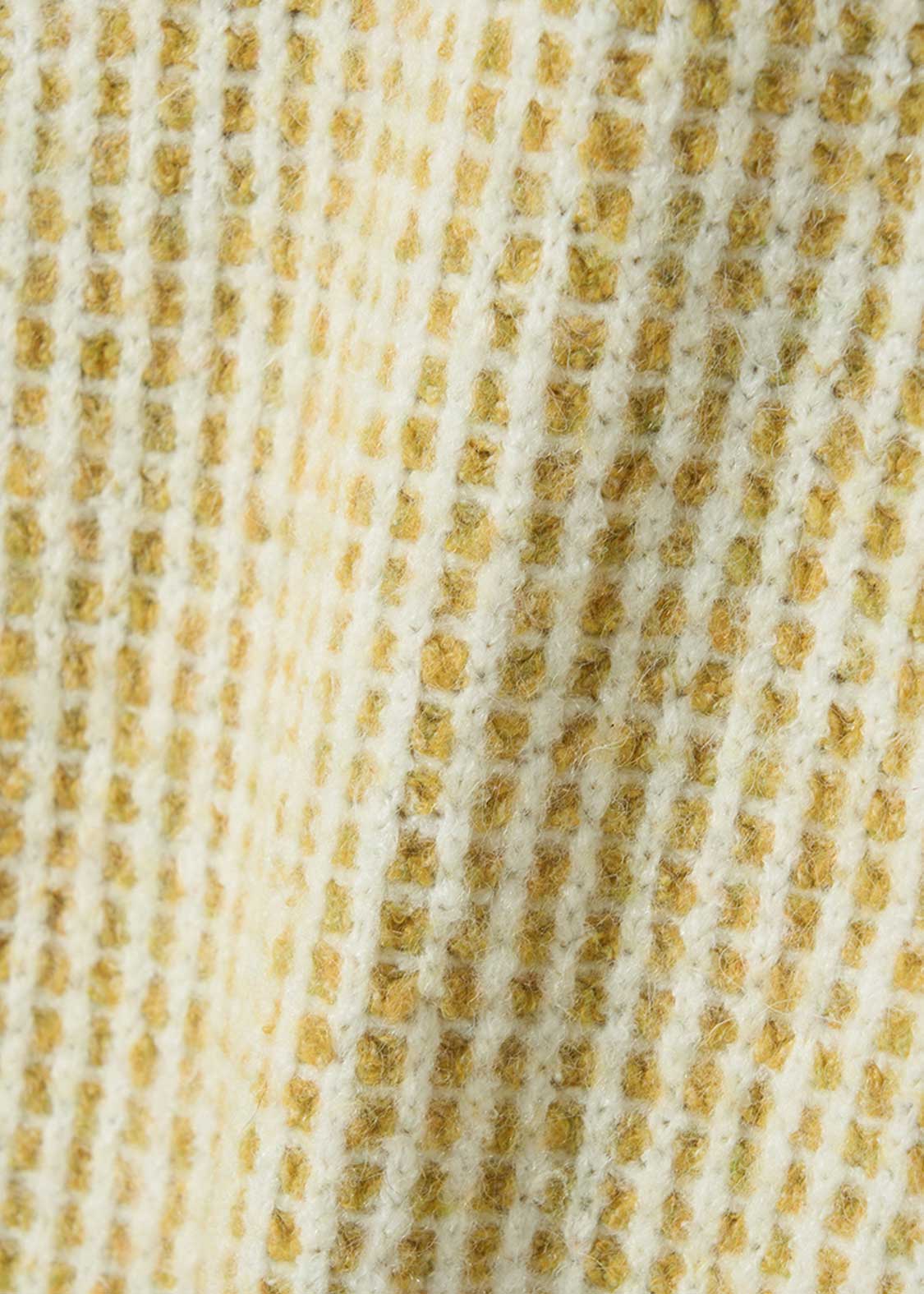 ・アームホールのラインや後裾のスリットもポイントになるデザイン性のあるニット。
