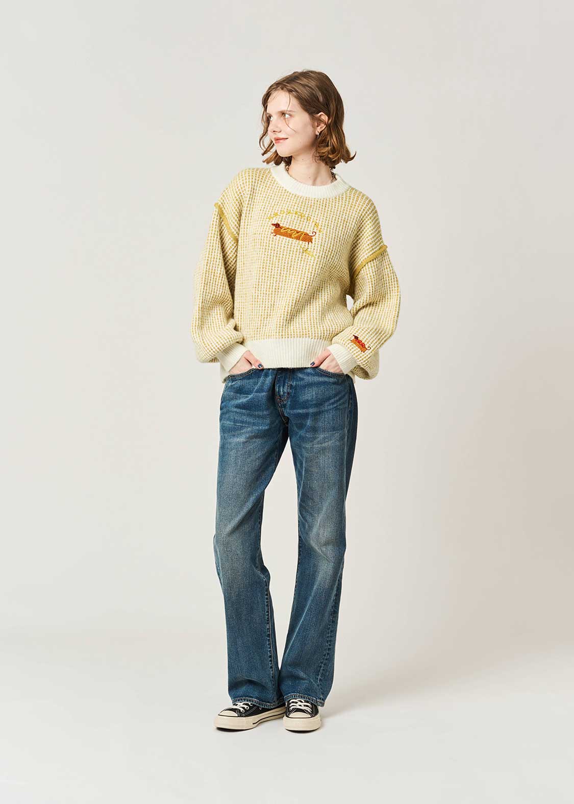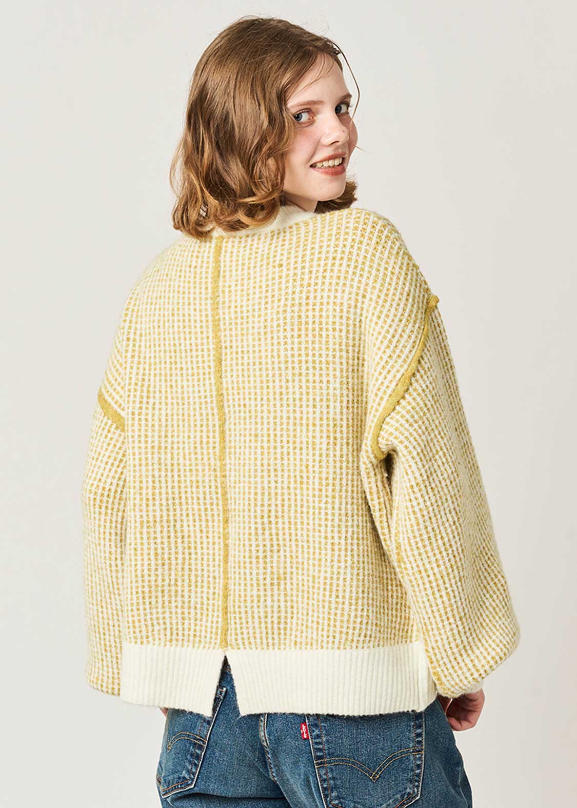 ・ふんわりした暖かみのある糸を使用したニットプルオーバー。