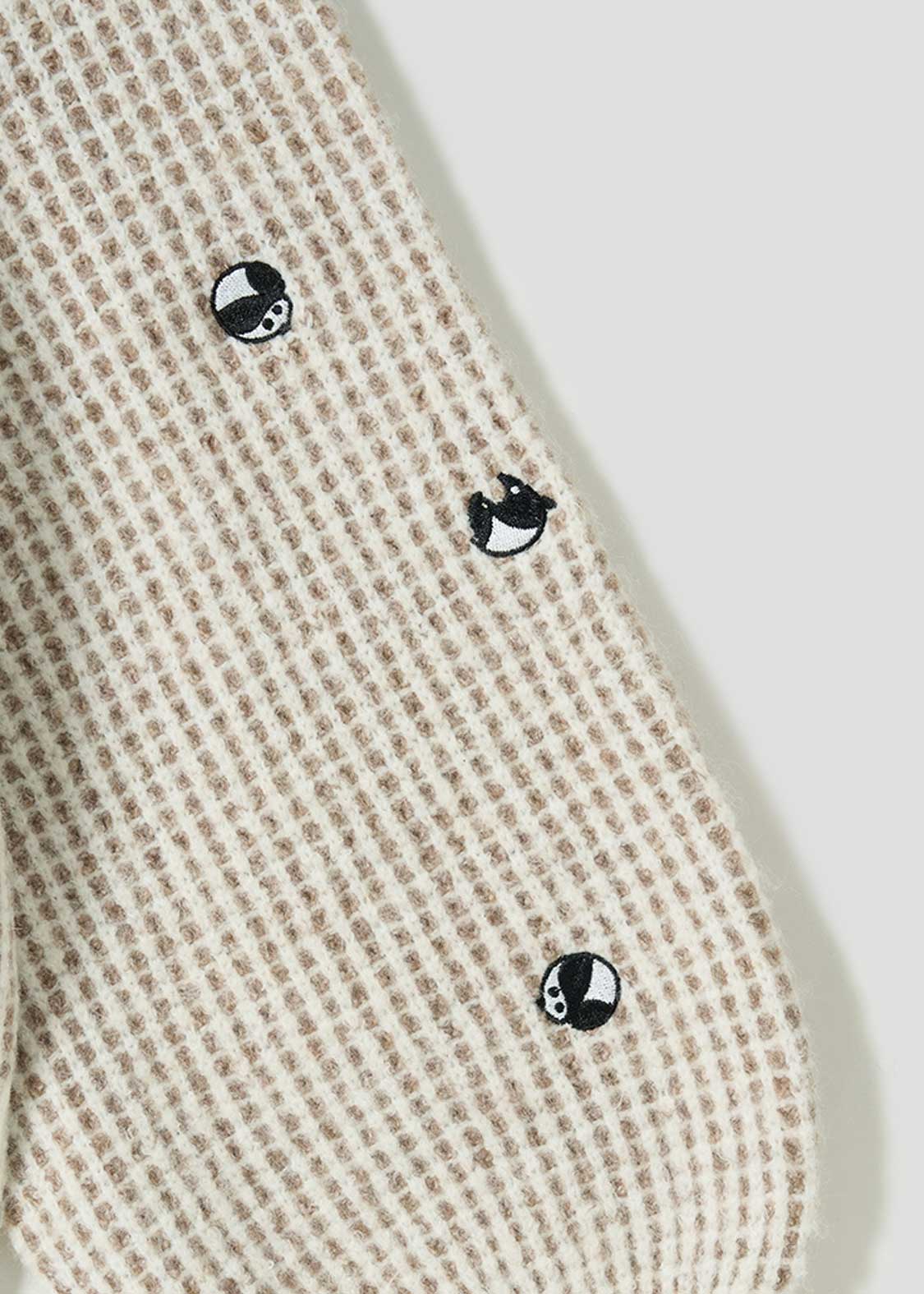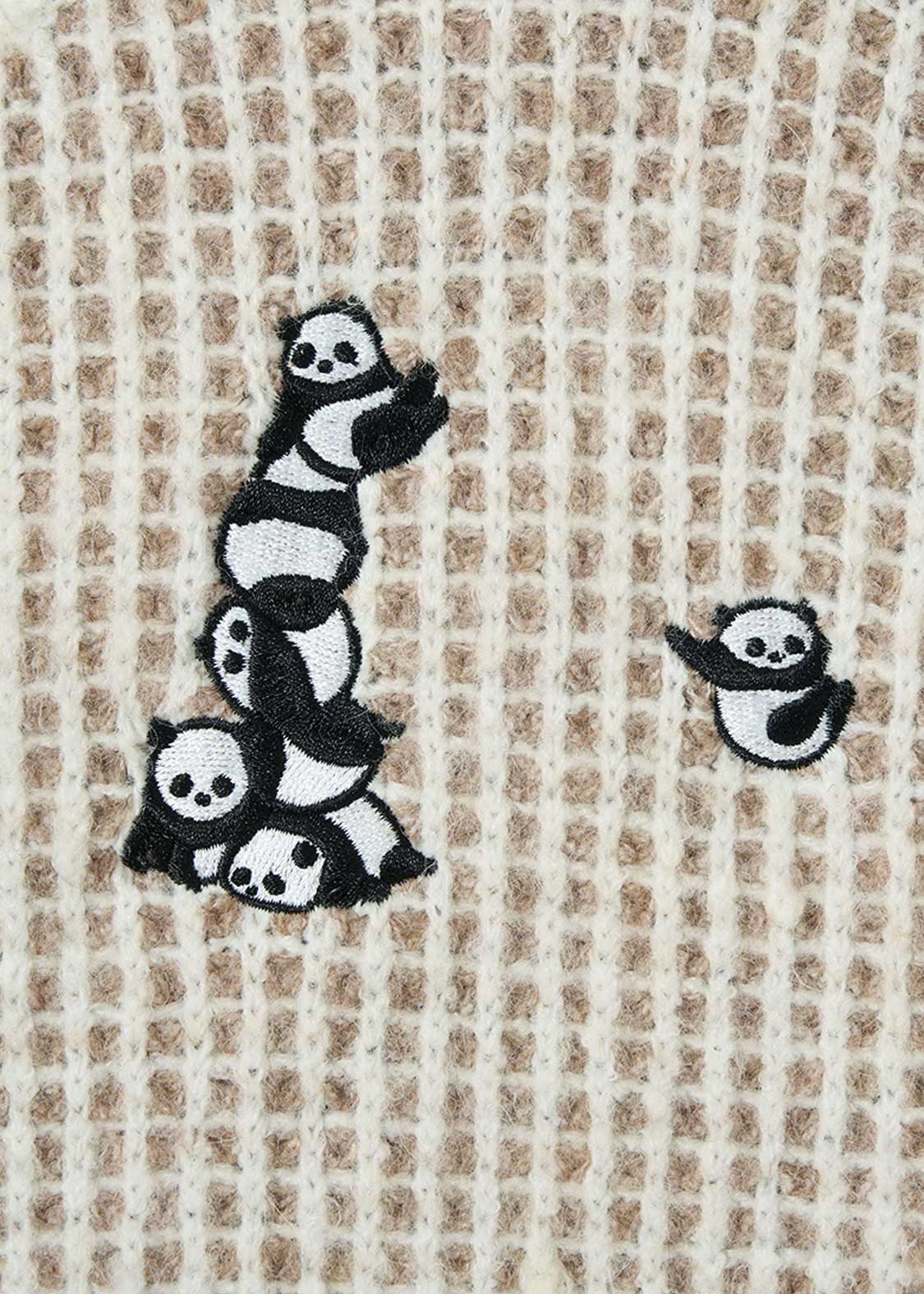 毬のように体を丸めた赤ちゃんパンダが、ころころと転がり落ちていく。その愛らしい姿に思わずほっこり気分になる、キュートなデザインです。