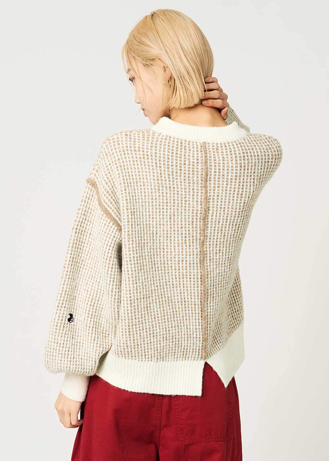 ・ふんわりした暖かみのある糸を使用したニットプルオーバー。