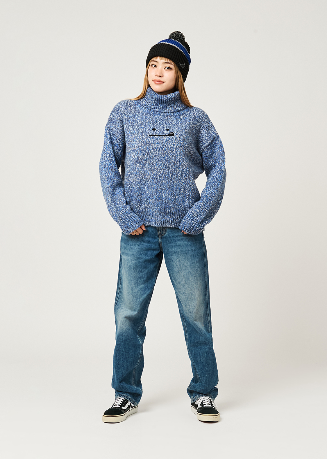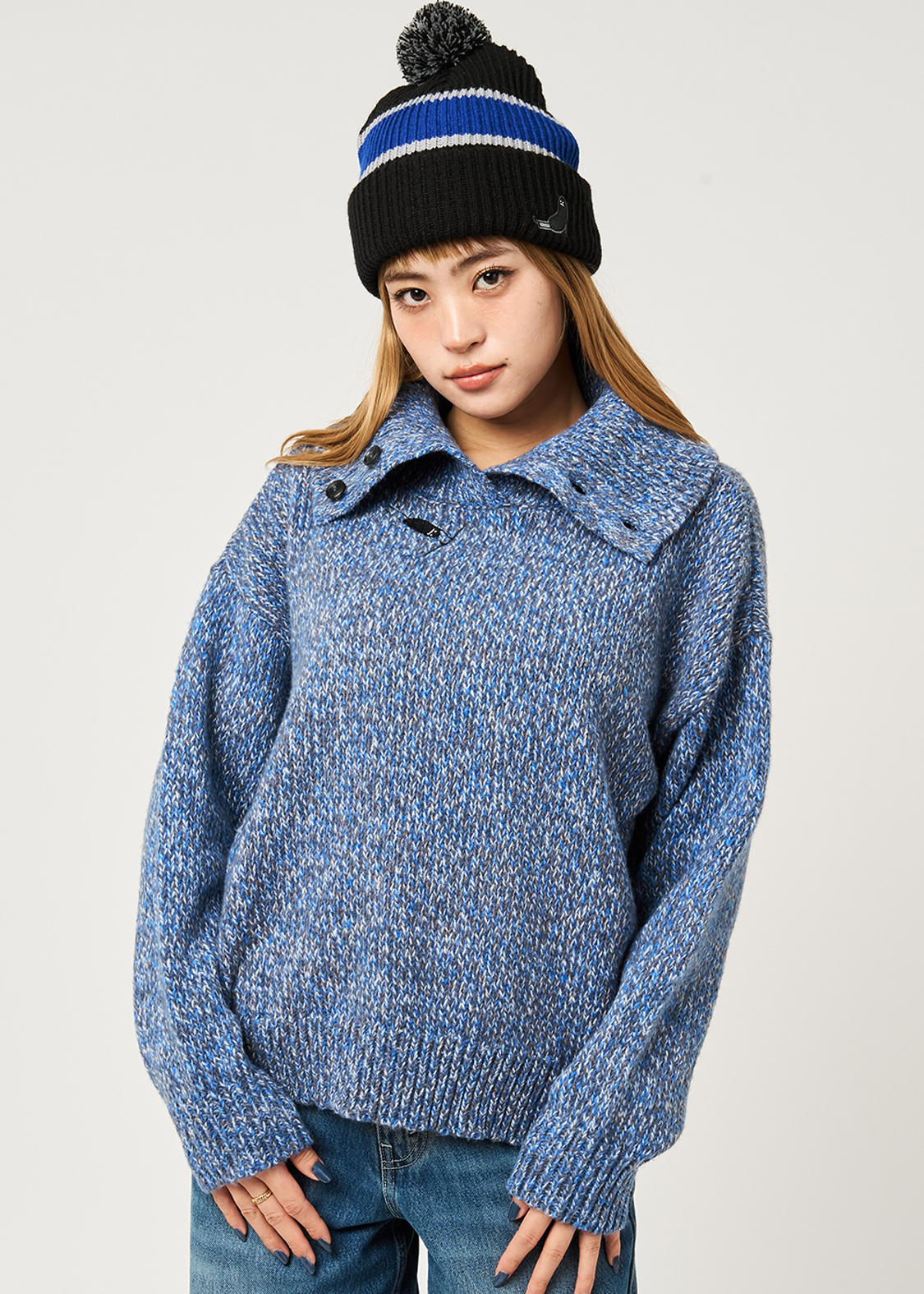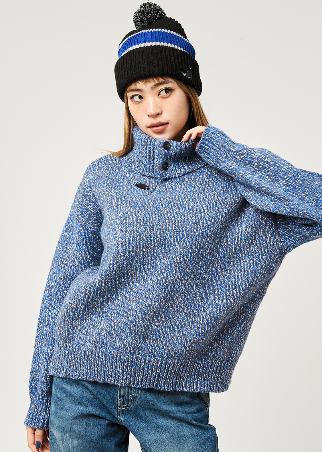 ・ボリュームのある襟が特徴のハイネックニット。