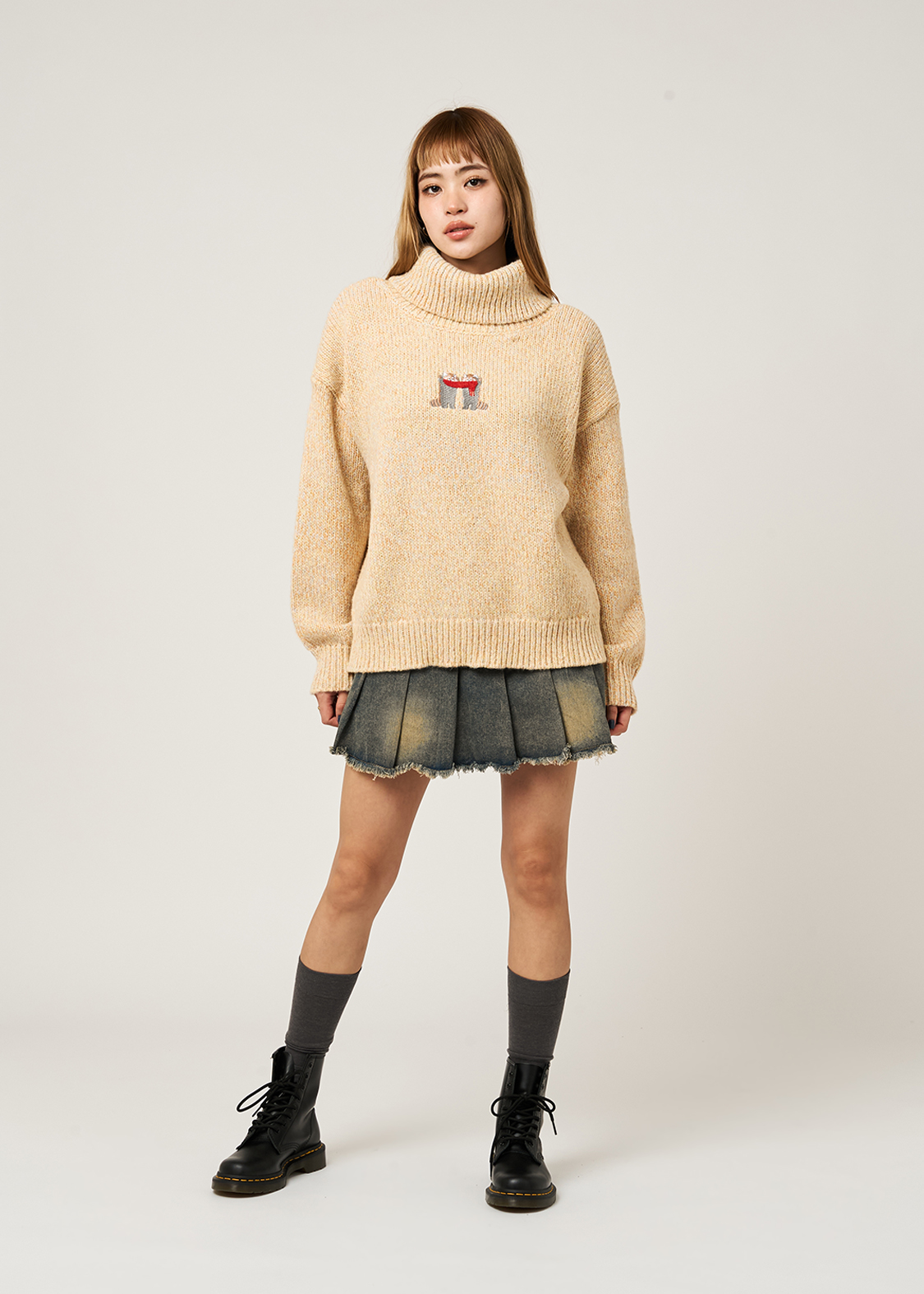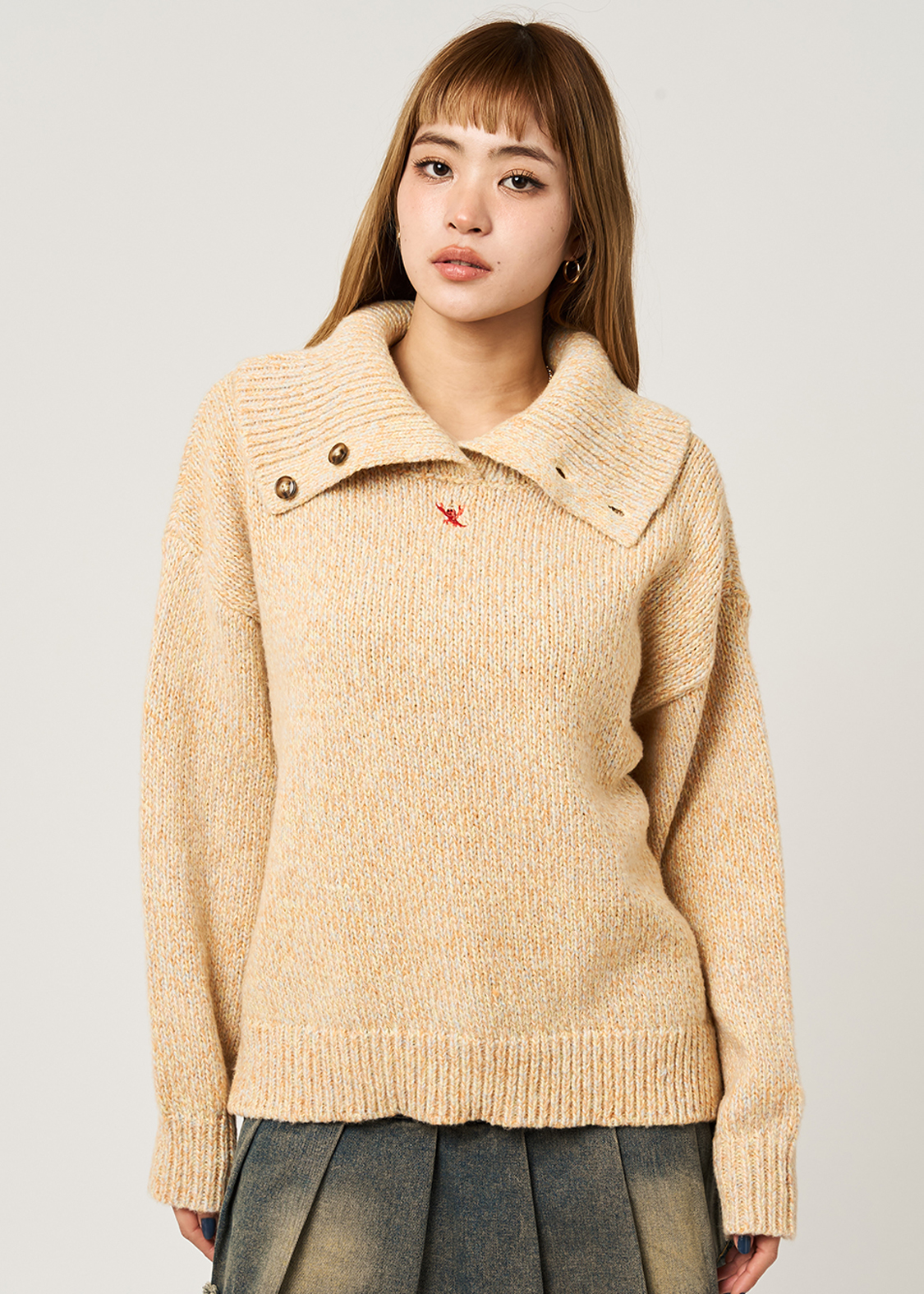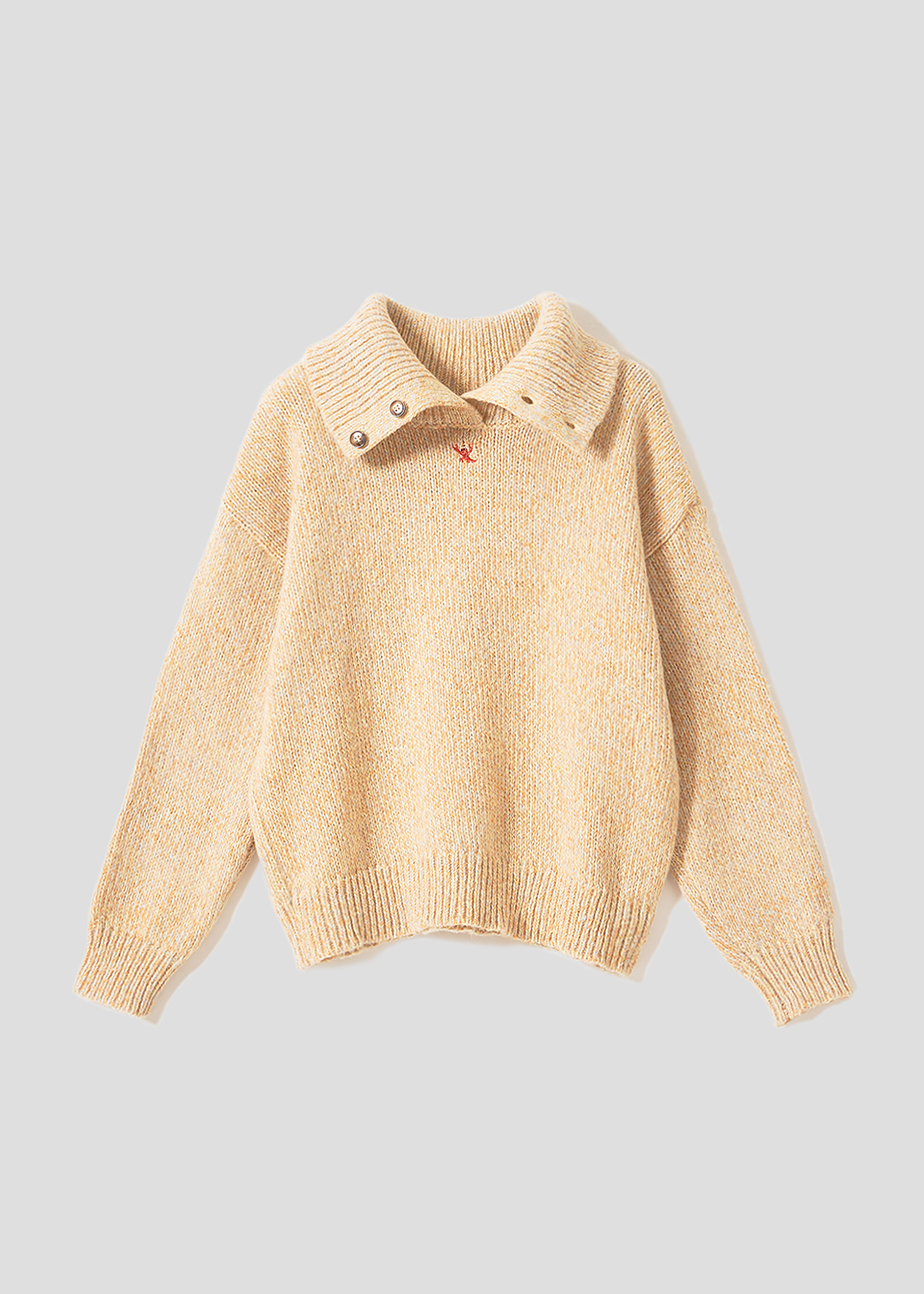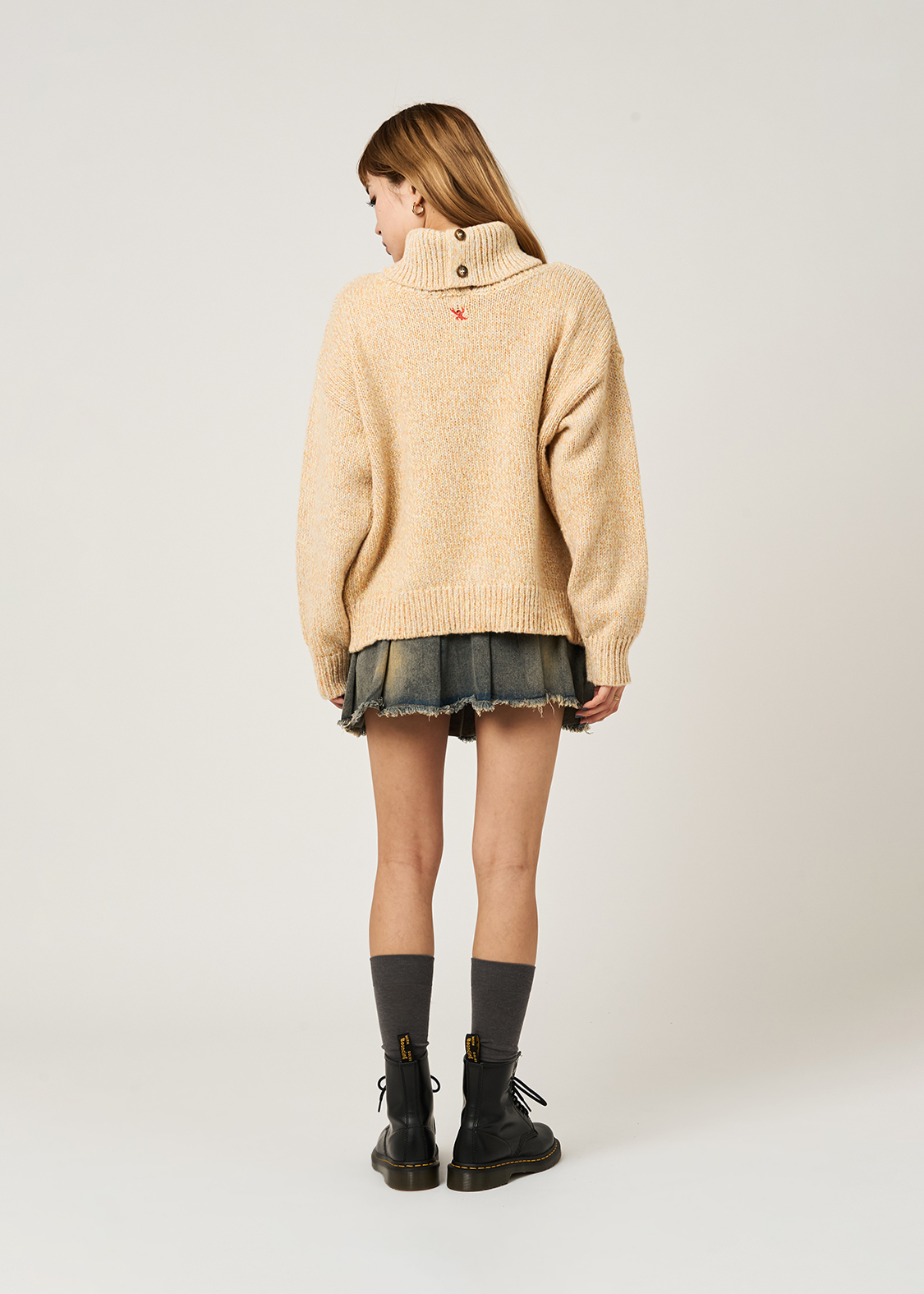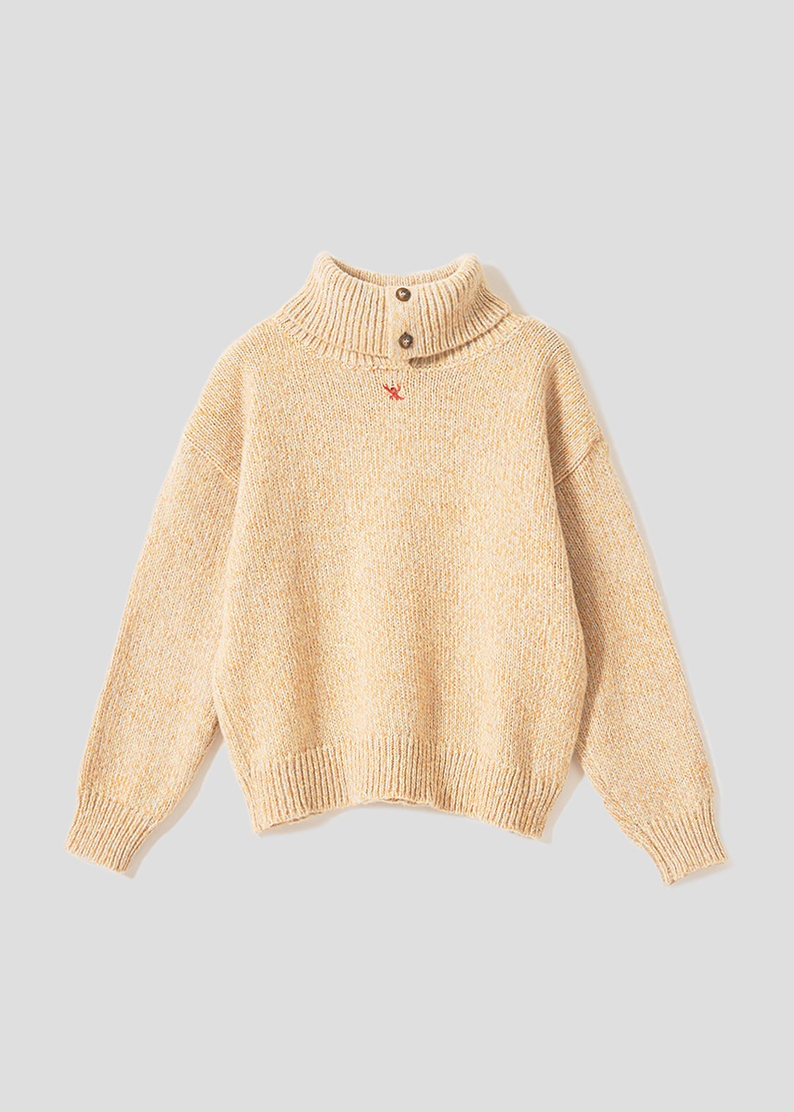 ・ボリュームのある襟が特徴のハイネックニット。