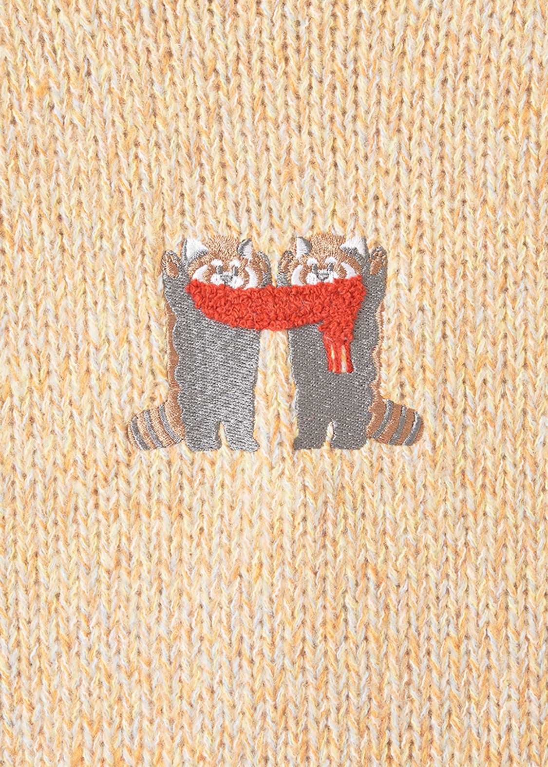 威嚇ポーズがかわいらしくなってしまうことで有名なレッサーパンダのデザイン。マフラーをつけて冬でも元気にイカクしています。