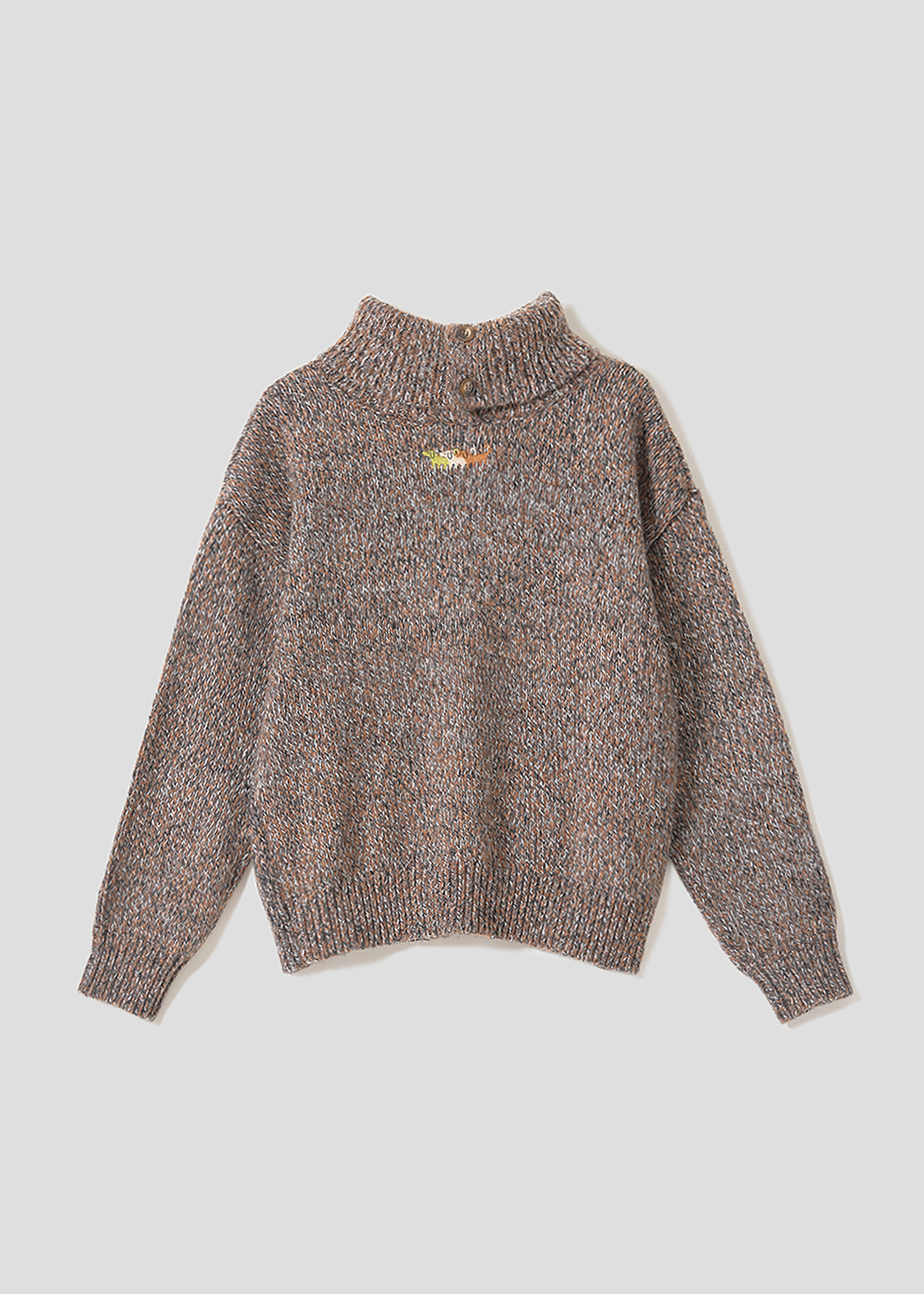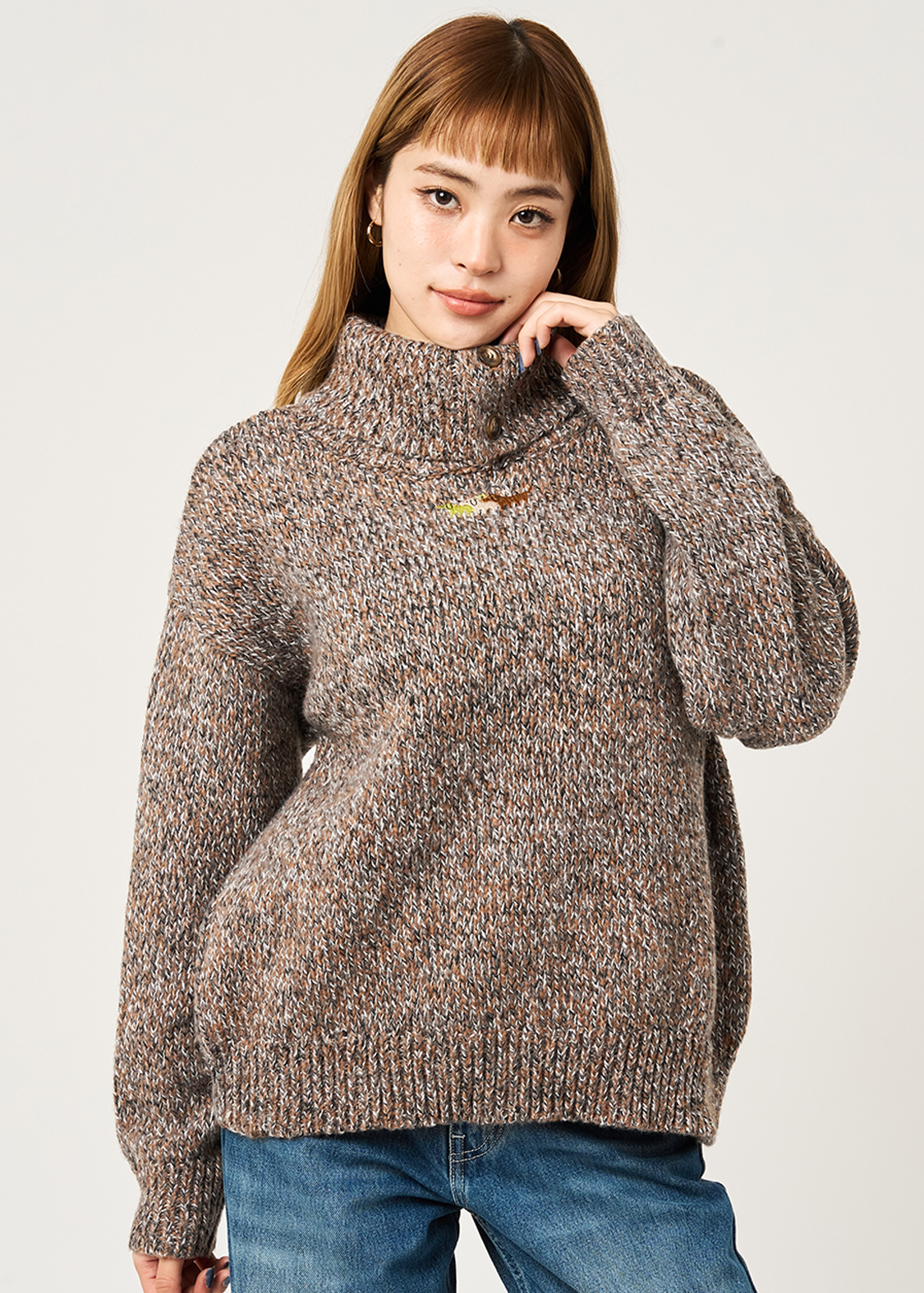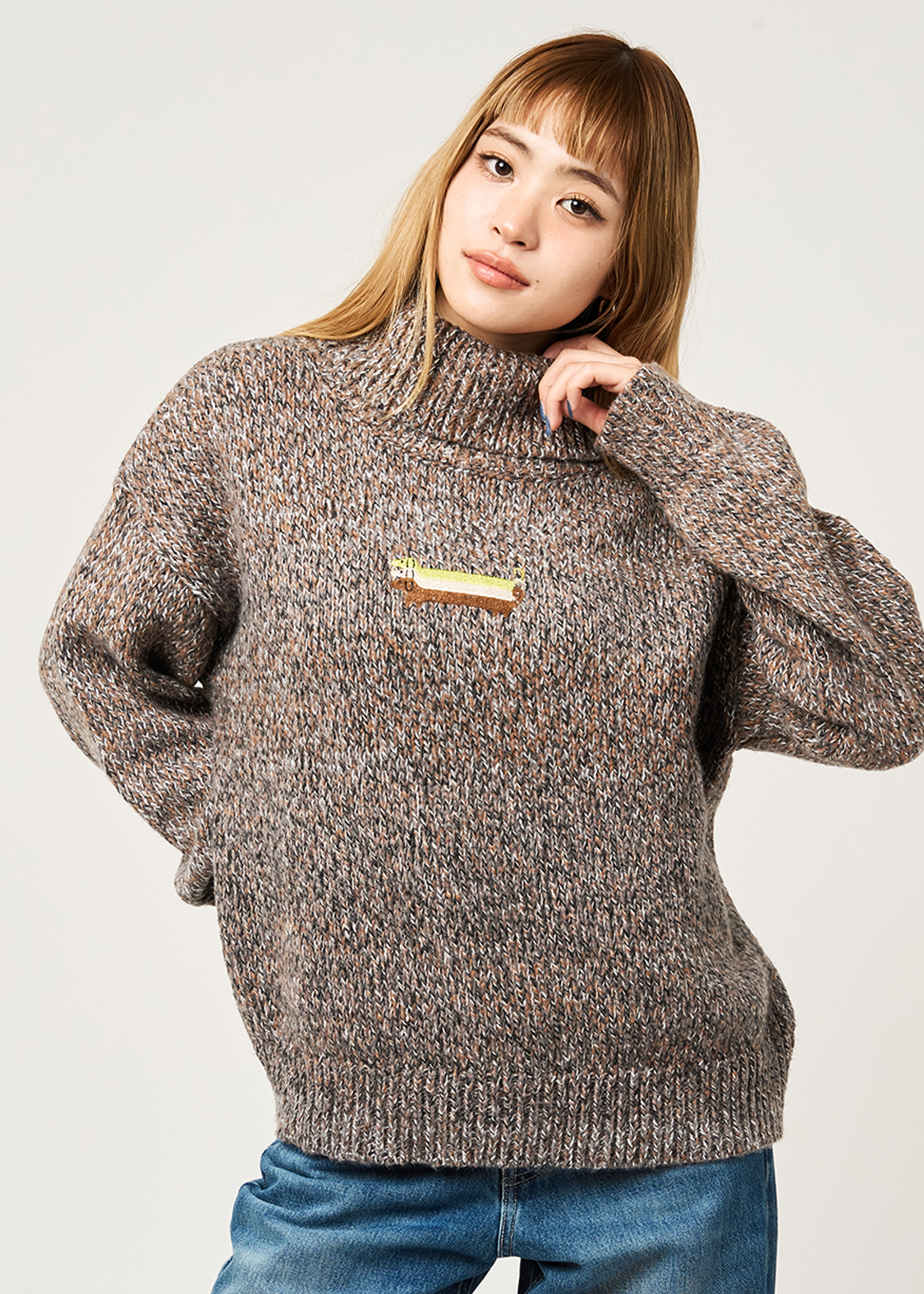 ・ボリュームのある襟が特徴のハイネックニット。