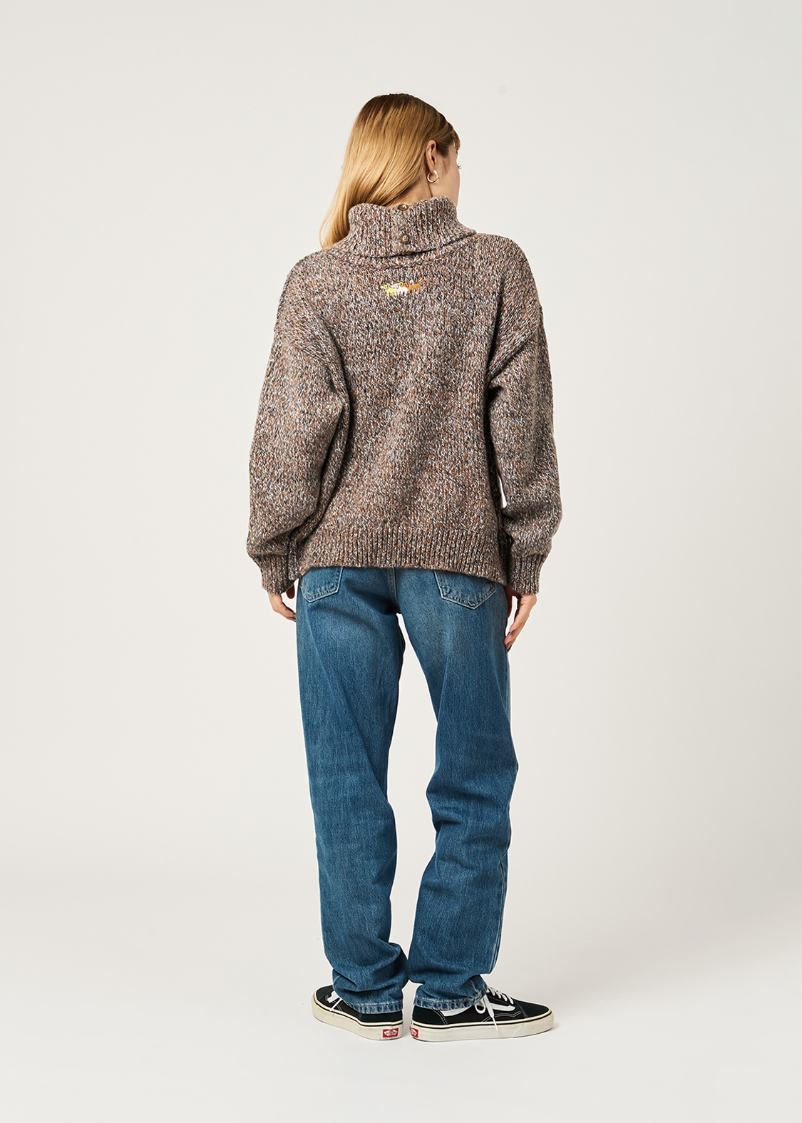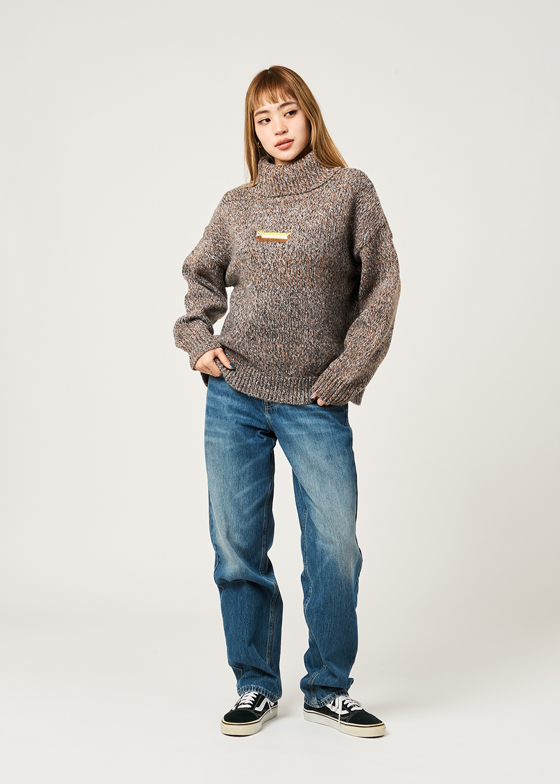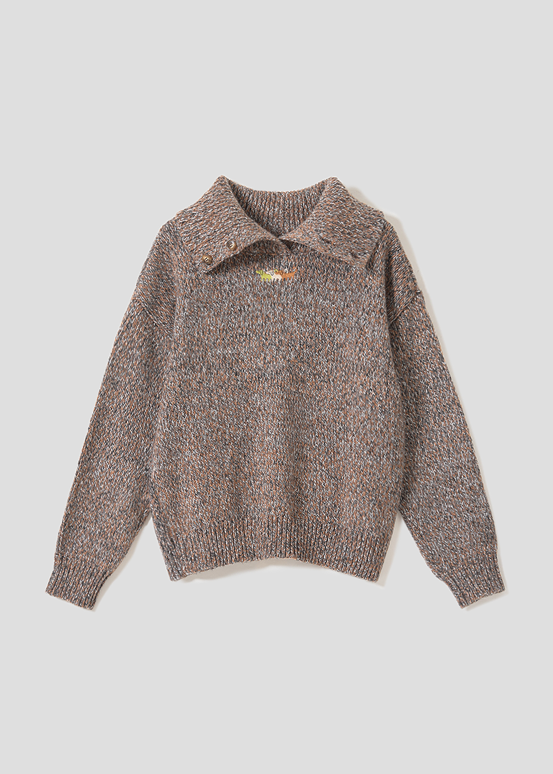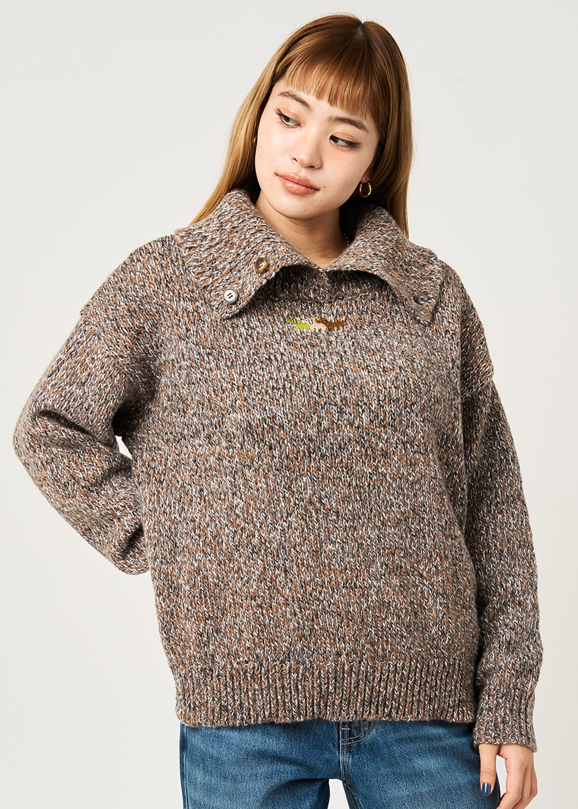・ボリュームのある襟が特徴のハイネックニット。