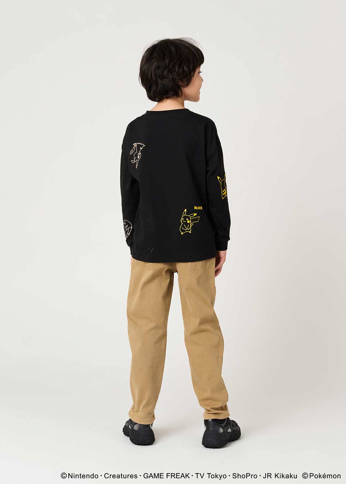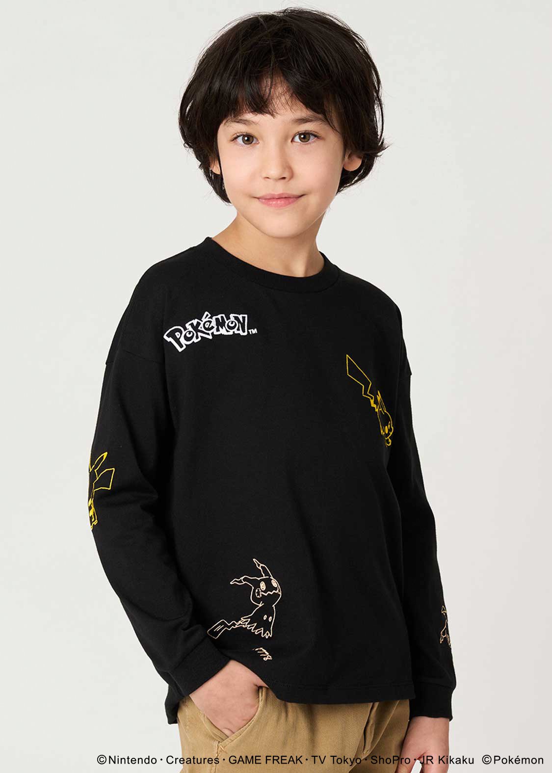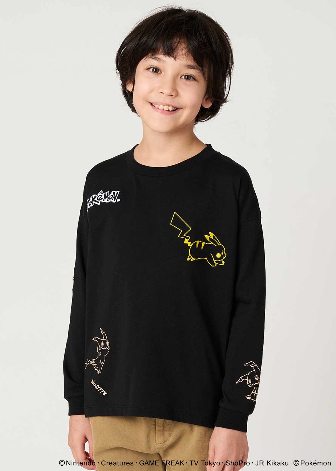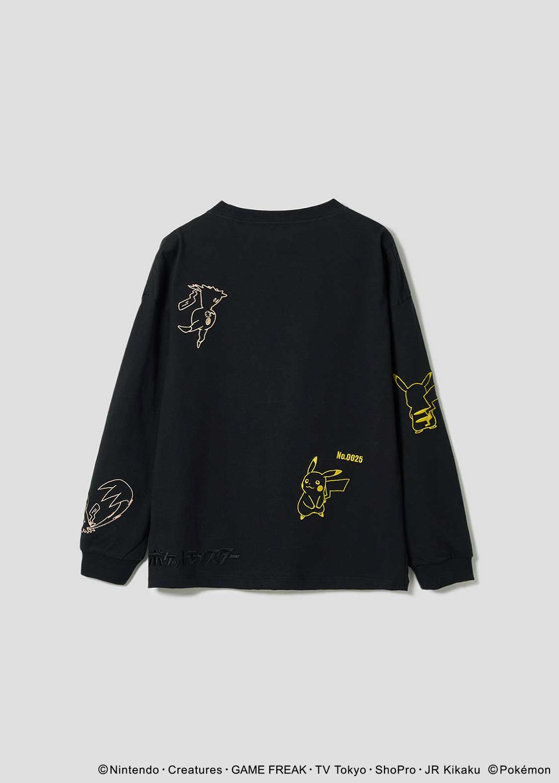 ピカチュウとミミッキュの姿を線画の刺繍で表現したデザイン。お気に入りの姿をぜひ探してみてください!