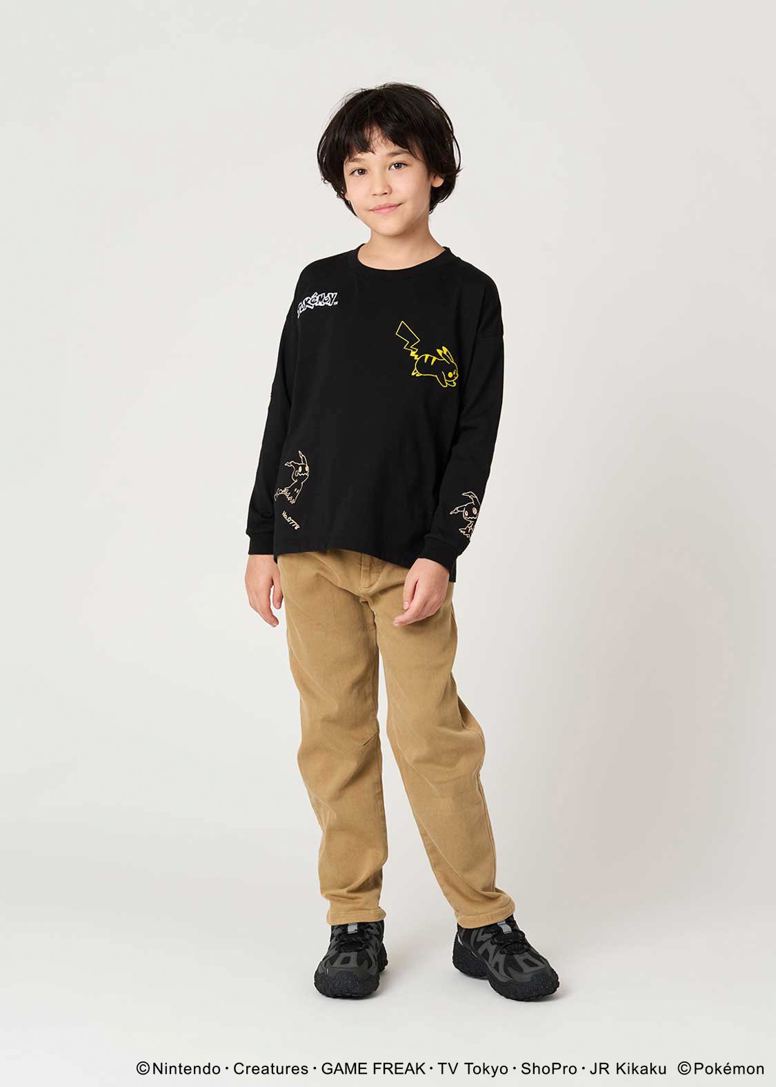 ・風合いの良い天竺を使用した、袖口がリブタイプのキッズ長袖Tシャツ。