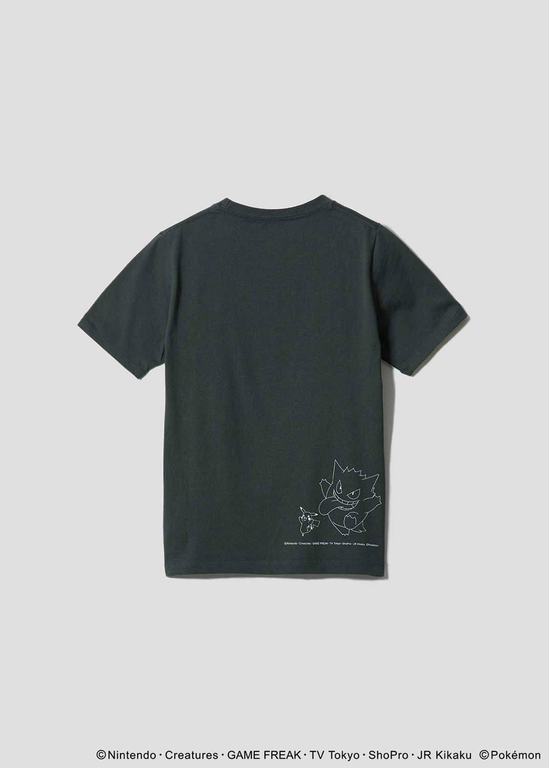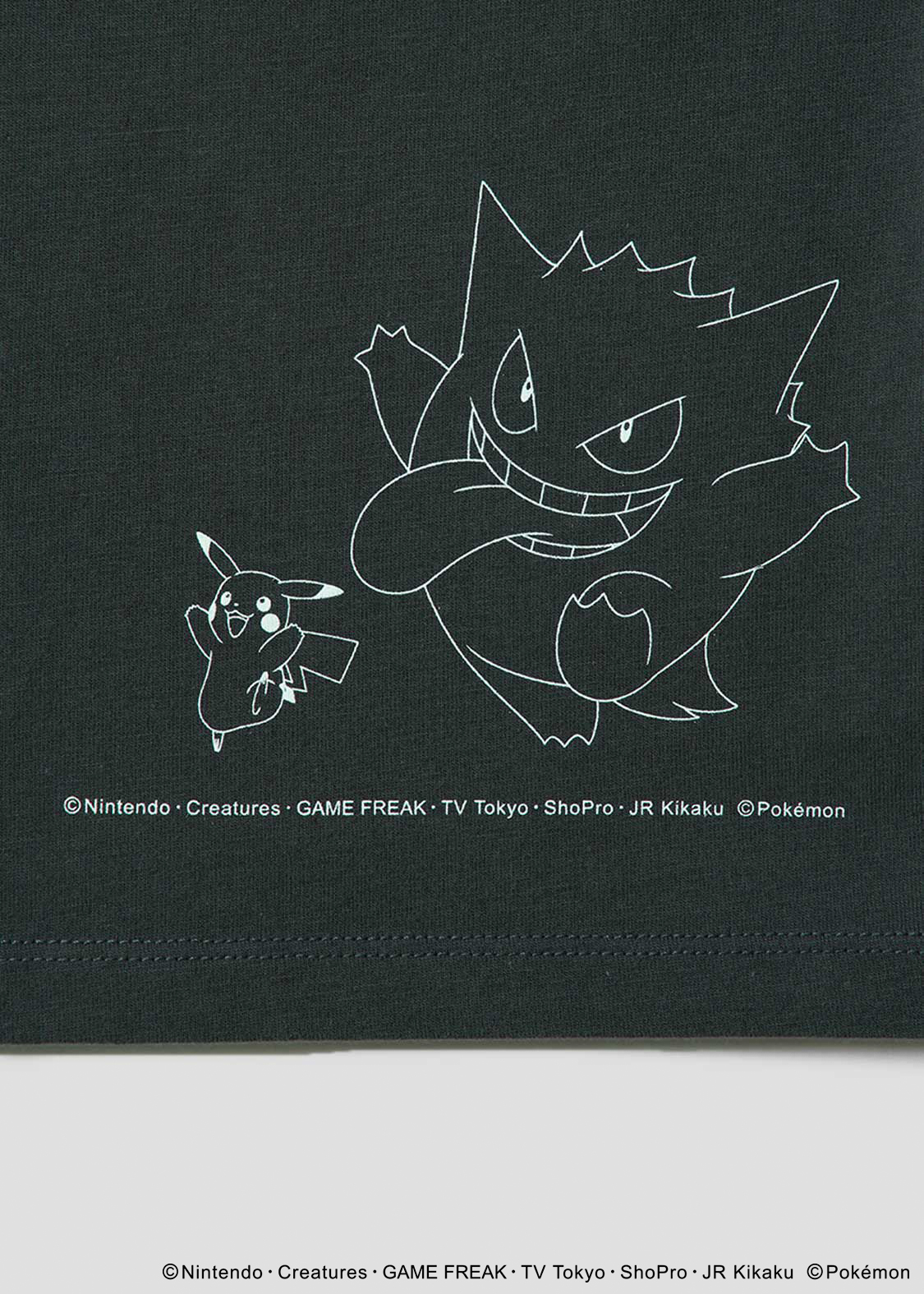 すやすやと眠っているピカチュウのうしろにゲンガーが!バックには両手を上げた2匹の姿がプリントされています。