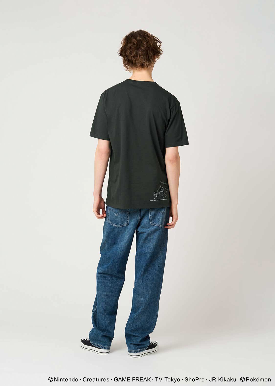 すやすやと眠っているピカチュウのうしろにゲンガーが!バックには両手を上げた2匹の姿がプリントされています。