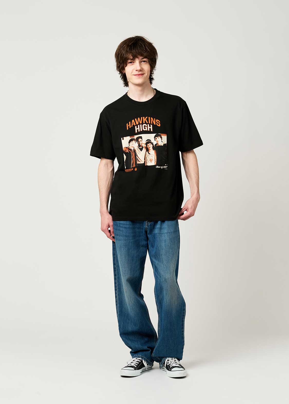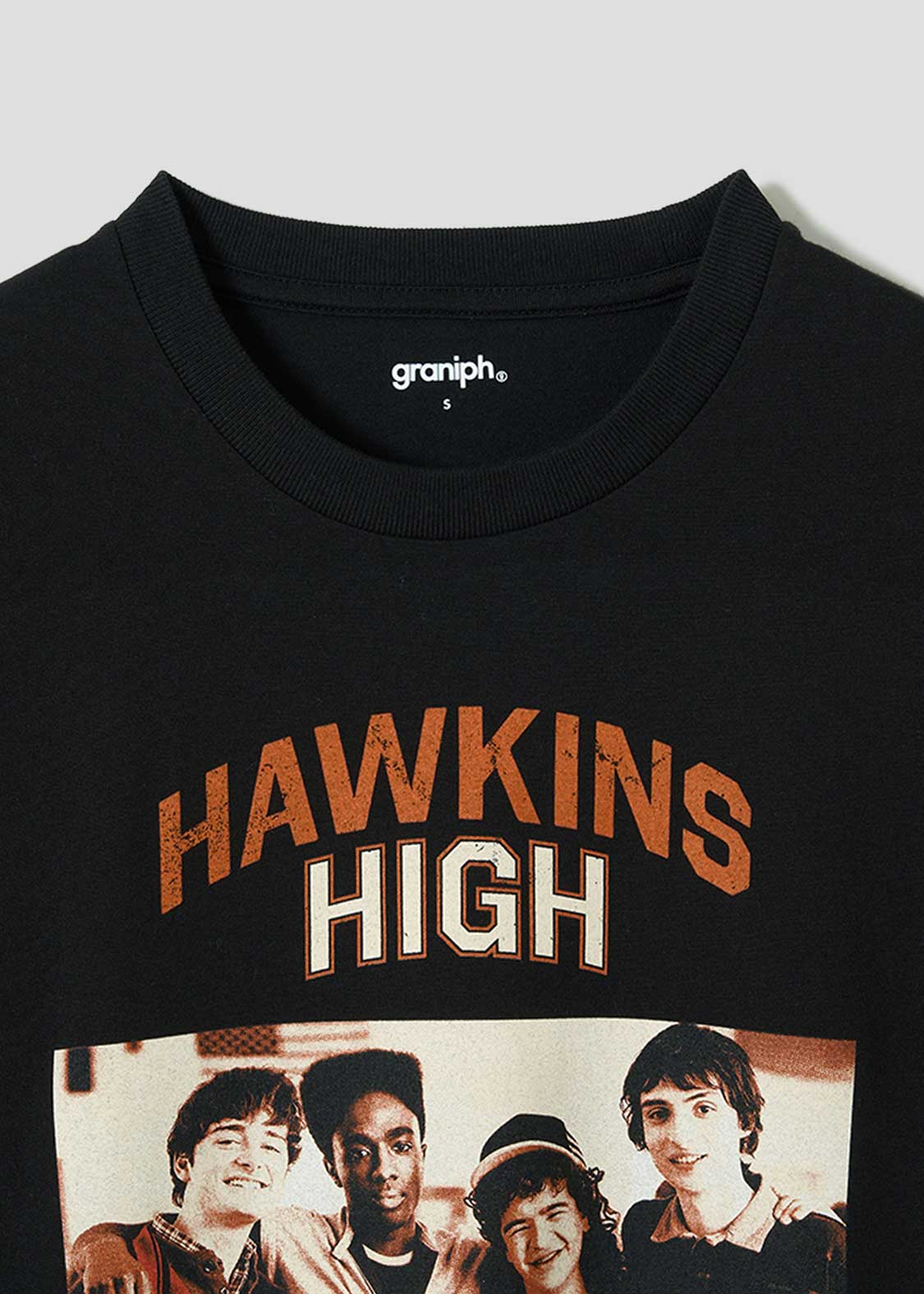 左からウィル、ルーカス、ダスティン、マイクが肩を組む姿をカレッジ風にデザインしました。4人の絆を感じられる1着です。