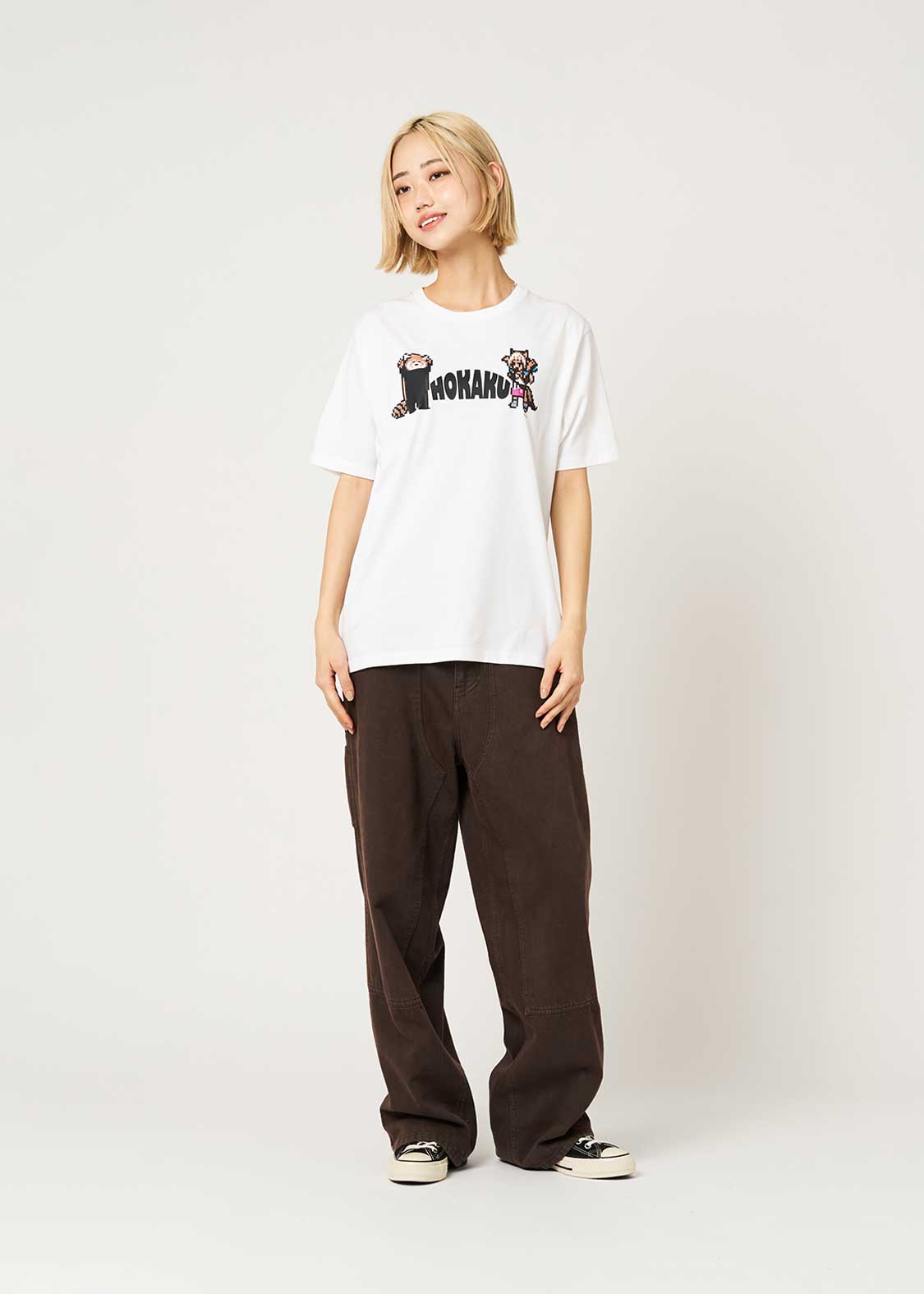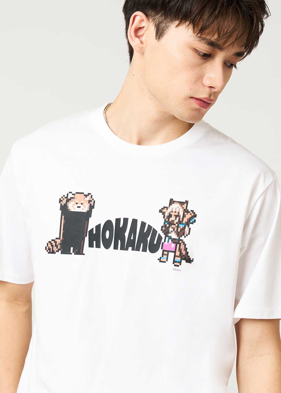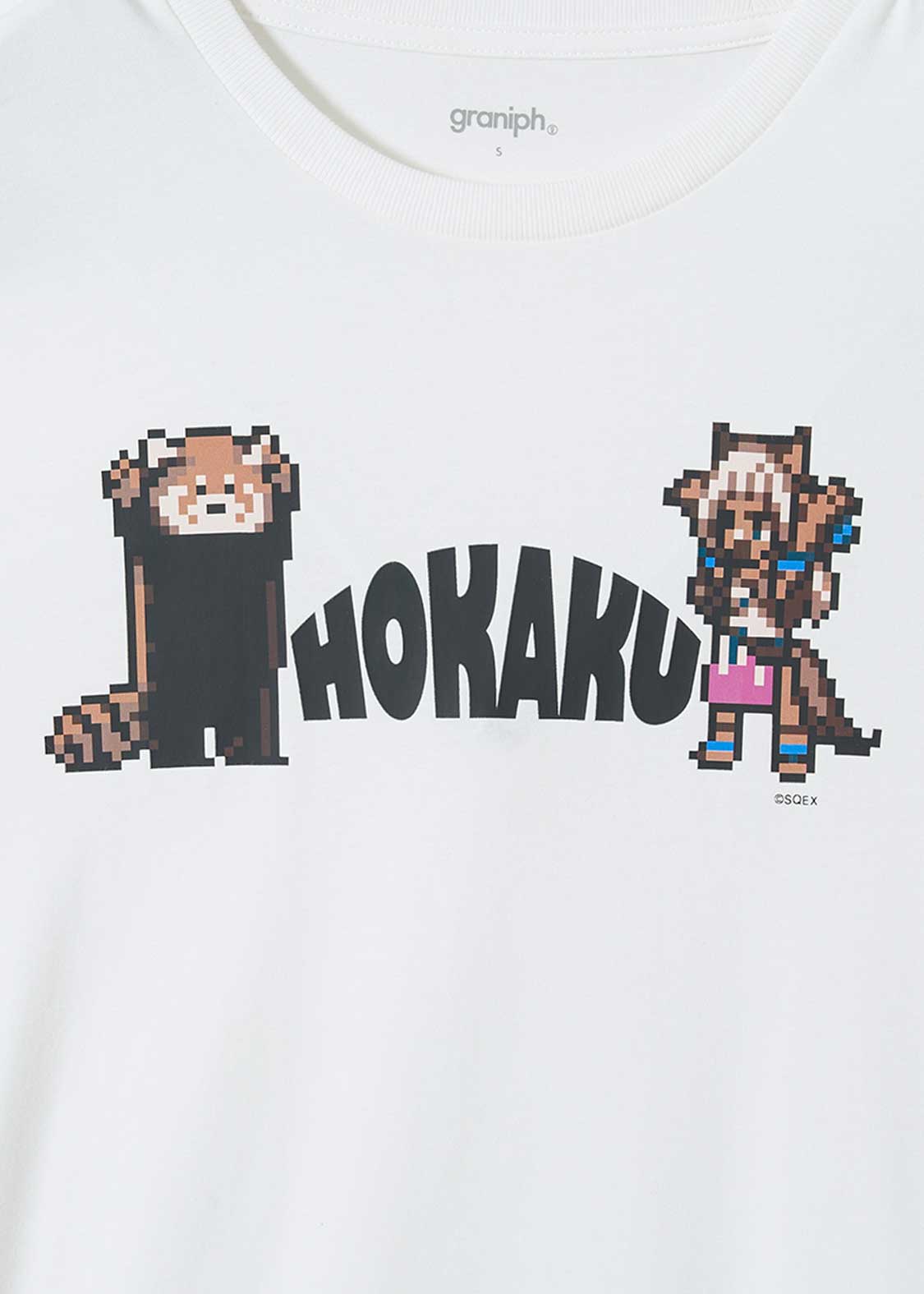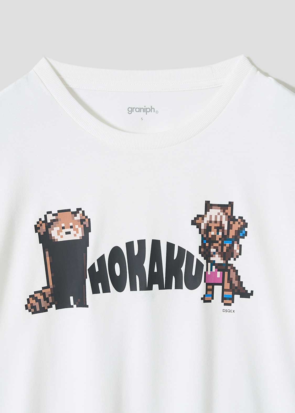 『オクトパストラベラーII』より。狩人オーシュットとグラニフのキャラクターイカクがコラボレーションした特別なデザイン。お互いに両手を挙げて威嚇し合っているように見えますが、IKAKUが捕獲されるところかも・・?