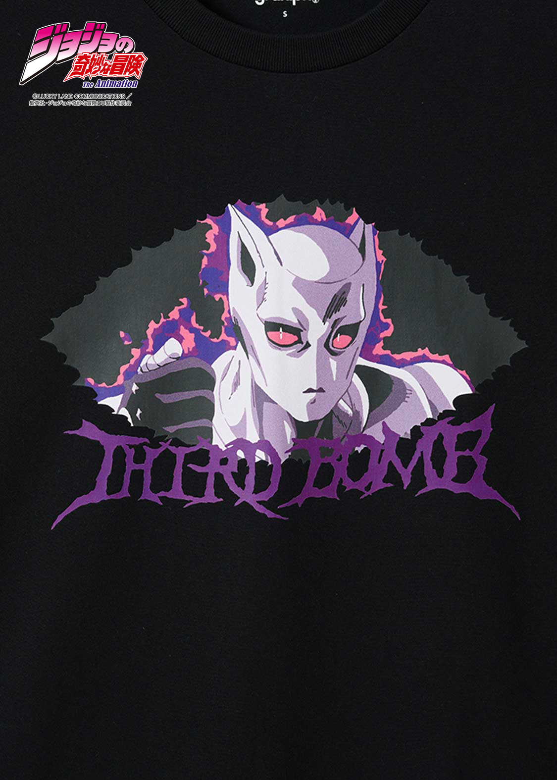 アニメ『ジョジョの奇妙な冒険 ダイヤモンドは砕けない』より。吉良吉影のスタンド「キラークイーン」第3の爆弾をモチーフにしたデザイン。正体を探ろうとして背面の裾をめくるとそこには・・・