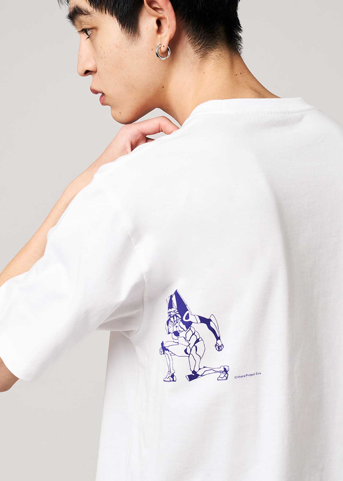 第七話「人の造りしもの」より。暴走したJ.A.(ジェットアローン)が歩く様子を表現したデザイン。バックにはジェットアローンを止めようと後を追う初号機がプリントされています。