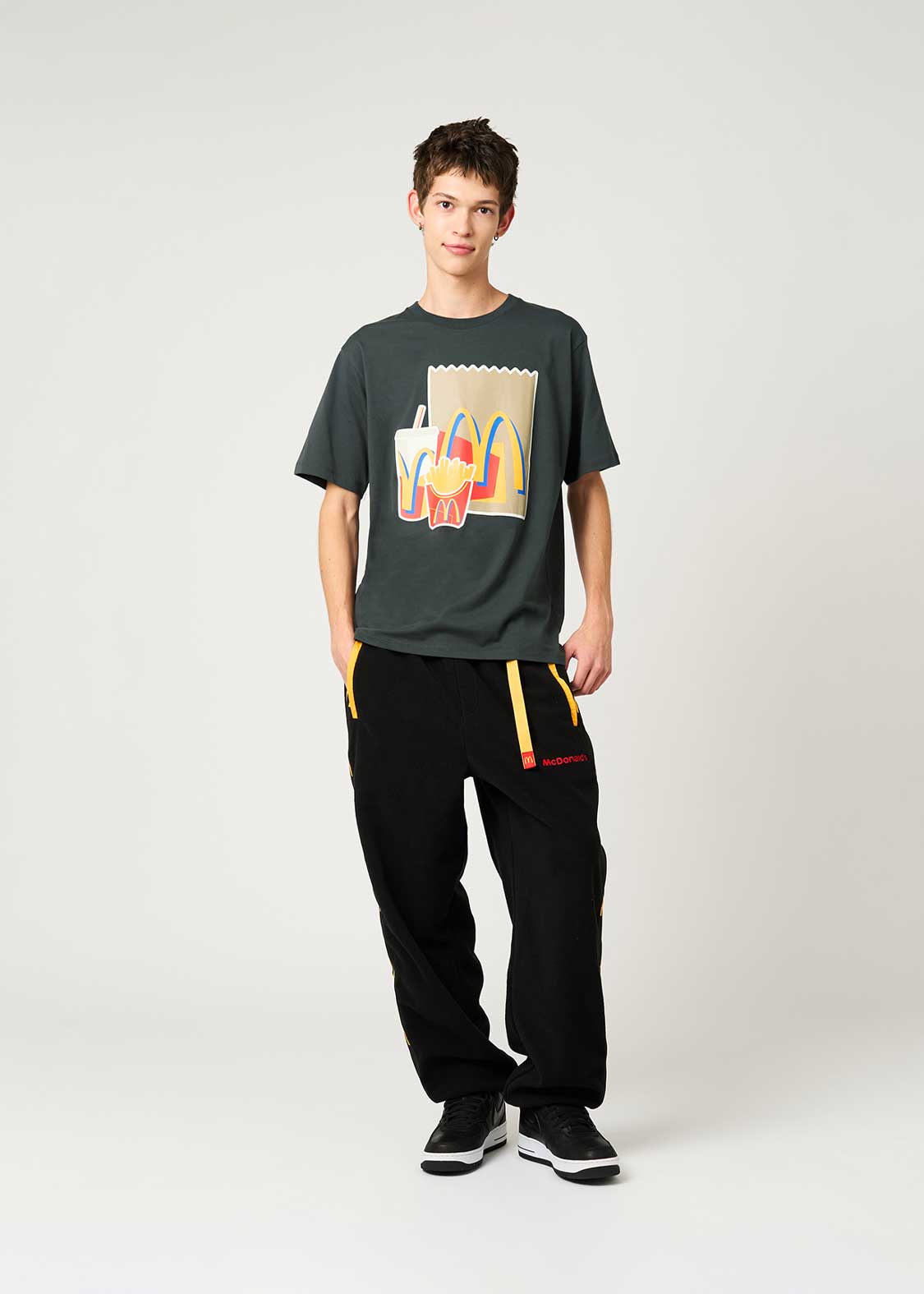 1995年から2006年まで使用されたロゴを使用した紙袋、ドリンク、マックフライポテトをシルクスクリーンプリントで表現したデザインです。