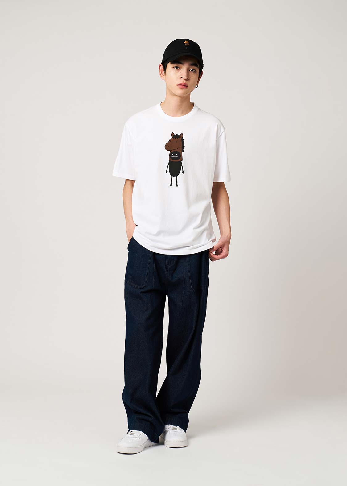 馬の被り物をしたり、UMAに間違えられて連れ去られたり。ユーモアと遊び心があふれる、賑やかなグラフィックに仕上げました。