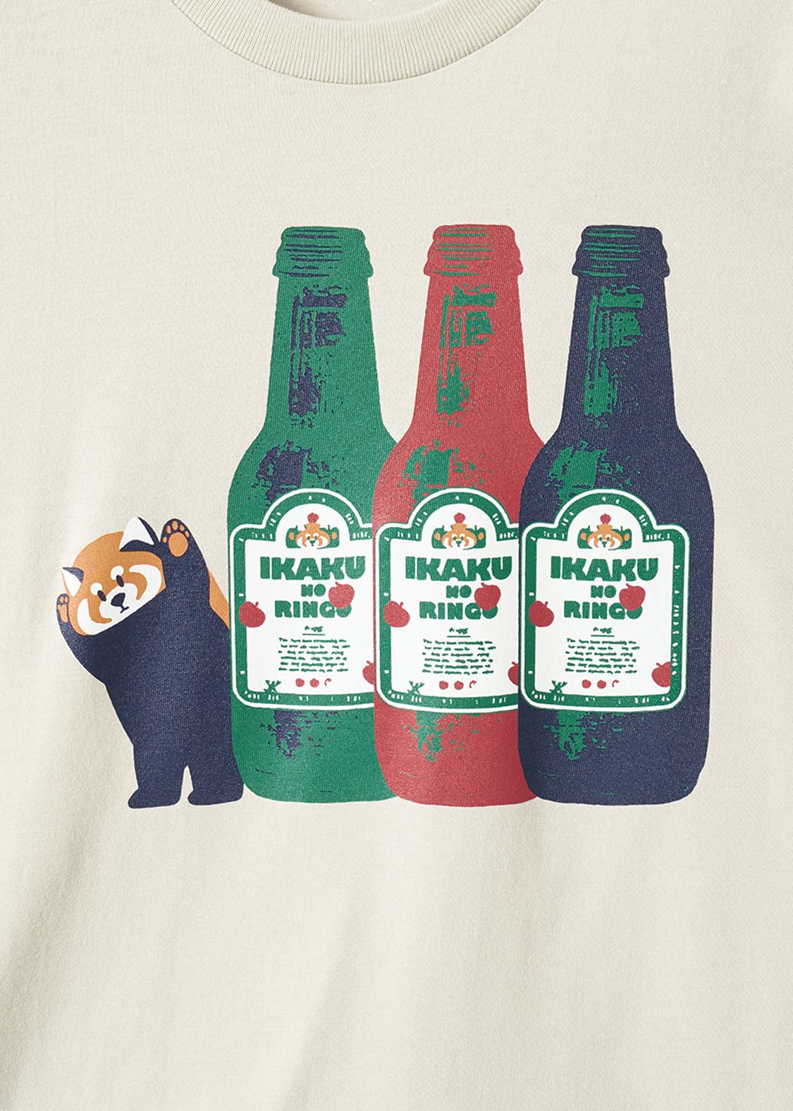 レッサーパンダの大好物、りんごをフィーチュア。赤いりんごがアクセントになる、遊び心のあるグラフィックです。