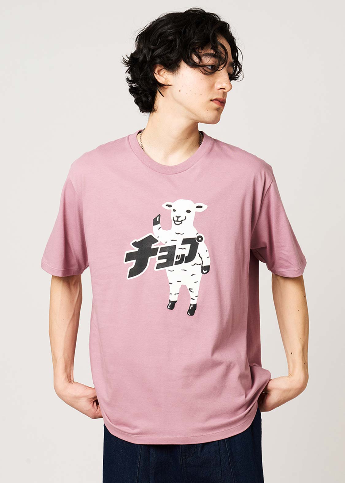 片手をあげるヒツジさん、ナンセンスな感性が見るものを刺激するデザインです。