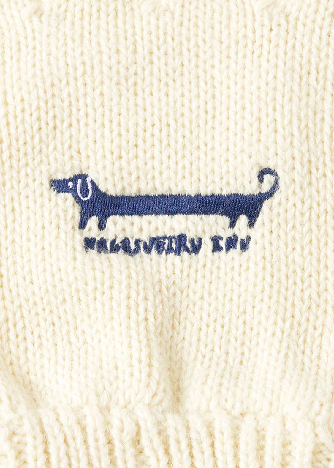 びよーんと伸びた長い胴、ロゴにもある通りまさに「ナガスギルイヌ」。決してダックスフントではなく、あくまで「ナガスギルイヌ」なのです。ユニークなコンセプト、思わず和んでしまう癒やしに溢れた作品です