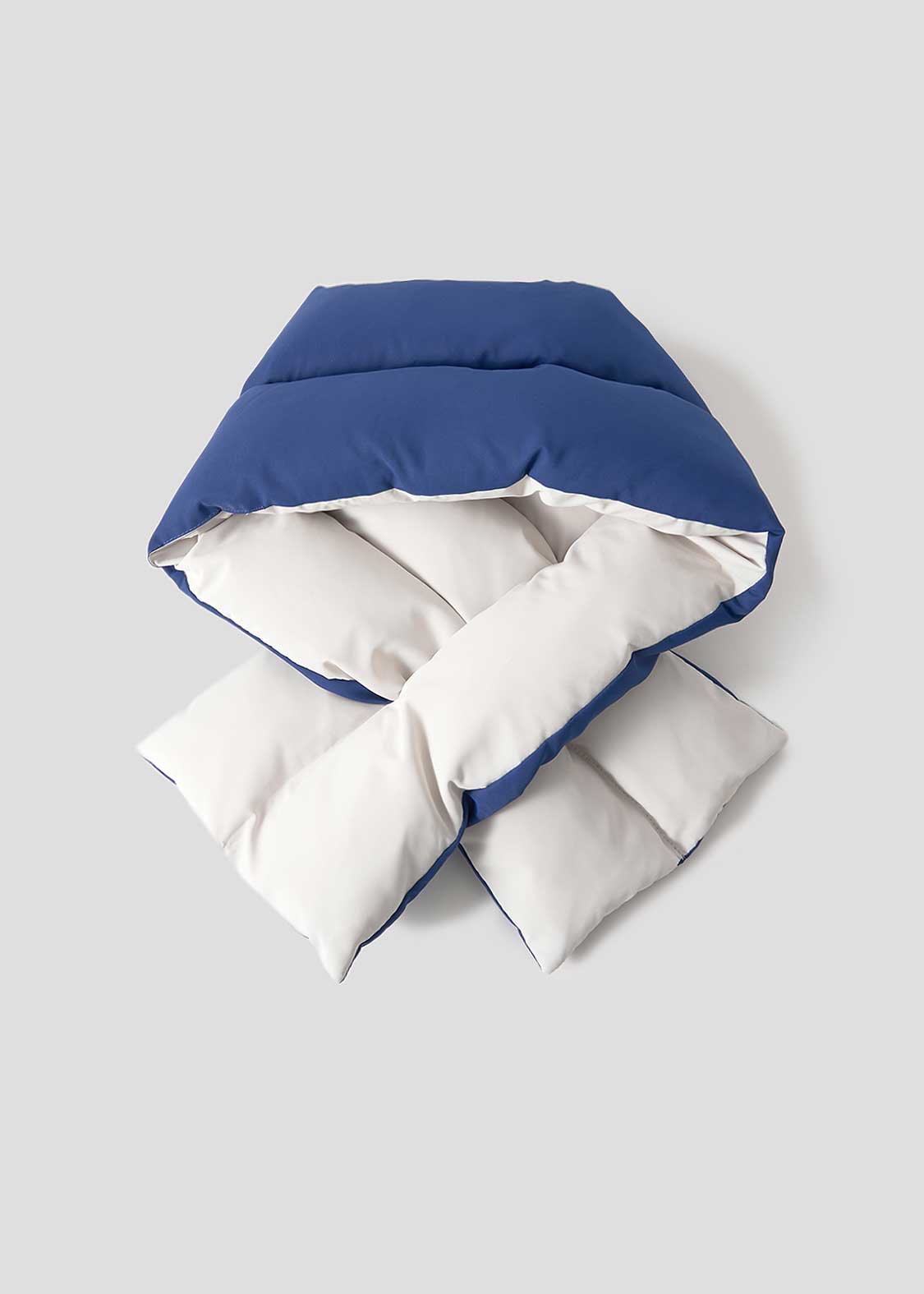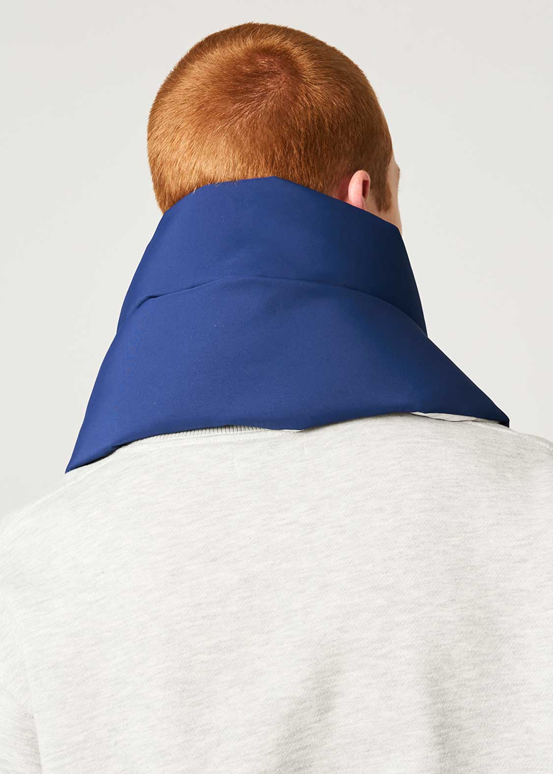 ・片側に穴が空いていて、そこに片側を通して首に巻く仕様です。そのため、どなたでも簡単に装着して綺麗な形状で首に巻くことができます。