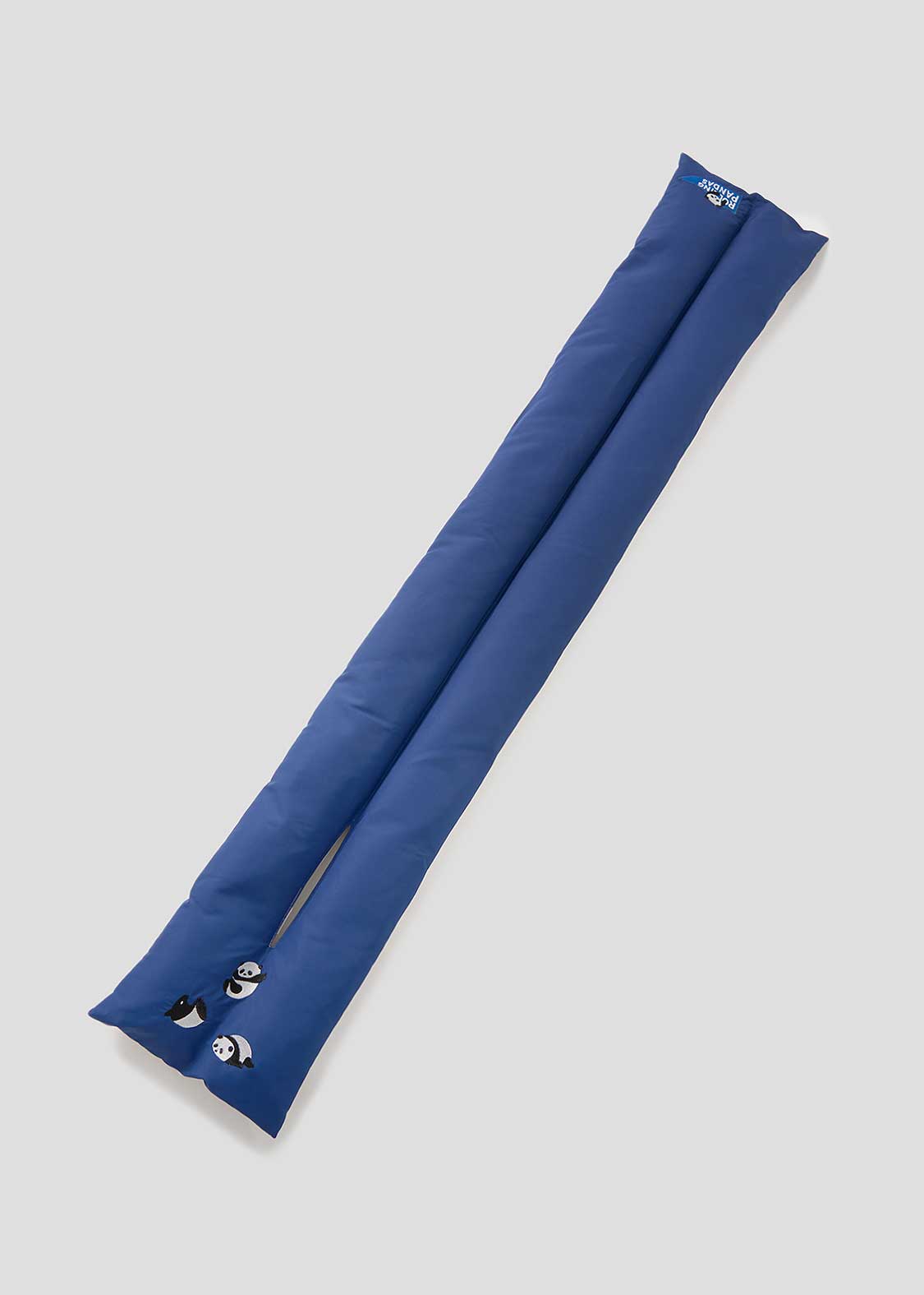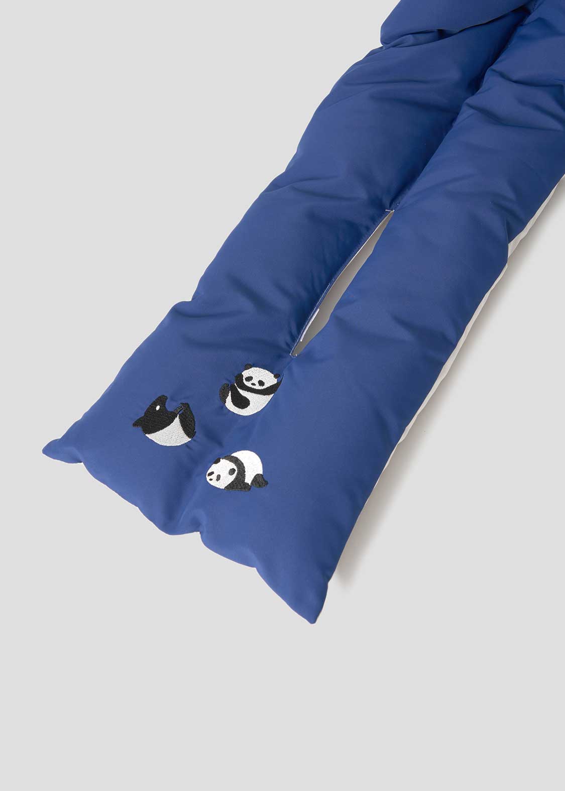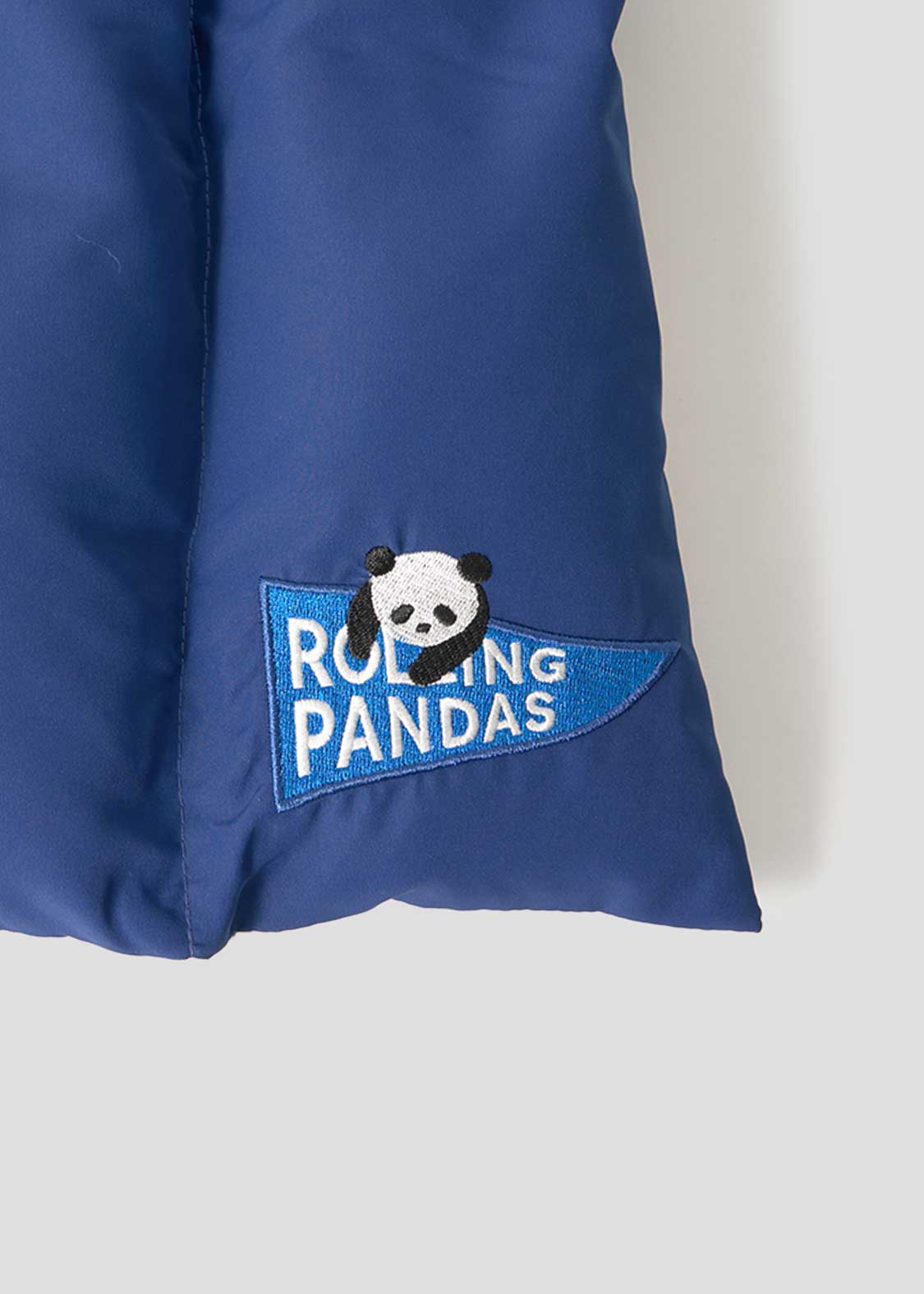 毬のように体を丸めた赤ちゃんパンダが、ころころと転がり落ちていく。その愛らしい姿に思わずほっこり気分になる、キュートなデザインです。