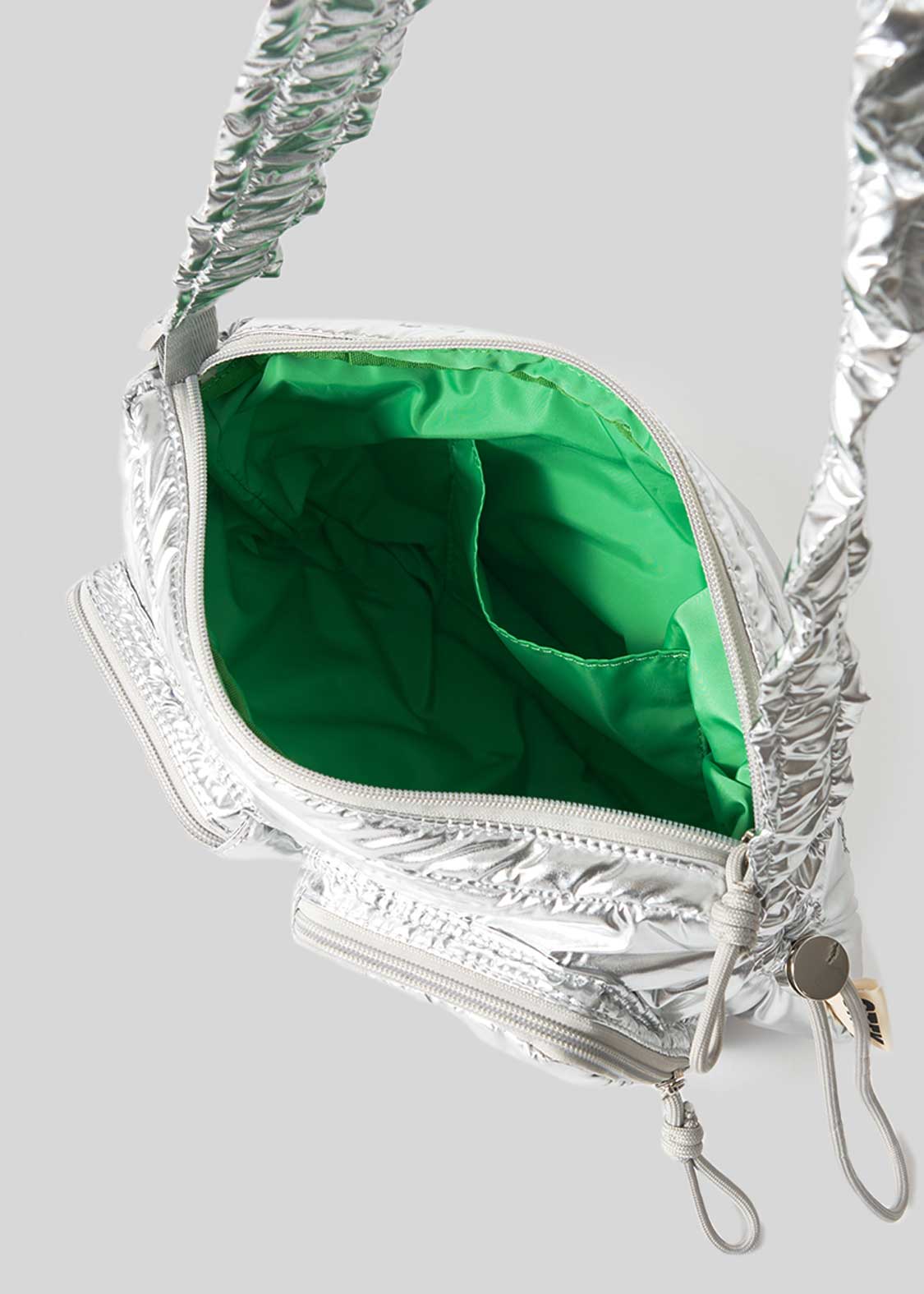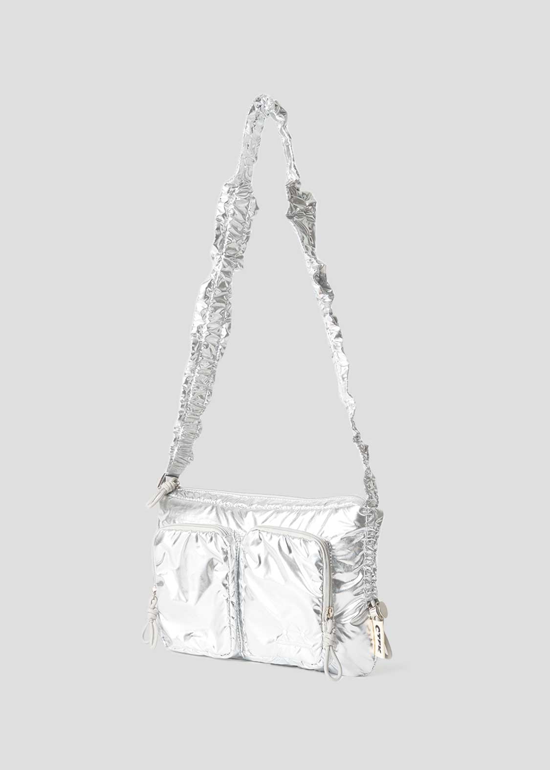 ・ショルダーベルトはスタイルに合わせて長さ調節ができ、ショルダーパッドのギャザーアレンジを楽しめます。