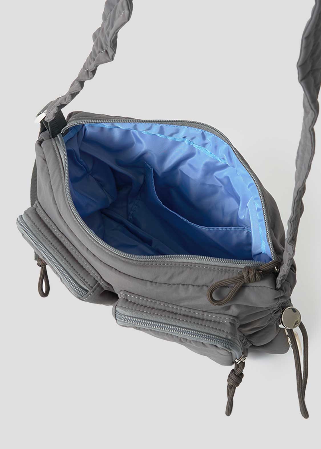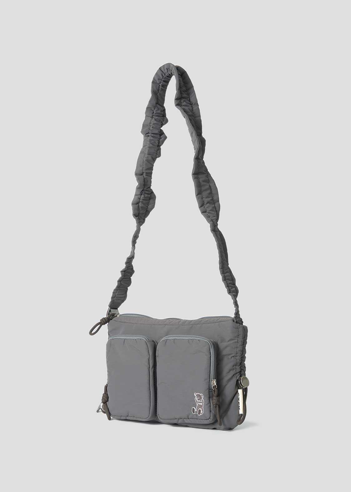 ・ショルダーベルトはスタイルに合わせて長さ調節ができ、ショルダーパッドのギャザーアレンジを楽しめます。