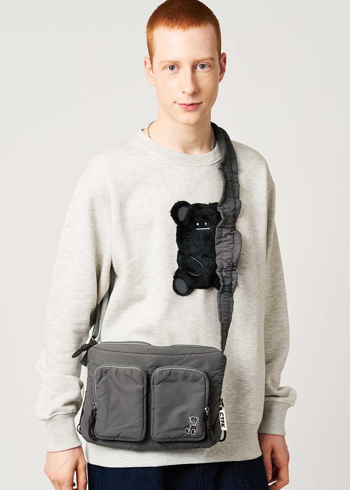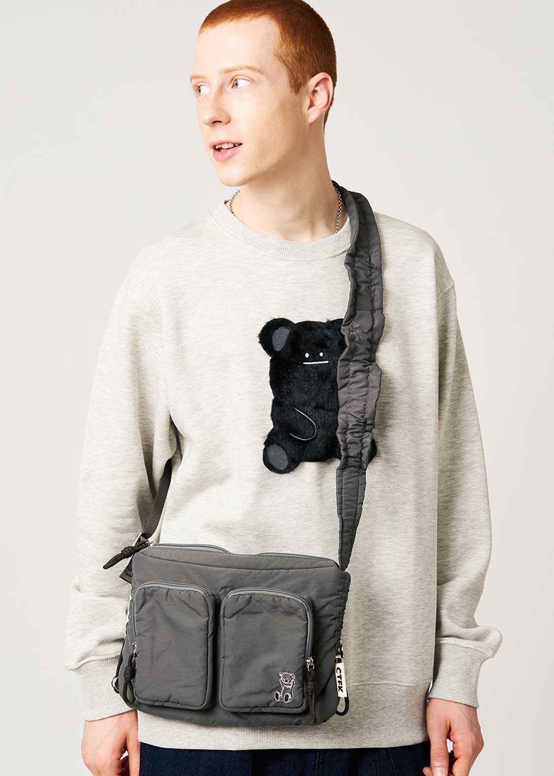 ポン!とばかりに頭をとるファニーなクマくん。ブラックなユーモアとキュートさが混じりあったインパクトのあるキャラクターです。