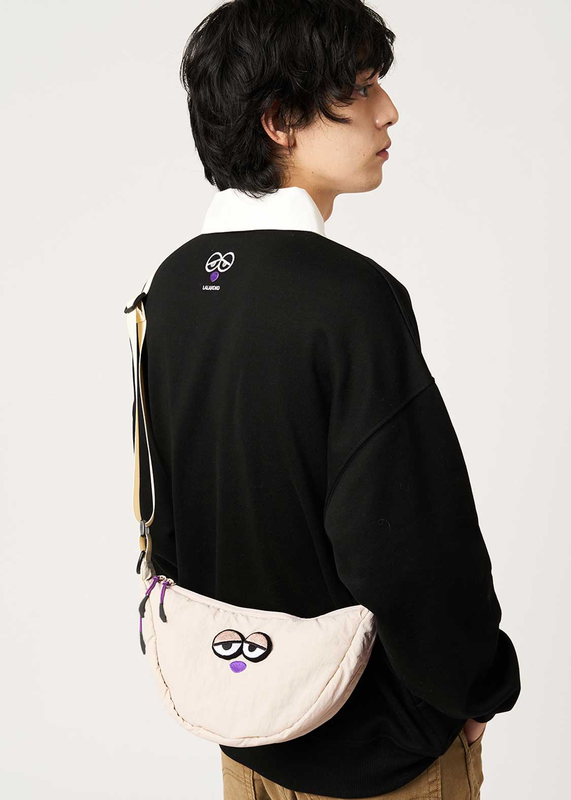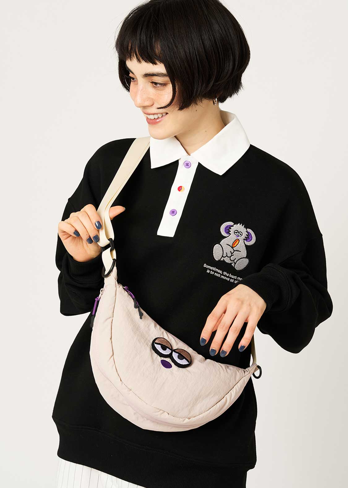 店舗で目が合ってしまい顔がとても好みだったのと機能性に溢れていたので、これは良い!と思い連れて帰らせて頂きました。どっちの面もララココを感じることができ、身につけるたび嬉しくなります。底面のチャックをあけたら紫色が顔を出すのもお気に入りです。冬の暗くなりがちな服装にキュートな差し色になってくれるでしょう!