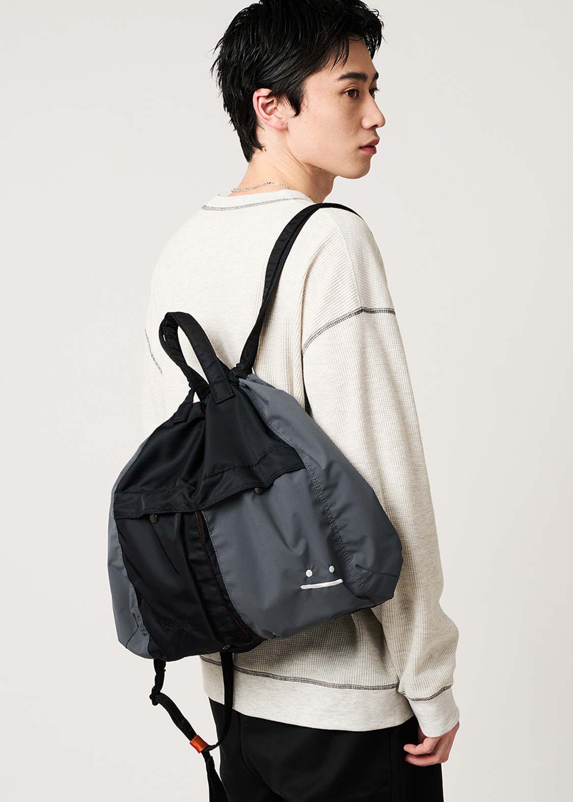 ・ナイロン素材を使用した、3WAY仕様のナップサックです。