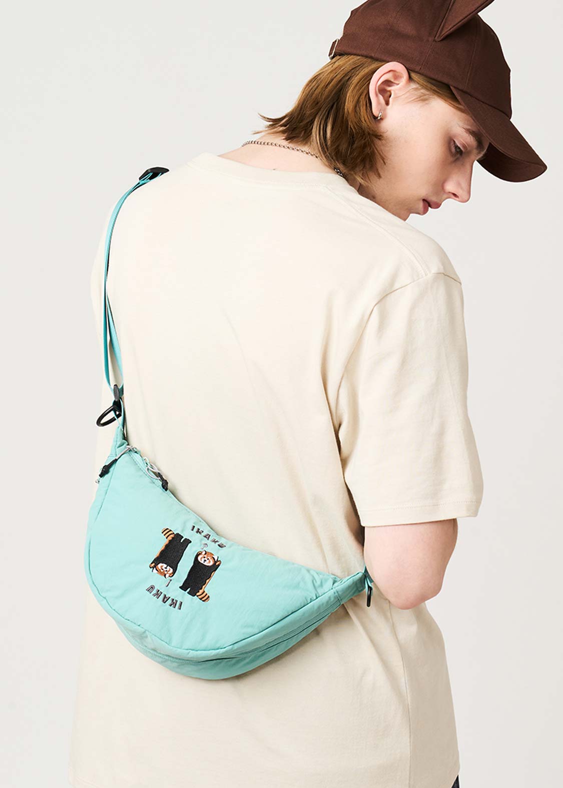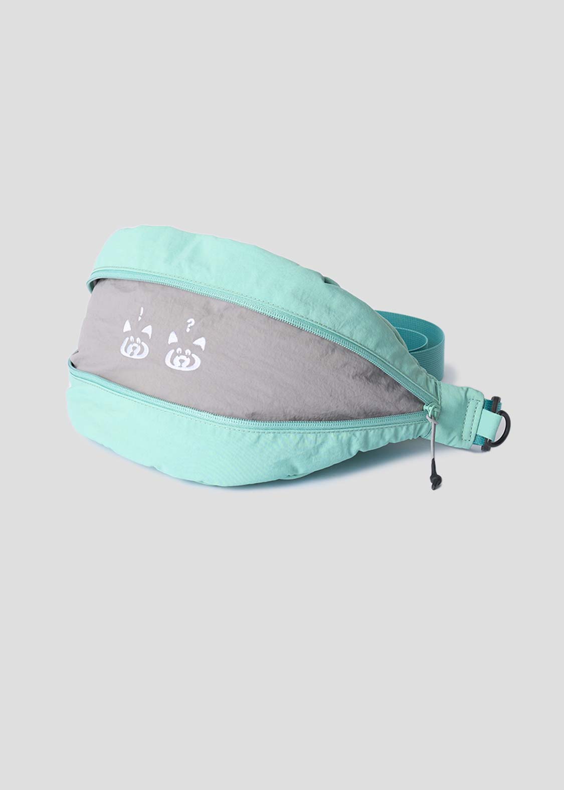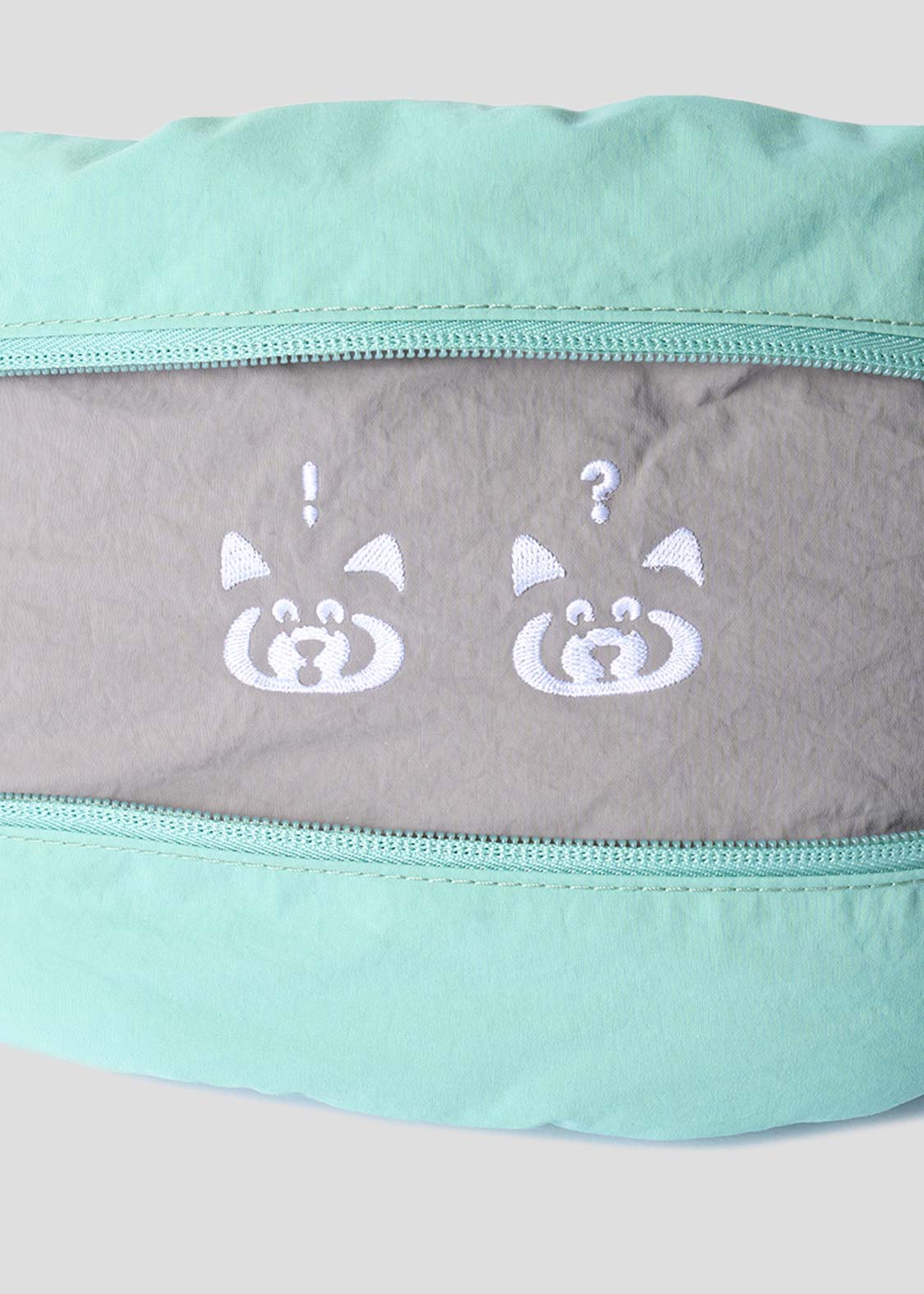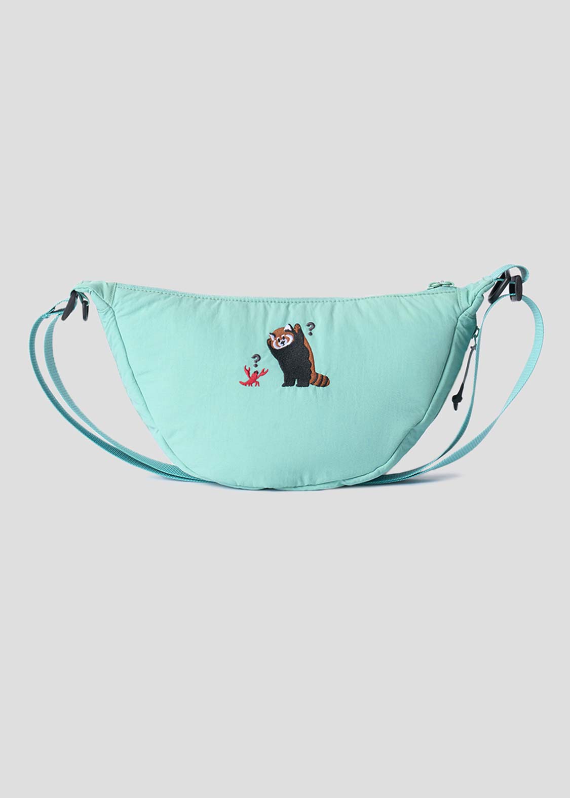 レッサーパンダの「?」と「!」の表情を、遊び心たっぷりにデザイン。ちょっとしたリアクションを切り取った、!?マークがアクセントのグラフィックです。